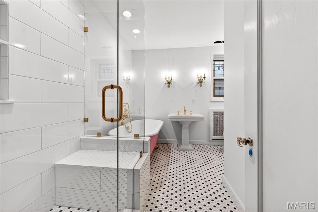 Designed and built in the 1920s by one of St. Louis’ most celebrated architects and master craftsmen, this historic residence is truly one of Hillcrest’s crown jewels. Exuding timeless elegance and architectural distinction, the home’s finely detailed exterior and exquisite interiors rival the grandest estates of the Central West End—yet offer a more livable, intimate scale. A graceful domed entry welcomes you with original black-and-white tile flooring and luminous French doors, leading into sun-drenched spaces ideal for displaying exotic plants or enjoying morning coffee in a tranquil, solarium-like setting. The living and dining rooms boast intricate plasterwork, bespoke millwork, and an original fireplace framed by newly rediscovered art glass, all contributing to the home’s enduring sophistication. Custom hardwood floors, with rich fields and borders, define the formal living areas. The expansive living room transitions seamlessly through multiple French doors onto a spacious stone terrace, perfect for entertaining or quiet evenings outdoors. The dining room, equally grand, opens to an elevated rear terrace overlooking charming gardens. With a shared wall between the dining room and oversized kitchen, the potential exists to create a stunning open-concept gathering space tailored to modern living. Upstairs, the primary bedroom impresses with two generous walk-in closets and an adjacent thoughtfully remodeled spa bath. Two additional bedrooms, including one with an adjoining office or playroom, provide flexibility and flow to the third floor, where two more large bedrooms and a full bath await. A well-preserved two-car garage and spacious lower level offer abundant storage and the opportunity to create an impressive recreation, fitness, or wine room. Nestled in one of the area’s most sought-after neighborhoods, this legacy property is an easy stroll to Clayton’s renowned Captain Elementary, Wydown Middle School, historic DeMun Village, Forest Park, and Washington University. Priced below market to accommodate thoughtful modernization, this is a once-in-a-lifetime opportunity to own a piece of St. Louis history—a residence where refined character and potential for remodeling meet. PROPERTY TO BE SOLD AS IS.