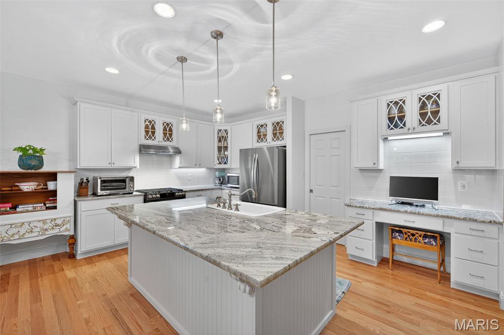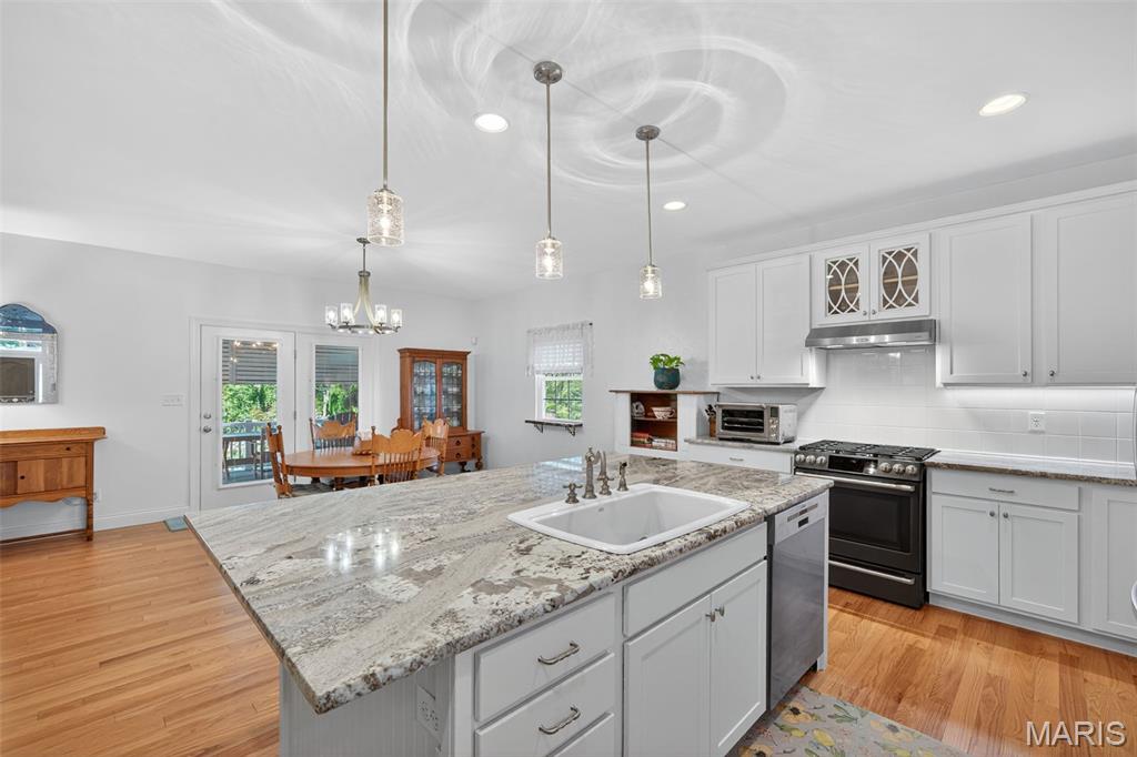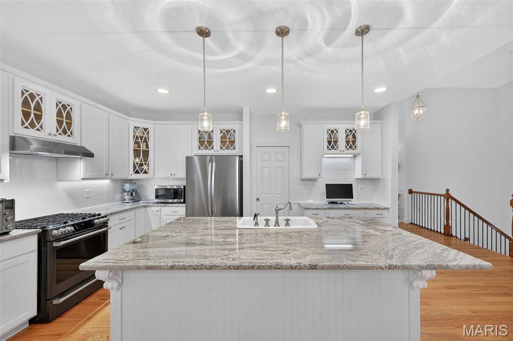 Discover this stunning 3BR/3BA ranch nestled in a prime Oakville location—only 5 years old & truly better than new! From the moment you arrive, the curb appeal & meticulous care are evident. Step inside to find a bright, open floor plan filled with natural light & upgraded features throughout, including gleaming wood flooring, porcelain tiled bathroom floors, modern lighting, & elegant finishes that elevate every room. The heart of the home is the gourmet kitchen, complete with imported indian granite countertops, custom cabinetry & tile backsplash, stainless steel appliances, an extra large center island perfect for gathering, complete with a deep walk-in pantry. The adjoining dining area & spacious great room create a seamless flow, ideal for both entertaining and everyday living. The primary suite offers a peaceful retreat with a luxury ensuite bath featuring dual vanities and spacious walk-in shower with seat, leading to a walk-in closet Two additional bedrooms and a full bath provide comfort and flexibility for family or guests. The expansive lower level holds the possibilities to expand your living space with a luxurious full bath with soaking tub, already built out for you, and the option of adding an additional bedroom near the egress window. Outside, enjoy your own private oasis. The manicured backyard is beautifully designed with a pergola at its entry way, a custom retaining wall, and professional landscaping, all surrounded by wrought iron fencing. The covered patio offers the perfect place to relax and unwind while taking in the peaceful surroundings. This home blends modern comfort with thoughtful upgrades in a sought-after neighborhood close to parks, shopping, and top-rated Oakville schools. Move right in and start enjoying the perfect combination of style, quality, and location—with all of these features, this house is better than building new!
