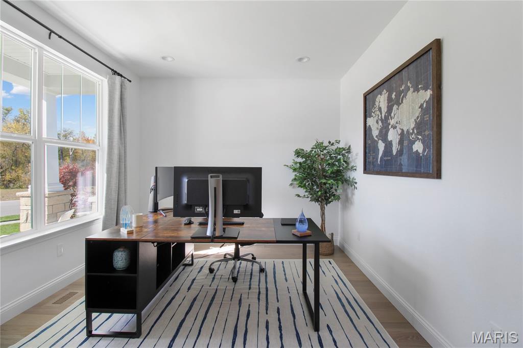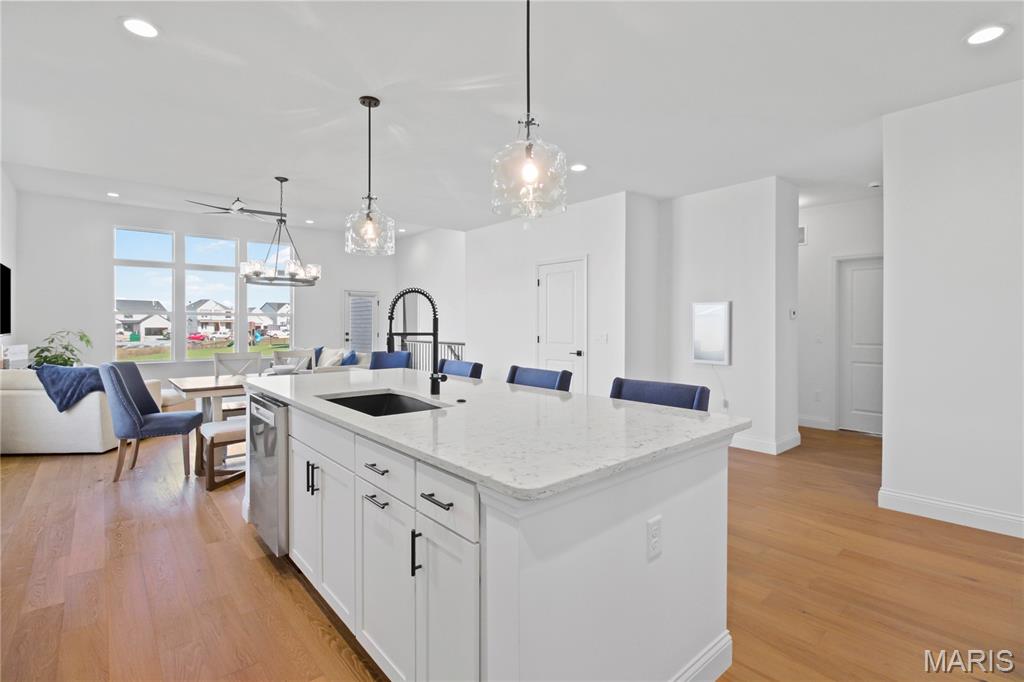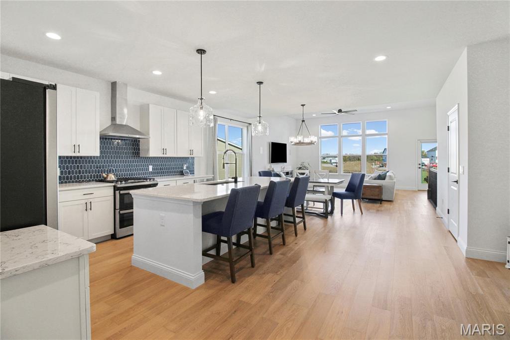 Truly move-in ready—and no waiting required! This stunning two-year-old Craftsman-style ranch is nestled in the heart of the highly sought-after Cottleville Trails community. Thoughtfully designed and maticulously maintained, it offers three spacious bedrooms, two-and-a-half baths, and a three-car garage, perfectly suited for modern living. A charming covered front porch welcomes you home, while the oversized back patio provides an ideal setting for relaxing or entertaining. The nearly half-acre lot features established landscaping enhanced by a stone flower bed and supported by a full-yard irrigation system. Rare 8' garage doors add both convenience and impressive curb appeal. Inside, the bright white kitchen shines with Quartz countertops, soft-close cabinets and drawers, and upgraded stainless steel appliances—including a gas range with hood. A large island with bar seating and striking cobalt-blue accents creates a true focal point. The great room features an 11' ceiling, motorized blinds, and luxury vinyl plank flooring flows seamlessly throughout the home, complete with matching floor vents. A custom modification to the floorplan thoughtfully adds a guest half bath. The primary suite is a relaxing retreat, complete with dual sinks, a spacious no-curb shower, and elegant transom windows that bathe the room in natural light. A dedicated home office/study offers the perfect workspace for remote work or quiet reading. A full basement with a rough-in bath provides abundant storage and endless potential for future expansion, from recreation areas to additional living space. Located in a golf cart–friendly community, Cottleville Trails offers exceptional amenities including two pools, a playground, walking trails, and five picturesque lakes—blending comfort, convenience, and outdoor enjoyment into one exceptional lifestyle.
