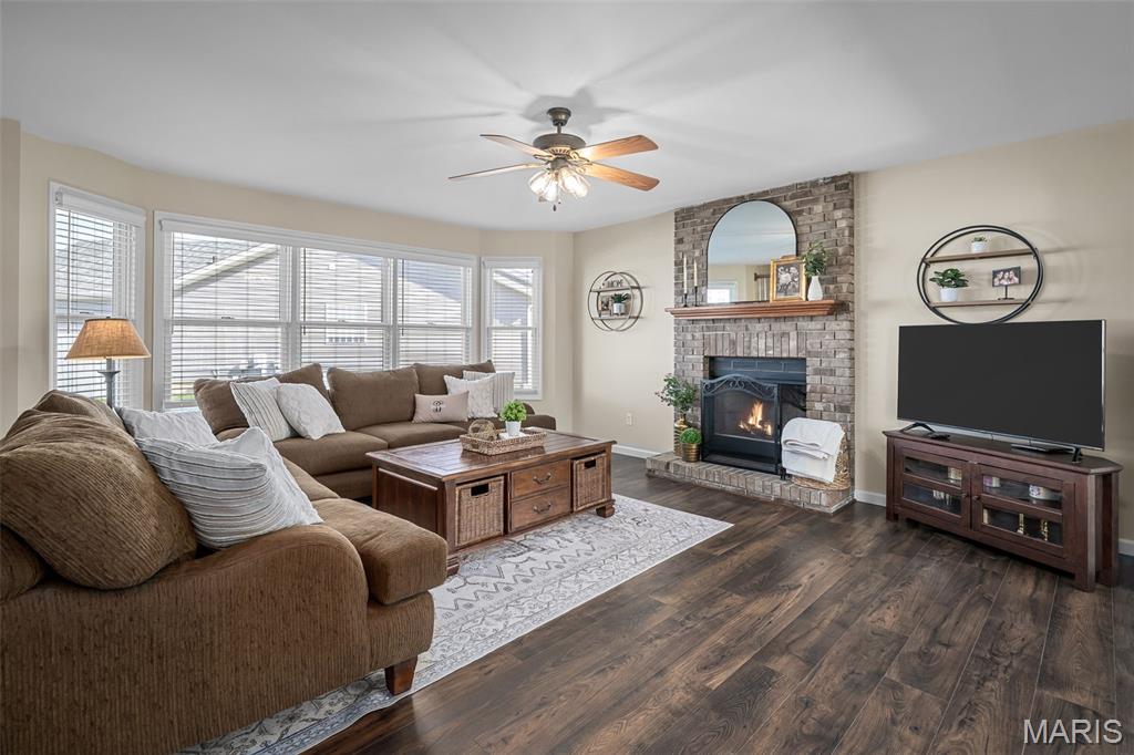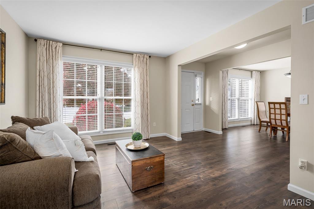 SUPER CLEAN & EXTREMELY WELL-MAINTAINED this ORIGINAL OWNER, spacious 2-story home has over 2,500 sq ft of living space sitting on a large corner lot of a cul-de-sac! This attractive home has had a huge exterior make-over in the last year with a BRAND NEW architectural shingle roof, all new vinyl siding, new gutters/downspouts, 9 new windows & more! PLUS, a BRAND NEW HVAC system was just installed 3 months ago! Walk inside and find newer laminate flooring throughout main areas (2022), a formal dining room and a flex room that could be used as an office or living room, and a large cozy family room with wood-burning fireplace & wall of windows! Cooking in the adjacent eat-in kitchen will be a delight with the newer quartz countertops & subway tile backsplash (2023)! Right off your kitchen step outside to relax on the newer, 15'x24' concrete patio (2021) with privacy fence partition. Head up to the 2nd floor of this home to find 4 bedrooms, 2 full baths, and a LARGE loft space which is perfect for a playroom, teenage hangout space, an office, or TV room. Plus a full basement is waiting for your finishing touches! Want more storage?!? The 3 car garage is GENEROUSLY OVERSIZED...likely able to fit your bass boat OR your golf cart AND your 3rd car in the 3rd car bay! Notable feature - Double hung, insulated, tilt-in, white wood Anderson windows throughout home...9 of which are BRAND NEW! Other updates include a newer hot water heater (2022)! All of this in a family friendly subdivision with amenities galore...community pool, playground, pavilions, walking trails, basketball court, frisbee golf & more! Top rated schools & convenient location to Hwys 70 & 79!