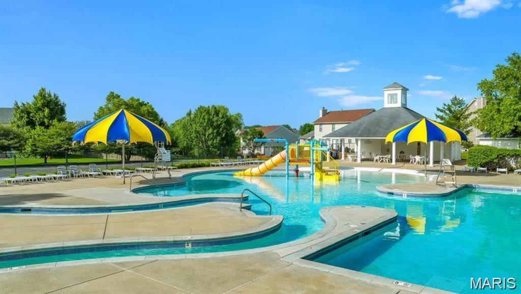 Experience refined living in this impressive home, boasting over 3,600 sq. ft. of finished space that seamlessly blends privacy and comfort within a coveted golf community and the esteemed Fort Zumwalt West school district. Nestled on a lush, tree-lined 0.42-acre lot, enjoy a maintenance-free deck and a spacious patio designed for effortless outdoor relaxation and entertaining. Inside, the inviting foyer welcomes you to a formal dining room enhanced by elegant crown molding and sophisticated window-pane millwork. The kitchen and adjoining breakfast area showcase wood flooring, a stylish backsplash, stainless steel appliances, 42-inch cabinetry, and a center island with a breakfast bar—ideal for both casual dining and hosting gatherings. The primary suite, thoughtfully separated from the three secondary bedrooms by a versatile loft, features a soaking tub, tile floors, dual-sink vanity, and a private water closet. The finished lower level offers privacy and security and is perfect for entertaining, featuring a wet bar with granite countertops and stainless-steel appliances, a full bath, an optional fifth bedroom, a flex room, and generous recreation and family areas. Additional amenities include main-floor laundry, soaring nine-foot ceilings, a cozy gas fireplace, and an oversized three-car garage with convenient backyard access. Community perks abound with three pools, a clubhouse, tennis courts, a pavilion, walking trails, and picturesque ponds, ensuring leisurely lifestyle options. Few homes deliver this much space, functionality and lifestyle appeal in such a desirable school district at such an attractive price point!