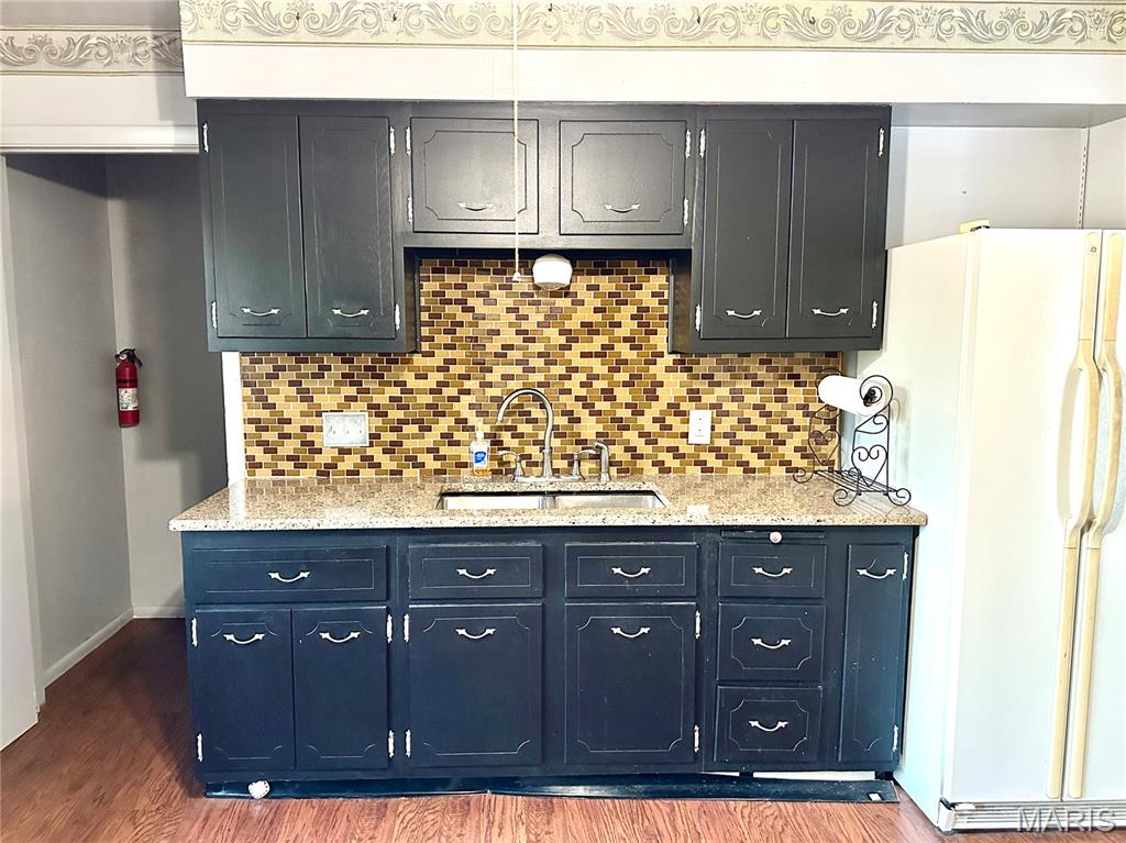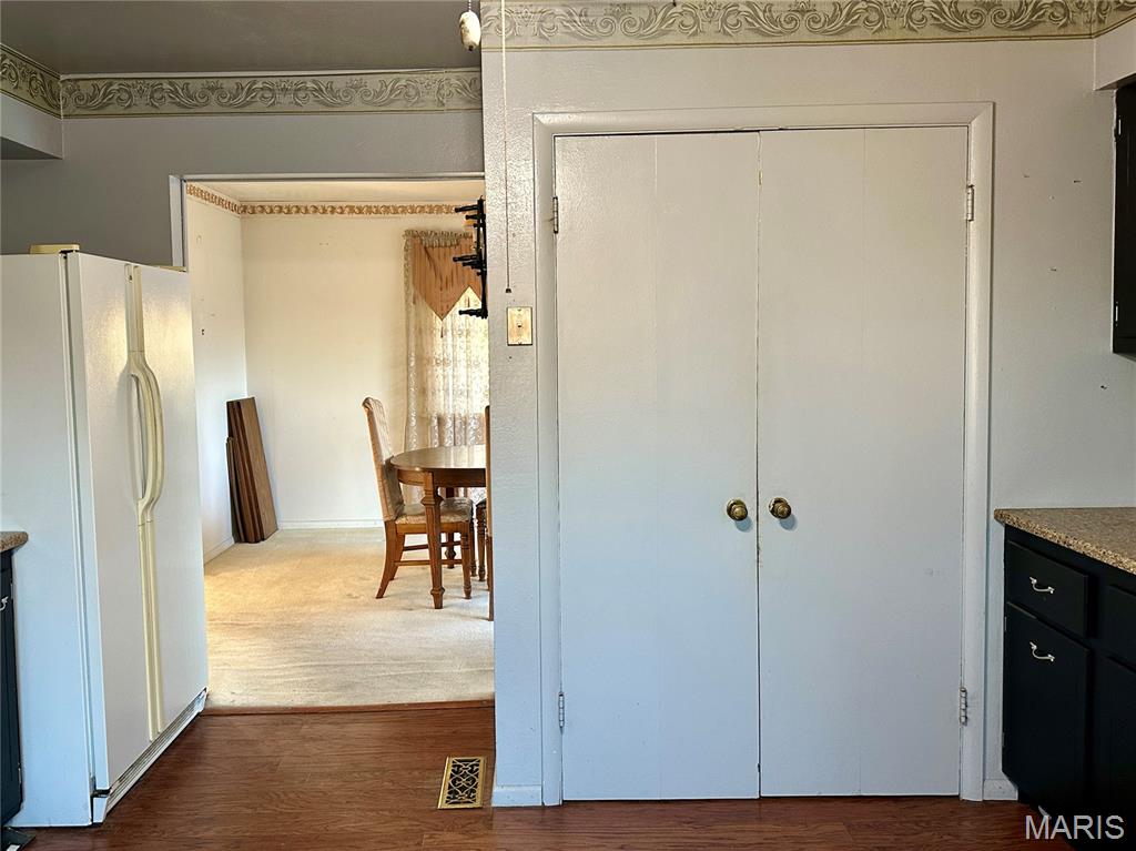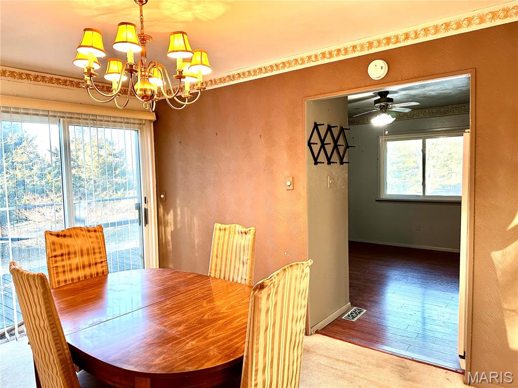 Here is a great opportunity to make this home your own! This walk out ranch has so much potential and it sits on a large corner lot in the small historic town of Lebanon, Illinois. This home is located just minutes from SAFB, I-64, and O'Fallon, IL. The main level has a living room, formal dining room, eat-in kitchen with hard surface counter tops, 3 bedrooms, and a full bath. The full walk-out basement host a large family room with two walk-in closets and a full bath, this could easily be a primary suite. The lower level also has an entertaining area and a large 18x24 storage room where the laundry is located. Add your touch by painting, replacing flooring, and freshening up of the yard and this gem will sparkle. Don't miss out on this wonderful property it won't be on the market long. The home is being sold as is and it is part of an estate. Buyer's inspections are for buyer's knowledge only. Seller will not doing any inspections including occupancy. Buyer will be responsible for bringing home up to code if anything is needed. Buyer and buyer's agent to verify all information.