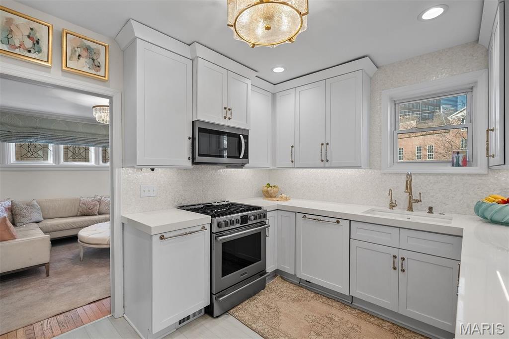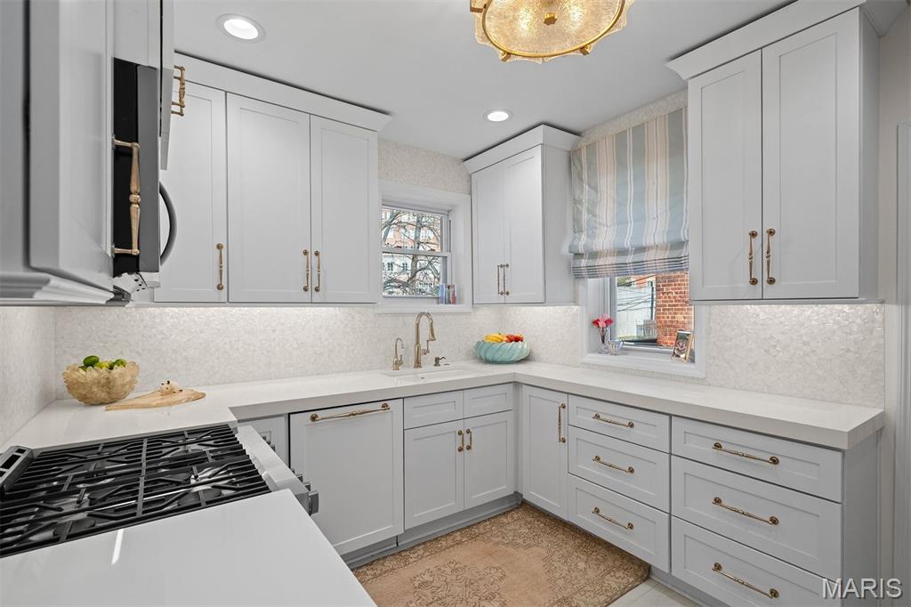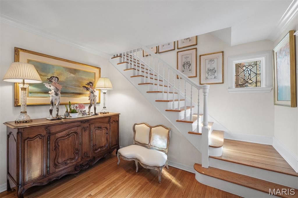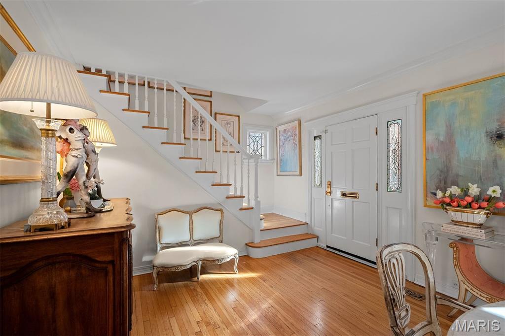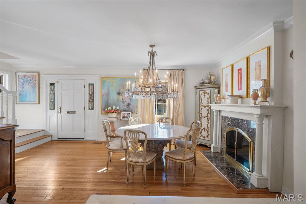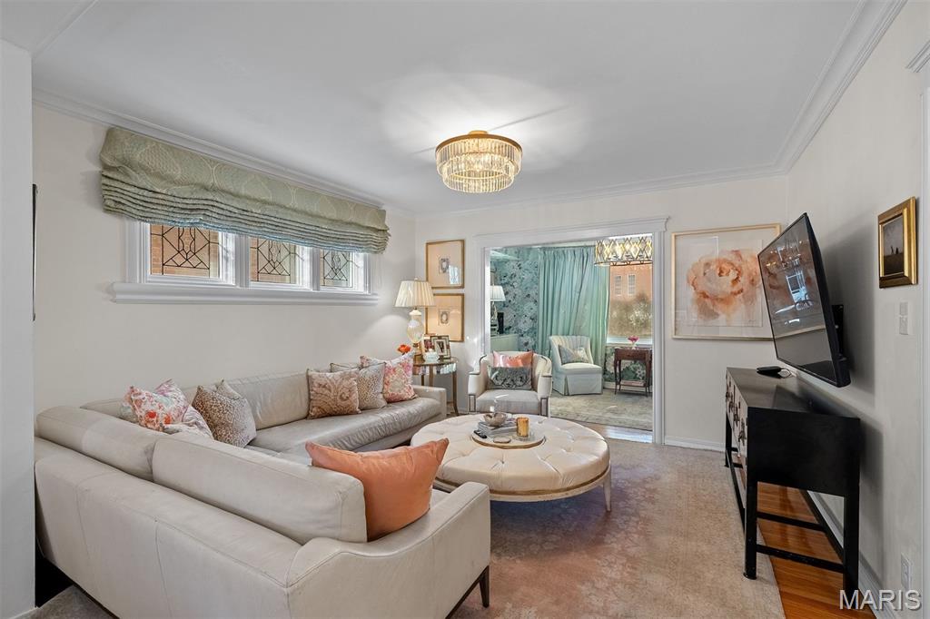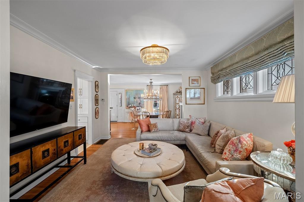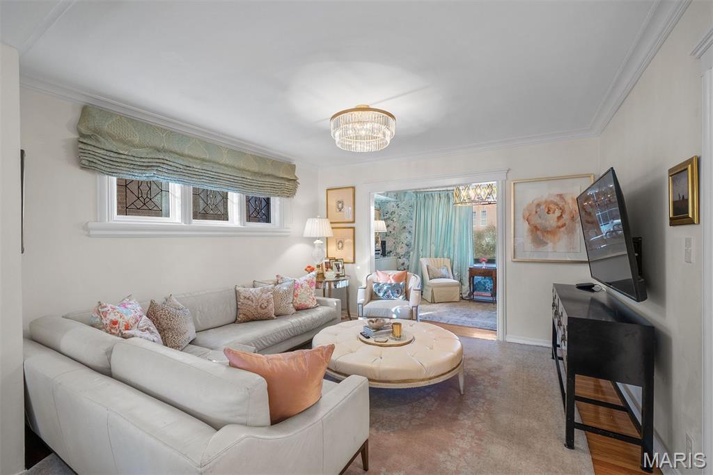 An Artfully Curated Clayton Classic. 7645 Carswold Drive is a masterclass in refined elegance, where timeless architecture meets a thoughtfully edited, modern aesthetic in one of Clayton’s most desirable enclaves. Sunlit interiors unfold with intention, revealing warm hardwood floors, layered textures, and multiple living spaces enhanced by bespoke built-in cabinetry that feels both architectural and functional. These custom elements create moments of visual interest while offering tailored storage and display, ideal for curated living, entertaining, and elevated everyday use. The dining space is anchored by a statement chandelier, striking the perfect balance between drama and sophistication, while the surrounding living areas flow seamlessly, offering flexibility without sacrificing cohesion. The kitchen reflects a clean, modern sensibility with crisp cabinetry, stone surfaces, and streamlined finishes, designed to feel current yet timeless. Upstairs, private quarters are serene and inviting, with thoughtful proportions and a calming palette that supports rest and retreat. The fabulous finished lower level extends the home’s livability, offering a beautifully designed space suited for media, fitness, guests, or creative pursuits. Wether expanding the home's footprint or extending additional areas for outdoor living space, a world of possibility awaits in the fully fenced, private backyard. Just minutes from Clayton’s dining, shopping, and cultural amenities, this residence offers a rare combination of design integrity, move-in-ready polish, and enduring appeal. 7645 Carswold Drive is not simply a home; it's a thoughtfully curated lifestyle.