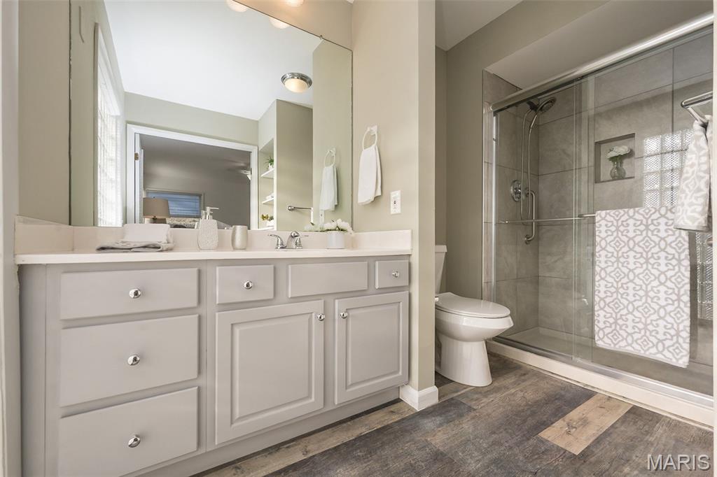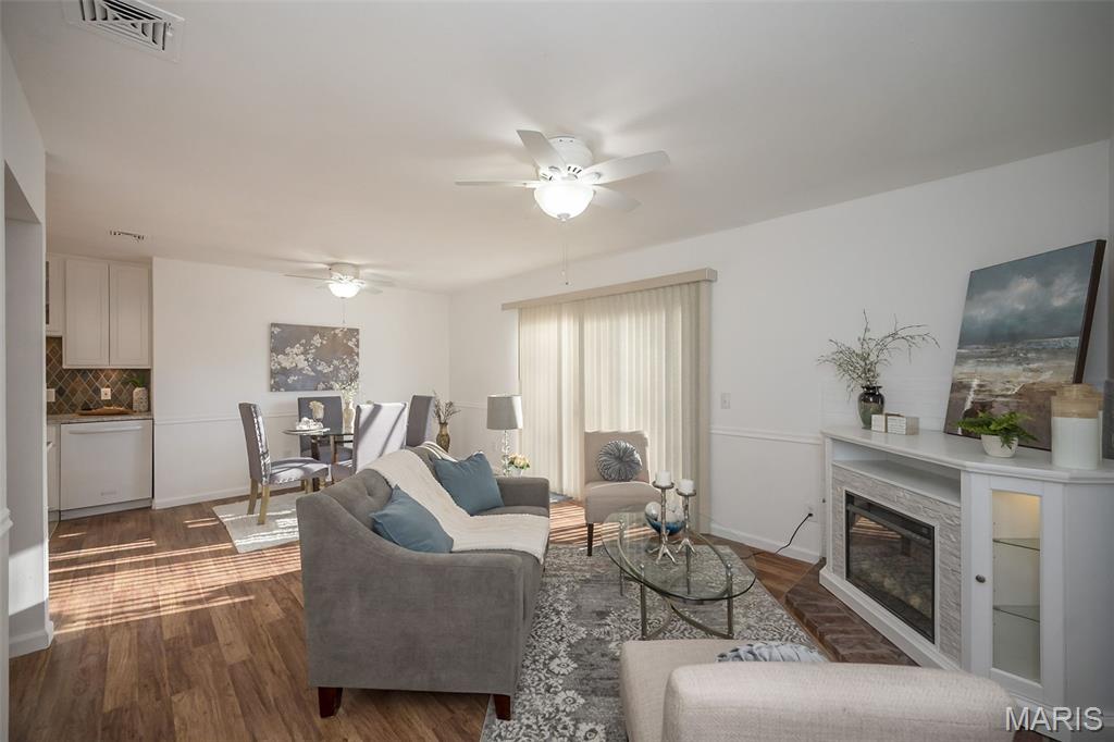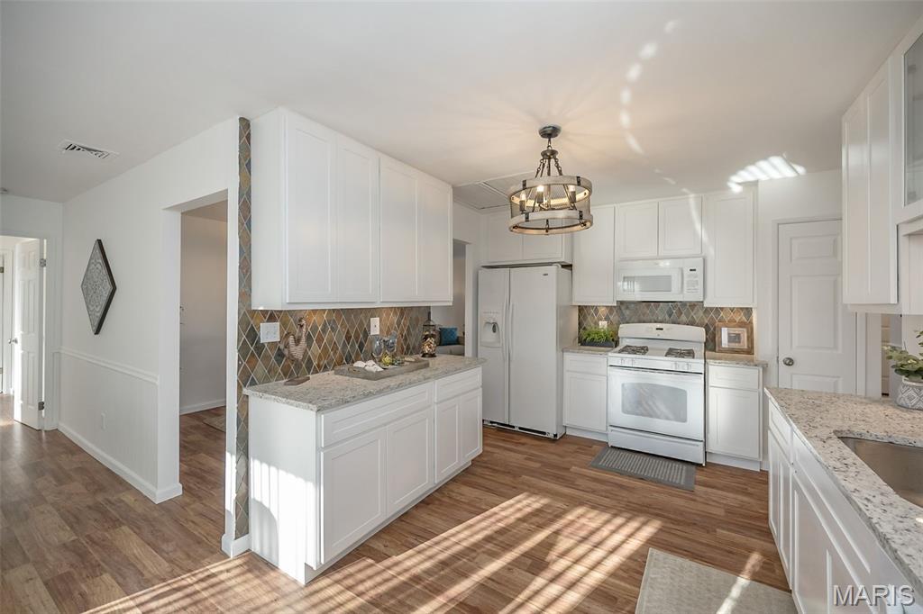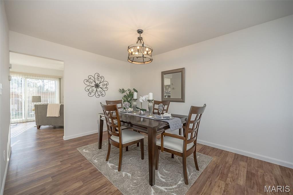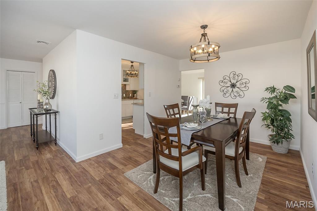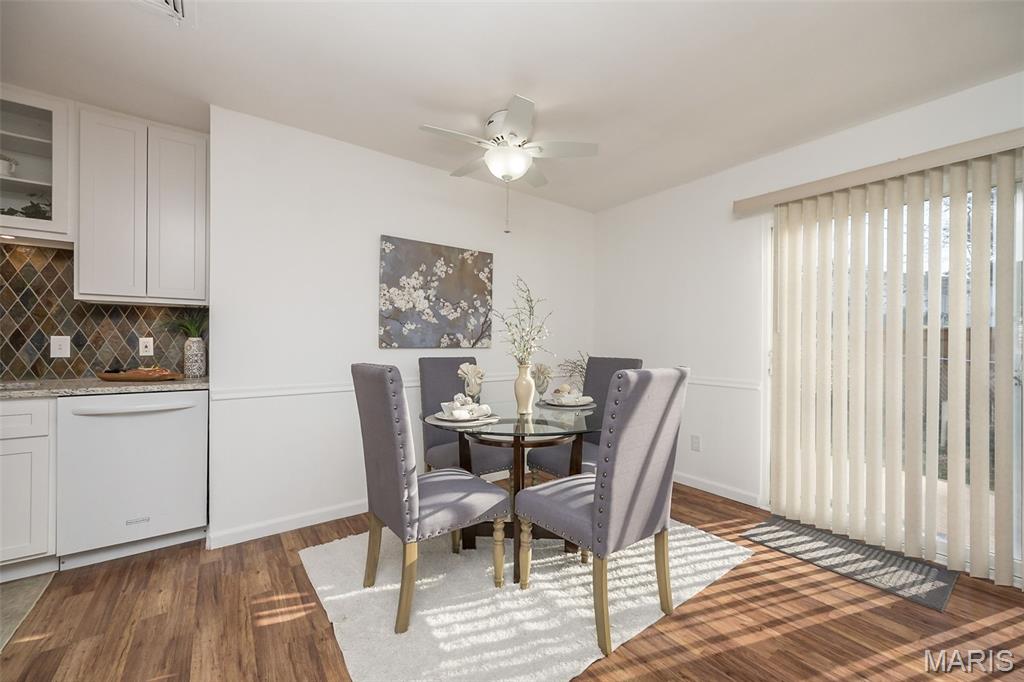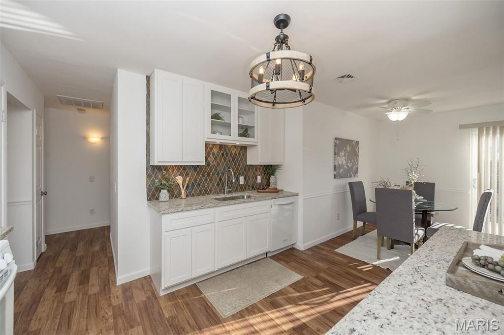 Ignore Days on Market as we are just now ready for showings after 21 days of being ACTIVE but not allowing showings yet. Showings will finally begin Friday Jan 9! And it's worth the wait!! We have a brand new roof and new siding to show off besides all the other wonderful NEWER features like flooring, kitchen cabinets and HVAC. Step into easy, comfortable living in this inviting no-steps ranch. The heart of the home is the bright, newer white kitchen with a striking real SLATE backsplash, opening directly into a warm and welcoming breakfast area/ family room with plenty of natural light —perfect for everyday living or casual gatherings. From here, step out to the patio and fenced yard for simple outdoor enjoyment. Luxury vinyl flooring ties together the main living areas, while all 3 bedrooms offer the softness of NEW plush carpet. A formal living room and separate dining room provide options for hosting, relaxing, or creating spaces that fit your routines. The primary suite includes an updated FULL bath with floor-to-ceiling glass block window and shower. The closet space is plentiful in this home and the bedrooms are generous. Besides the laundry room, there is a big storage room off the garage that will hold your holiday decor. The owner took pride in the landscaping in front & back yards. All of this sits in a neighborhood known for easy walks and a friendly, comfortable feel—an ideal setting for someone looking to downsize without giving up the living spaces that matter. Nothing to do here but move in, unpack and RE-LAX!! Amenities like the South County YMCA, Mercy South Medical Center, a Veterinary Hospital, Panera, Walgreens, Grocery stores, Vetta Sports Complex not to mention easy-peazy access to Highway 21, Highway 55, Highway 270/255. Everything you could need is less than 2 miles away.