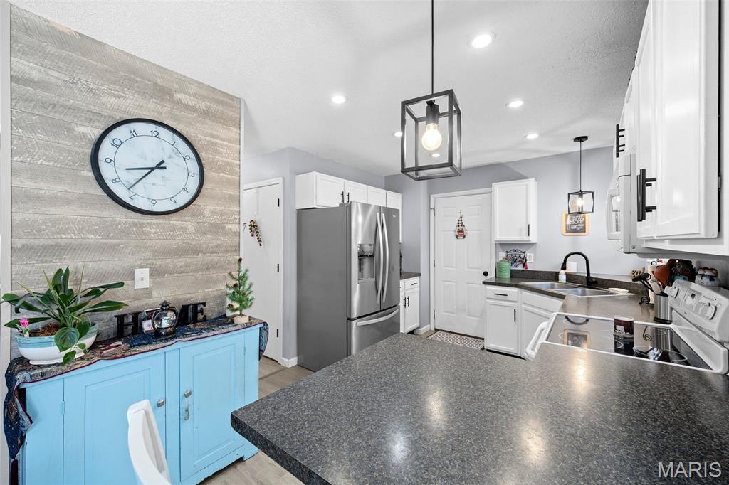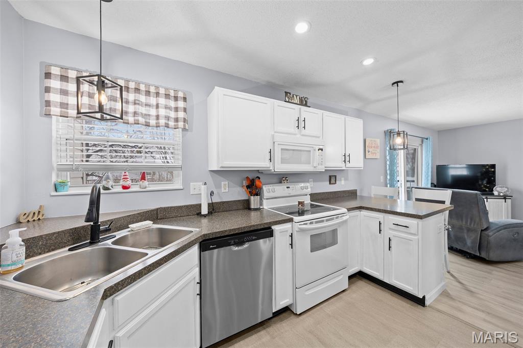 Immaculately maintained by its original owners, this 3-bedroom home in Belleville's Southwind Estates offers a thoughtful blend of comfort, functionality, and modern updates. Enjoy LVP flooring throughout, updated bathrooms, and abundant natural light from the home's large windows. The spacious kitchen, one of the seller's favorite features, opens to a comfortable living area with a gas-log fireplace, complemented by a separate dining room and a convenient second-floor laundry. The primary suite highlights a vaulted ceiling and a private bath. The lower level features epoxy flooring, a half bath, and ample storage. Outdoors, the property features a deck ideal for entertaining, a fenced yard, and a storage shed. A rare 3-car side-entry garage adds exceptional convenience and curb appeal. Sellers would like to close on Jan. 16, 2026. This property is being sold AS-IS.