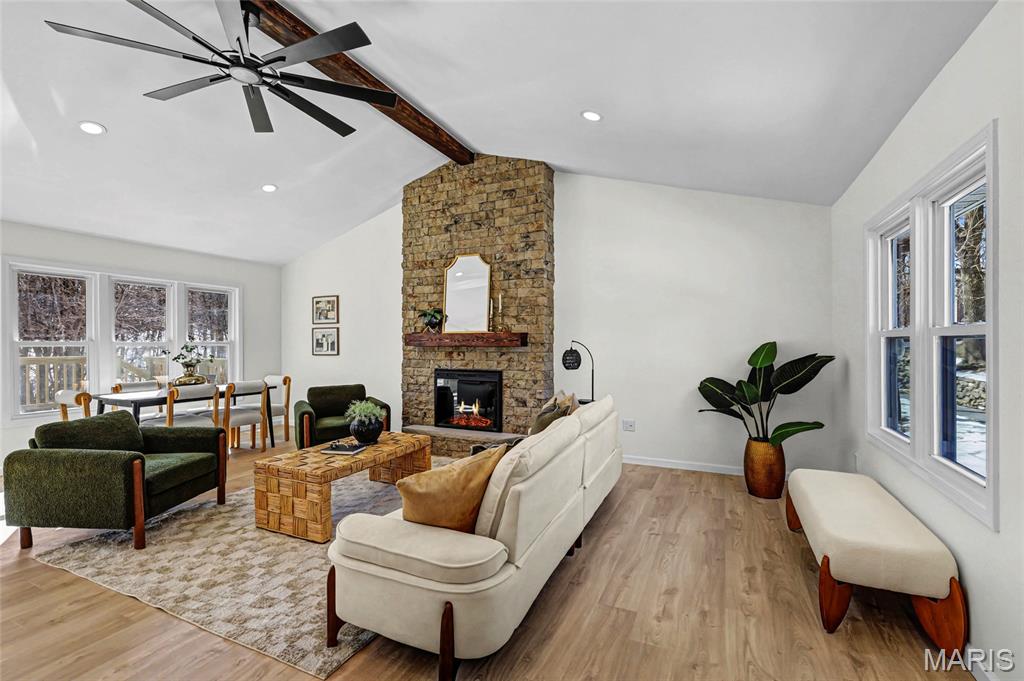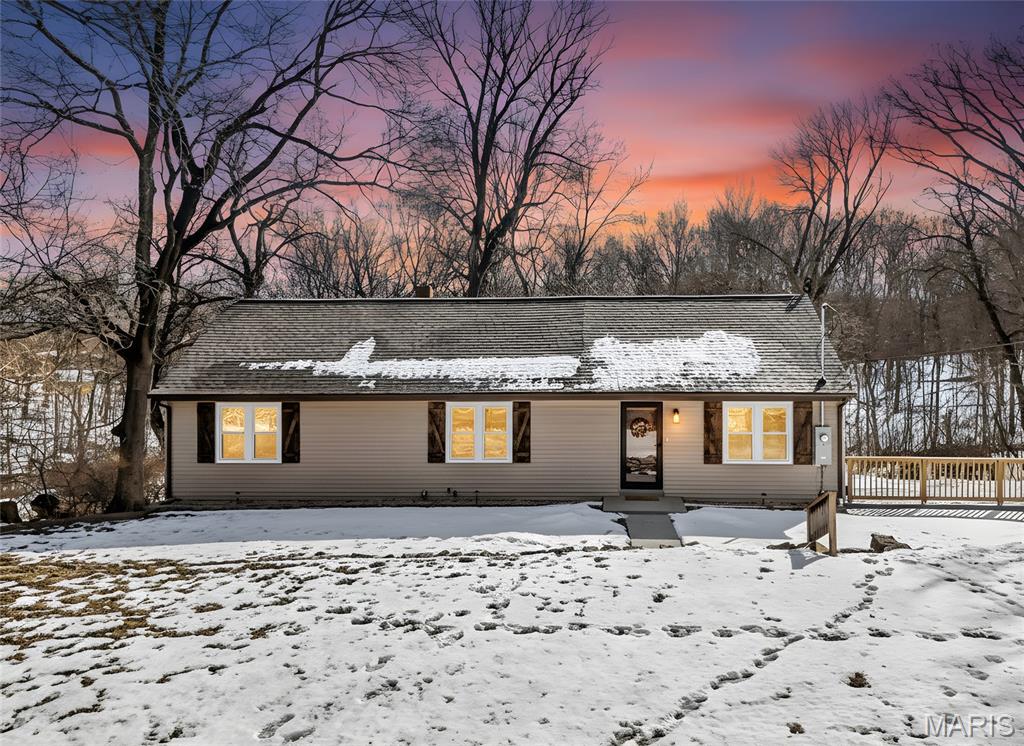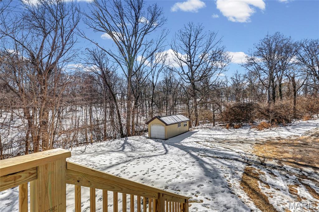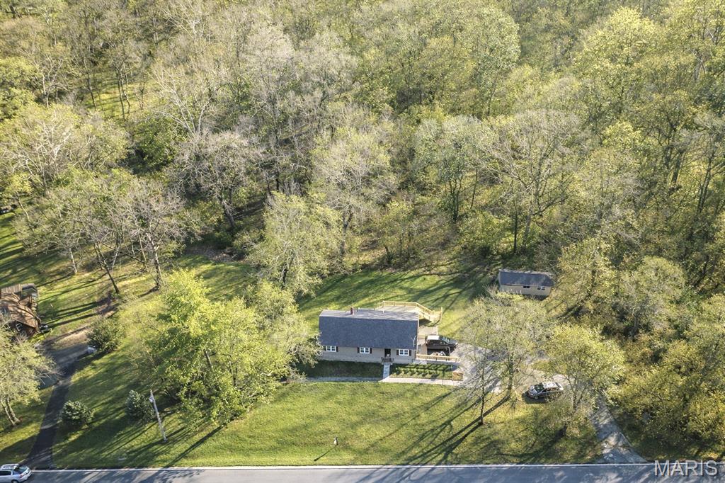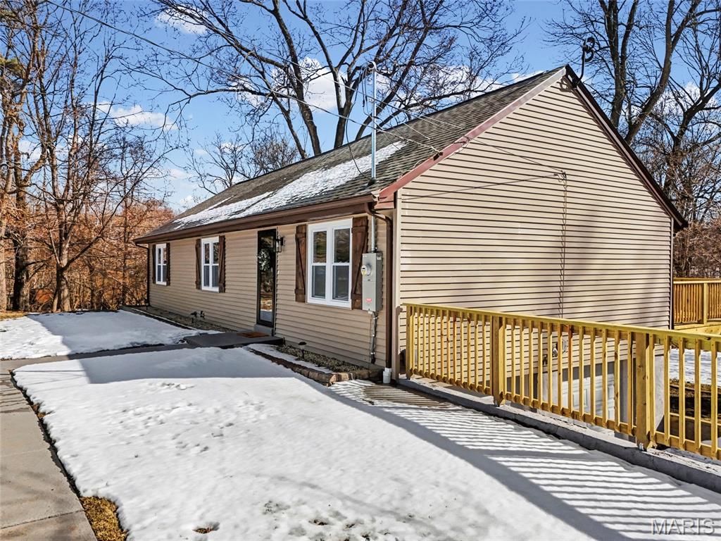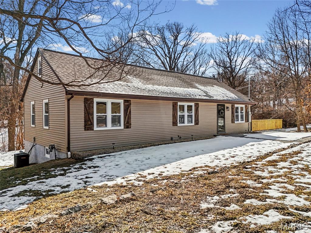 RARE OPPORTUNITY! Beautifully rehabbed 3 bedroom ranch home with an exceptional location including an attached two car garage, new roof, an outbuilding AND a huge brand new back deck with two sets of stairs. You will love the updated and thoughtful finishes throughout! As you enter the inside, you'll be greeted by warm flooring, high ceilings and a great open flow. Stunning fireplace in the living room! Dining area has double doors to the back deck and also connects to the BEAUTIFUL, spacious kitchen with all brand new appliances featuring built-in microwave, hood and all Cafe appliances. Custom cabinetry and quartz countertops round up your kitchen area. Main floor primary bedroom has double doors, double closets and connects to the upstairs loft room - a great space which could be used as an office, playroom, dressing room or even as an additional sleeping room! Full bathroom has ample room for you and your family. Two sizable bedrooms and an additional half bath complete the main level. For more living space you could finish the lower level. This basement features a walkout and lots of storage space! Outside you'll find lots of gardening space, playground areas, lots of privacy and beautiful wooded views. Great backyard with endless options, add a pool/ hot tub or even an outdoor kitchen! See additional info sheet with highlights & upgrades. Conveniently located between the 2,000 acre Creve Coeur Park & Lake and the very nice Maryland Heights Community Rec Center, AAA Parkway schools with McKelvey Elementary School, close to all shopping, restaurants and quick highway access! You do not want to miss it - this is a one of kind home. CALL NOW