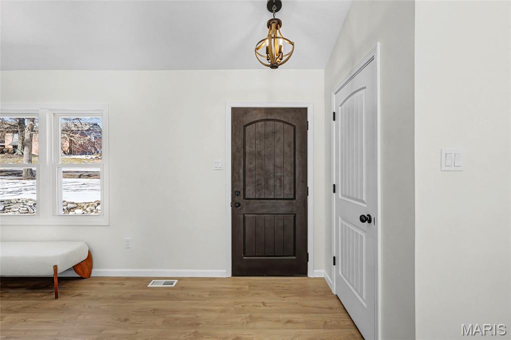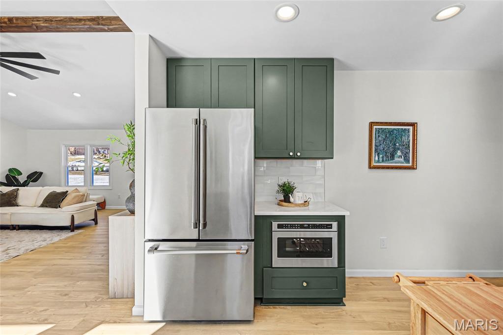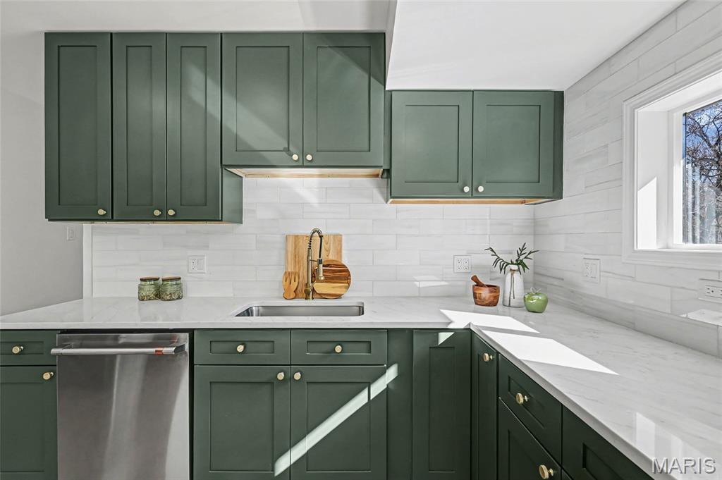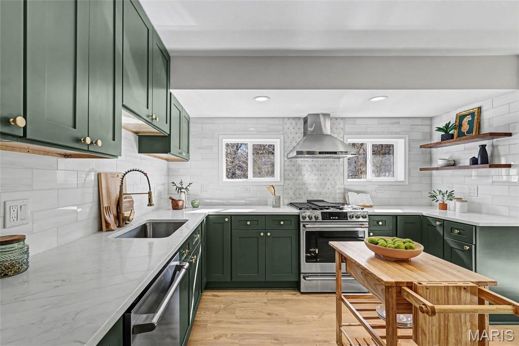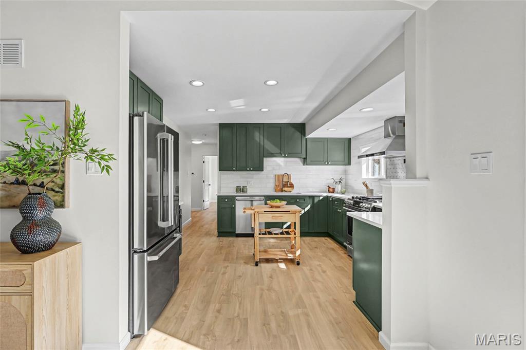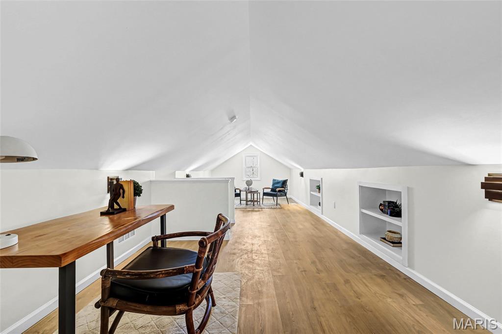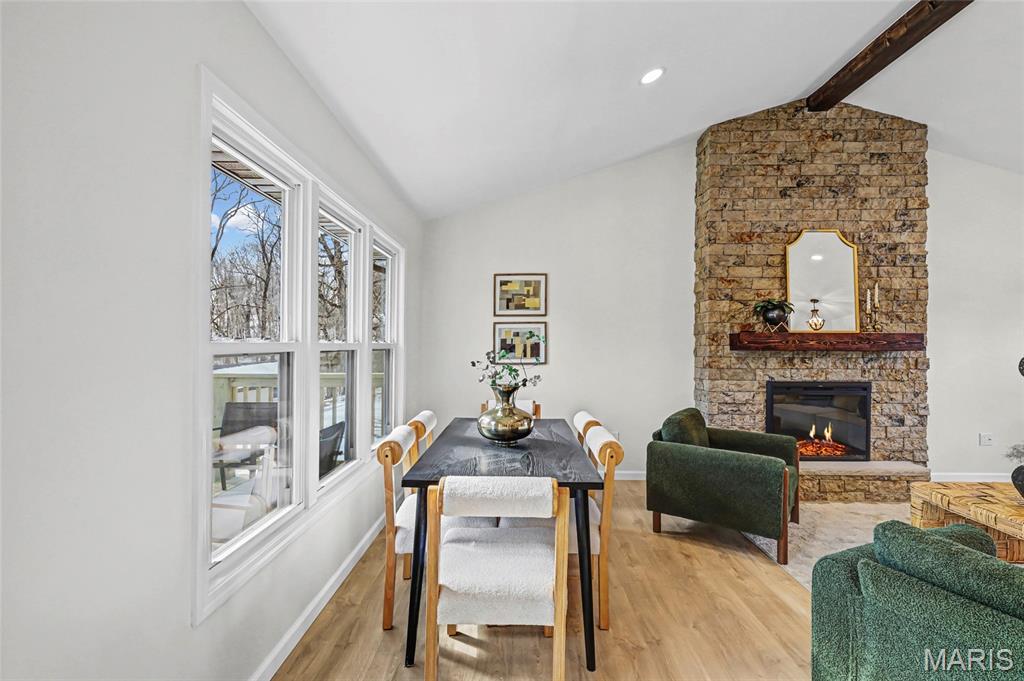 RARE OPPORTUNITY! Beautifully rehabbed 3 bedroom ranch home with an exceptional location including an attached two car garage, new roof, an outbuilding AND a huge brand new back deck with two sets of stairs. You will love the updated and thoughtful finishes throughout! As you enter the inside, you'll be greeted by warm flooring, high ceilings and a great open flow. Stunning fireplace in the living room! Dining area has double doors to the back deck and also connects to the BEAUTIFUL, spacious kitchen with all brand new appliances featuring built-in microwave, hood and all Cafe appliances. Custom cabinetry and quartz countertops round up your kitchen area. Main floor primary bedroom has double doors, double closets and connects to the upstairs loft room - a great space which could be used as an office, playroom, dressing room or even as an additional sleeping room! Full bathroom has ample room for you and your family. Two sizable bedrooms and an additional half bath complete the main level. For more living space you could finish the lower level. This basement features a walkout and lots of storage space! Outside you'll find lots of gardening space, playground areas, lots of privacy and beautiful wooded views. Great backyard with endless options, add a pool/ hot tub or even an outdoor kitchen! See additional info sheet with highlights & upgrades. Conveniently located between the 2,000 acre Creve Coeur Park & Lake and the very nice Maryland Heights Community Rec Center, AAA Parkway schools with McKelvey Elementary School, close to all shopping, restaurants and quick highway access! You do not want to miss it - this is a one of kind home. CALL NOW