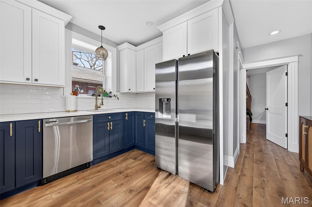 Welcome to this stunning, fully renovated gem in the prestigious University Heights neighborhood of University City. Remodeled less than two years ago, this 3-bedroom, 2.5-bathroom home perfectly blends timeless charm with high-end modern upgrades. The main level features a bright living room with original stained-glass windows and an updated fireplace. The chef’s kitchen boasts a large center island and expansive windows, ideal for entertaining. This thoughtful layout includes a full bath on both the main and upper levels, with a convenient half-bath located in the lower level. This home offers true peace of mind as a turnkey property, featuring a newer roof, HVAC system, water heater, and updated electrical and plumbing. Residents can enjoy seamless indoor-outdoor living with a large back deck that overlooks a spacious backyard. The property also provides the rare convenience of ample off-street parking. Throughout the interior, unique character remains intact with original pocket doors and meticulous finishes that make this home a move-in-ready masterpiece in a premier location. Walk to parks, coffee shops, library, and vibrant U. City Loop.