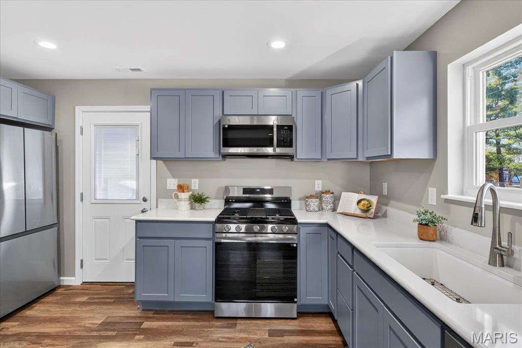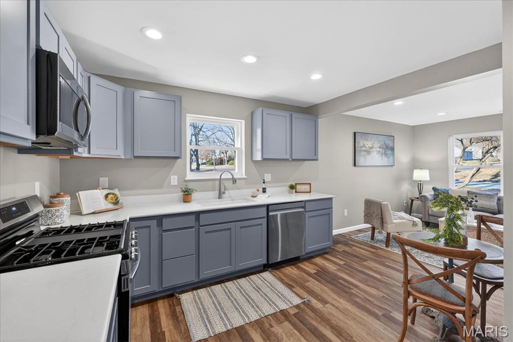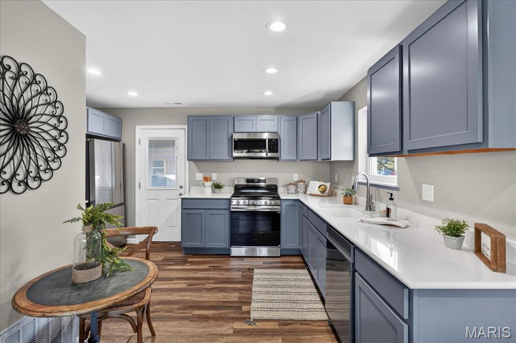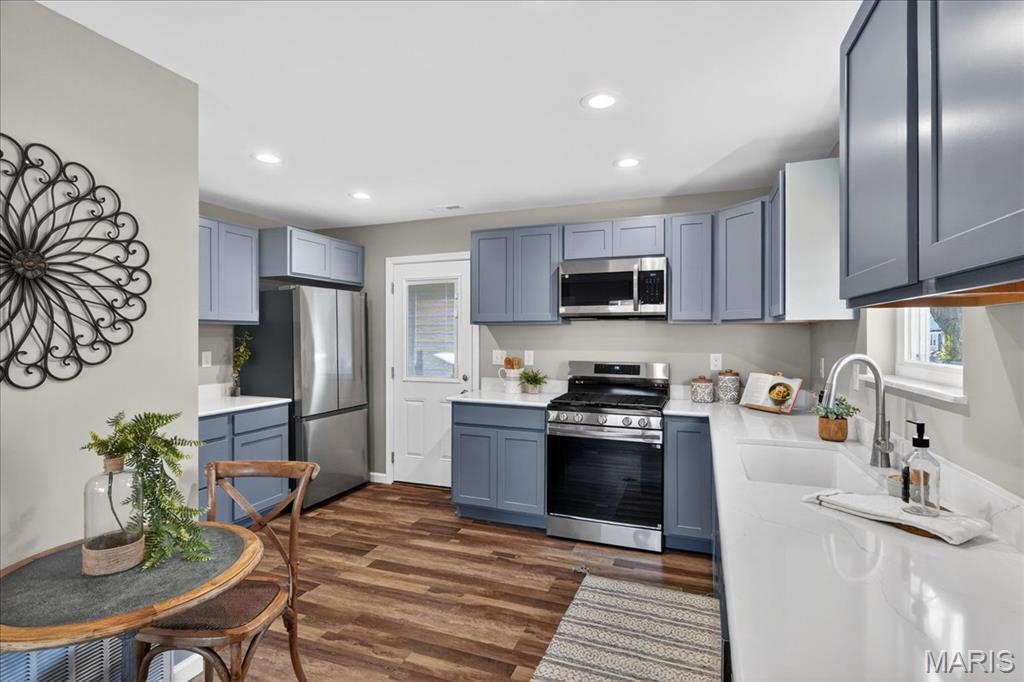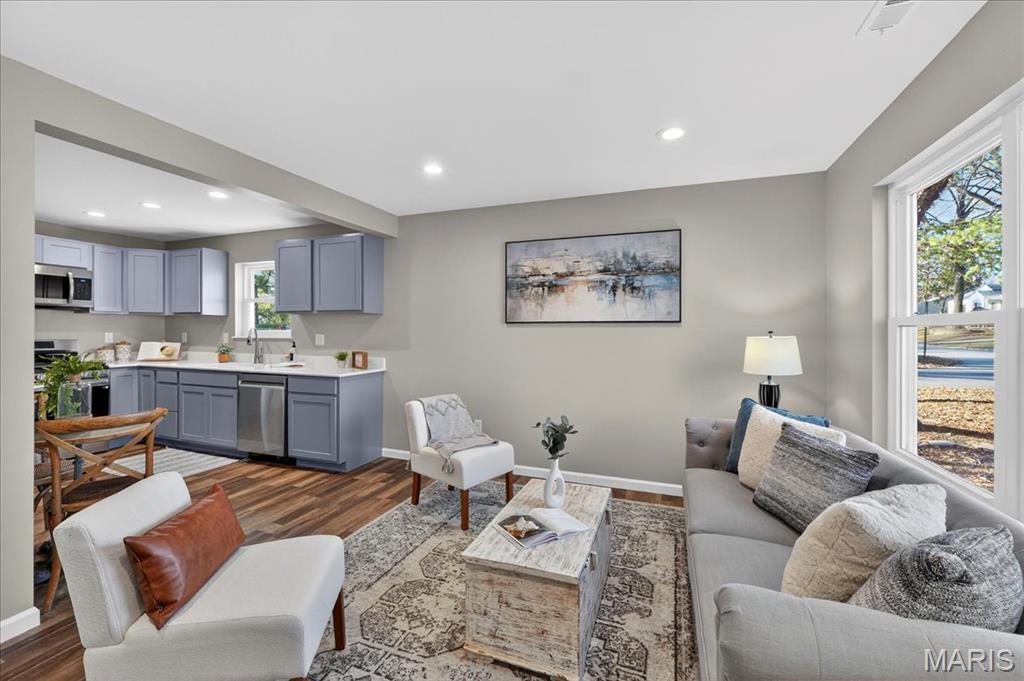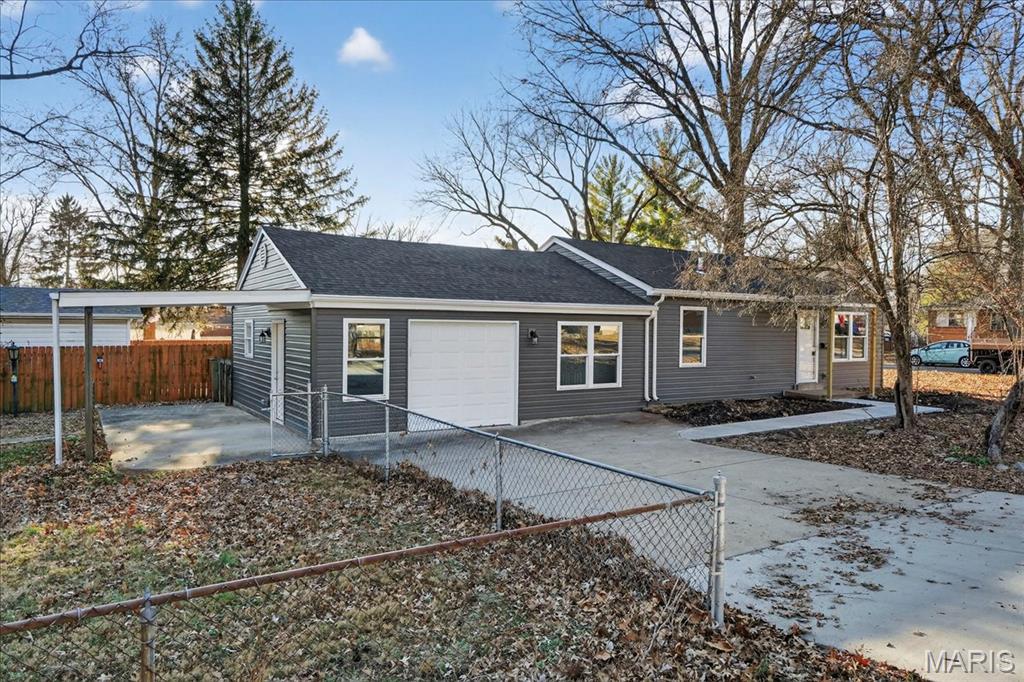 Fully renovated ranch offering modern style, fresh finishes, and move-in ready living on a spacious corner lot in desirable Old Town Florissant. This 4-bedroom, 2-full-bath home features an inviting open layout with new flooring, neutral paint, updated lighting, and abundant natural light throughout. The beautifully updated kitchen includes stainless-steel appliances, sleek shaker style cabinetry, solid-surface countertops, and ample workspace for everyday cooking and entertaining. The home offers four comfortable bedrooms with updated finishes and two stylishly remodeled full baths showcasing contemporary tile and fixtures. Outside, enjoy multiple parking options with an attached garage, extended driveway, and covered carport, along with a fenced backyard providing plenty of space to play, garden, or relax. Conveniently located near parks, schools, shopping, and major routes, this home is turnkey ready in a sought-after Florissant location.