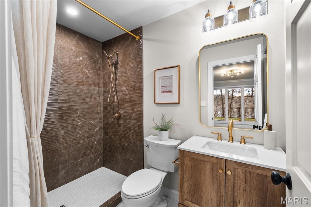 From the moment you enter, this home feels like stepping into the pages of a luxury design magazine—where architectural intention, unparalleled craftsmanship & elevated materials define every space. Rich textures, custom finishes & a warm, sophisticated palette create an environment that is both visually striking & deeply livable. Set within a private, tree-lined setting, the home offers a rare sense of serenity, evoking the feel of a refined mountain retreat immersed in nature. Expansive windows frame peaceful wooded views & flood the interiors with natural light, highlighting clean lines & thoughtful flow. Designed for daily living & elevated entertaining, the main living room features soaring ceilings, a wood-burning fireplace & wet bar, opening to the formal dining room with coffered ceilings that naturally connects the great room & chef’s kitchen. The chef’s kitchen is a true centerpiece, showcasing premium finishes, top-of-the-line appliances, exceptional functionality & a fireside sitting area ideal for gathering. A walk-in pantry & additional storage enhance form & function, while walk-out access from both the kitchen & laundry room strengthens the indoor–outdoor connection. The outdoor living space offers a tranquil extension of the home—perfect for dining or relaxing—leading to a low-maintenance, fenced backyard. A spacious 3-car garage walks directly into the main level near the kitchen, offering excellent mudroom potential. A stylish main-level bath includes a dedicated dog wash. The main-level primary suite is a private retreat among the trees, featuring a pellet stove fireplace, bay window seating with built-in storage & serene views. The spa-inspired en suite bath offers radiant-heated marble floors, a luxurious shower, separate soaking tub & refined finishes. Upstairs, 3 spacious bedrooms provide comfortable scale, abundant natural light & generous closet space. One includes a private en suite bath, while the remaining 2 share a well-designed Jack-&-Jill bathroom. The walk-out lower level adds exceptional versatility with a full kitchen, dining area, family room, living room, spacious en suite bedroom, recreation/fitness room, 2 cedar closets & an additional half bath. With direct backyard access, this level functions as a fully realized living space of its own. Every detail has been intentionally designed & expertly executed, creating a residence that blends architectural sophistication, exceptional craftsmanship & effortless livability.
