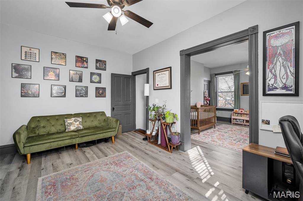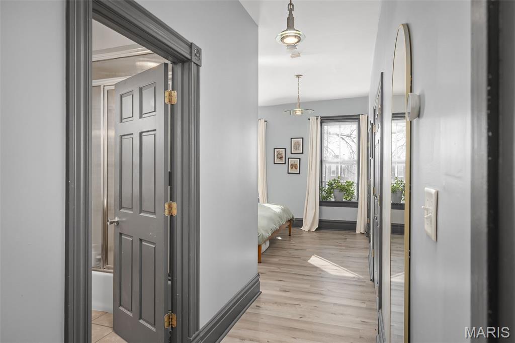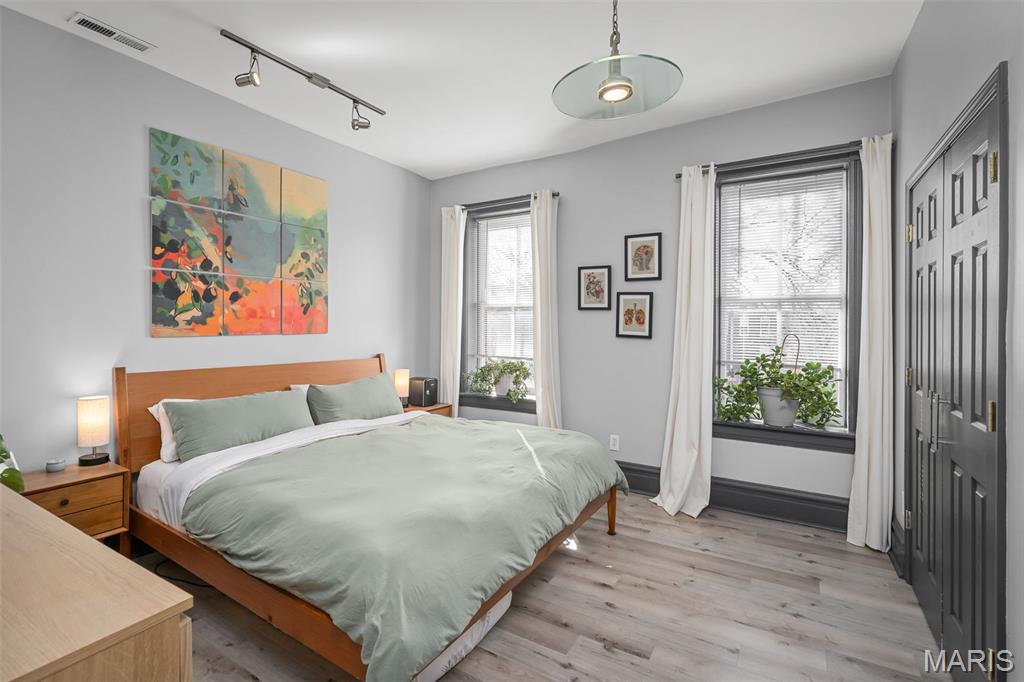 Once a four unit property, this is now two separately deeded Single Family Residences, 2206 is on the LEFT. Beautifully maintained, this 3 bedroom 2 bath, 2 story townhome in the much sought after BENTON PARK neighborhood is ready for her debut! LOCATION is everything, close to major interstates 55, 44 & 40! Walking distance to 3 parks, a dog park, restaurants and short walk to historic Soulard! This historic charmer has plenty of natural light, original pocket doors, original hardwood flooring on the main floor & steps, high ceilings spacious rooms and a level fenced in backyard with OFF STREET GATED PARKING and a new ELECTRIC GATE in 2023. New roof installed in 2020. Zoned HVAC, new units in 2022 & 2025. Lots of storage including a walk in pantry. All kitchen appliances to stay, as well as stackable washer and dryer on 2nd floor. New sewer lateral replaced by the city in 2020. Several new windows including both front & back doors. Upstairs primary bedroom boasts his & her closets and lots of natural light with two full windows. Several new ceiling fans and lighting. New bath fixtures in main floor bath. Fireplace in the dining room is gas insert and ventless, the fireplace in the upstairs bedroom is decorative only.
