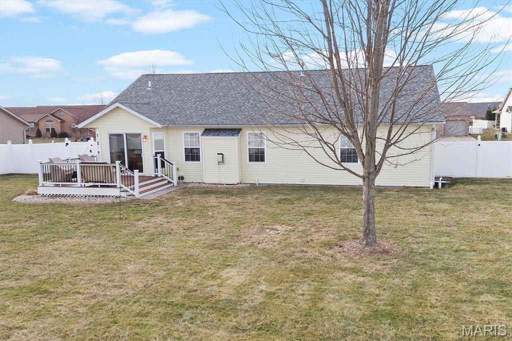 Showings begin Saturday, Feb. 28th. Spacious and beautifully maintained, this 4 bedroom, 3 bath ranch offers comfortable one-level living with room to spread out. The open and inviting layout features a generous living area, functional kitchen with ample cabinetry, and a dining space ideal for everyday living or entertaining. The primary suite includes a private bath and plenty of closet space, while additional bedrooms provide flexibility for guests, a home office, or hobbies. The basement features a family room, 4th bedroom and full bathroom with brand new LVP flooring. Enjoy outdoor living in the fully fenced backyard with a 6-ft privacy fence—perfect for pets, play, or relaxing evenings. Desirable neighborhood, great for walks The brand-new composite deck creates a low-maintenance space for grilling and gatherings year-round. A 3-car garage provides abundant storage and parking, rounding out this move-in ready home that blends comfort and convenience. Many updates include new flooring throughout, HWH (2019), HVAC (2020), Roof (2023), Composite deck (2021). Basement has been waterproofed and warranty conveys to new owner. Call your favorite agent and schedule a tour!