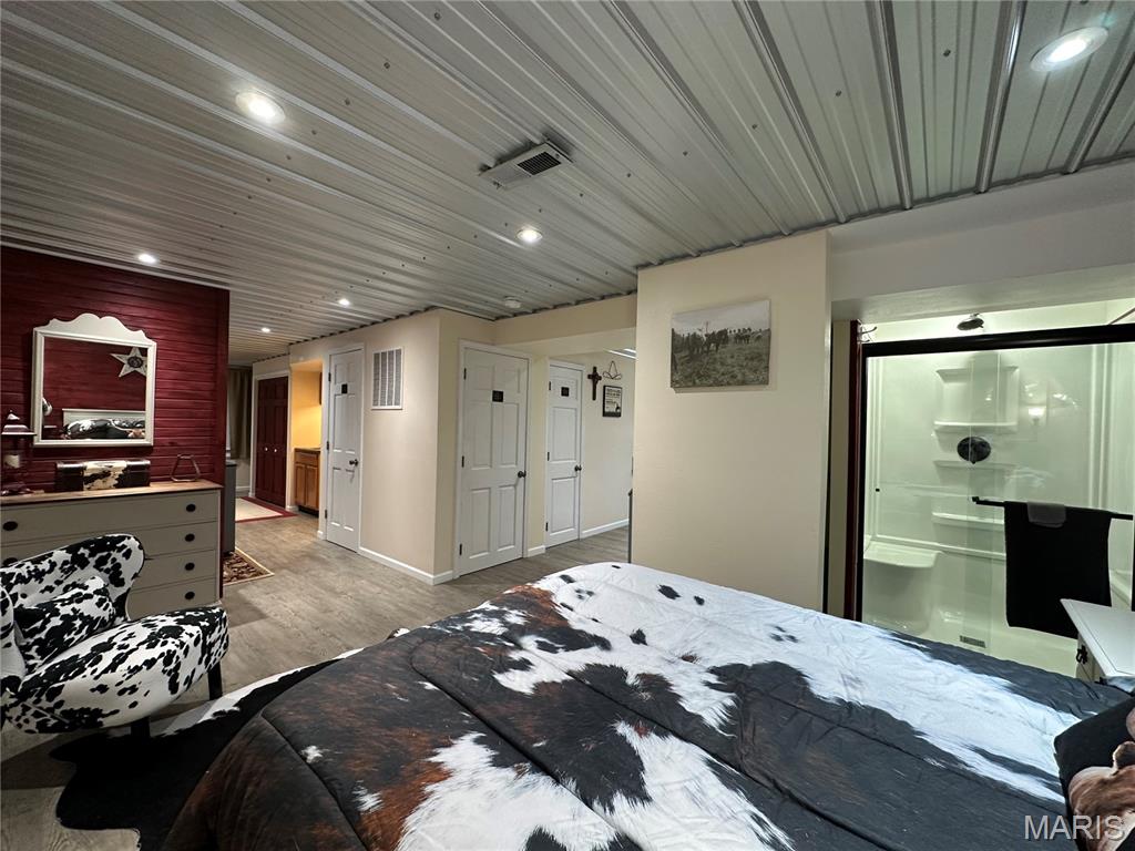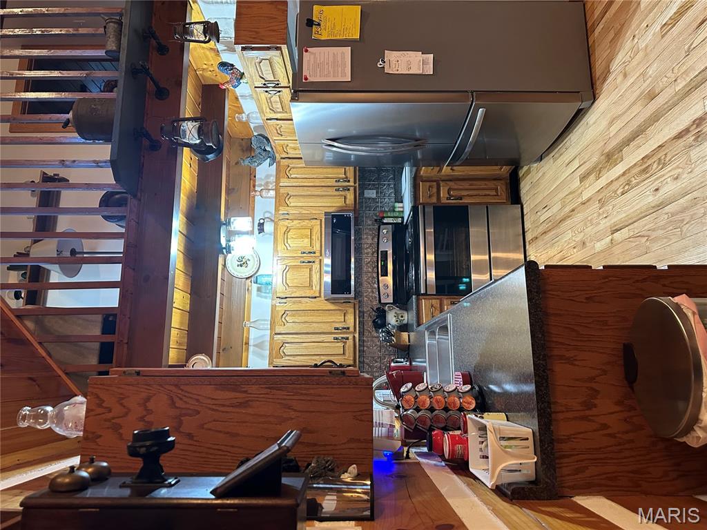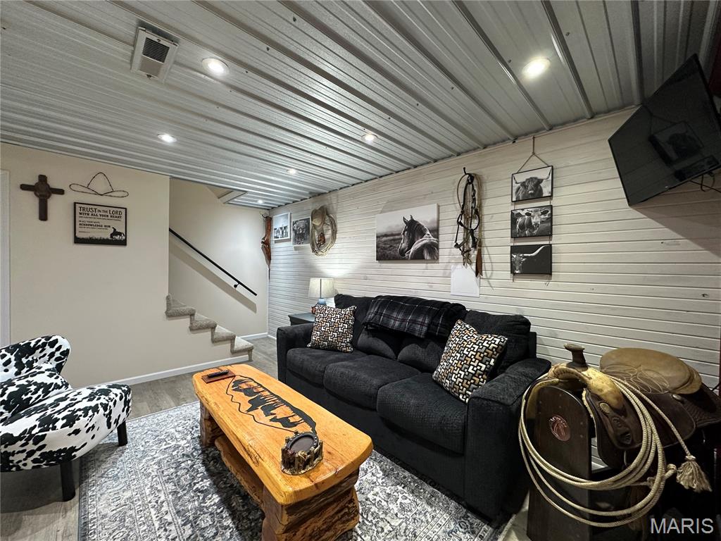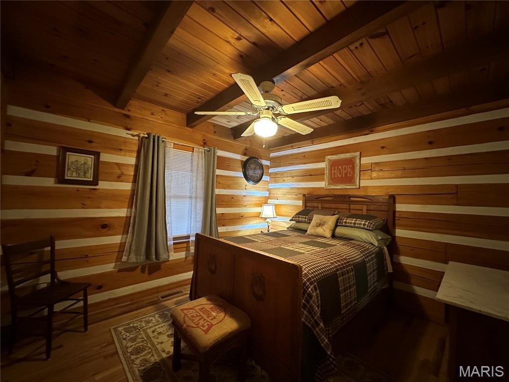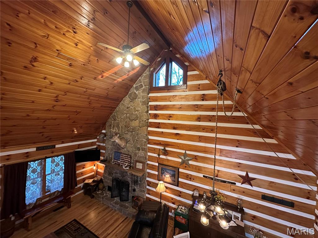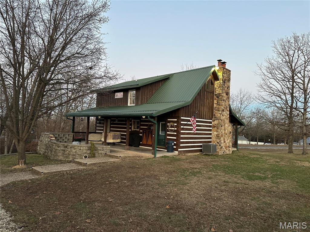 Meticulously cared for 1½-Story Log Home on 5.90 Picturesque Acres, currently operating as a successful Airbnb and offered Fully Furnished. This stunning cabin features 12" x 9" exterior hand-hewn tongue-and-groove logs with framed interior walls. The Great Room showcases an amazing two-story stone wood burning fireplace, soaring vaulted ceilings lined with beautiful 6" tongue-and-groove wood planks, and gorgeous wood flooring throughout. The primary suite offers a spacious bath with heated tile floors and a walk-in closet. The kitchen features newer appliances and flows seamlessly into the living space—perfect for entertaining. Additional highlights include custom baths, a high-efficiency heat pump, solid pine 6-panel doors, and exceptional craftsmanship throughout. The finished lower level includes a second kitchen, family room, recreation area, half bath, and a den/office space, offering flexible living or guest accommodations and walks out to a covered patio w/hot tub and counter bar, great for entertaining. Enjoy the outdoors from the covered front and back porches, surrounded by gorgeous landscaping. The property also features an aggregate patio and walkway—ideal for relaxing or hosting guests. Outbuildings abound, including a 50' x 30' shop with living quarters, a barn with hay loft, chicken coop, metal storage building with concrete floor, carport with RV hook-up, and a stocked pond. Horse lovers and animal enthusiasts will appreciate the space and versatility this property provides. Whether you’re looking for a private retreat, hobby farm, or an income-producing short-term rental, this exceptional property offers it all—just minutes from town conveniences.