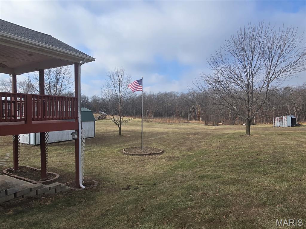 Beautiful one owner home on 3.3 acres backing to Cuivre River State Park horse riding distance to Equestrian trails, Lincoln Lake, and so much more! 2 sheds out back as well! Home features hardwood entry which welcomes you into the vaulted living room with gas fireplace and walks into vaulted kitchen with breakfast bar, pantry and walks out to covered deck-MFL-crown molding-extra wide hallways-master suite features vaulted ceilings plus 2 more bedrooms on main floor and finished walkout basement with another bedroom, bathroom and family room area -no none restrictions and there is a $10 per month shared well fee-home is well insulated and has extra wood stove in basement as back up to electric!