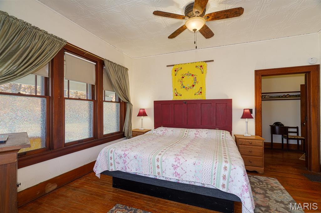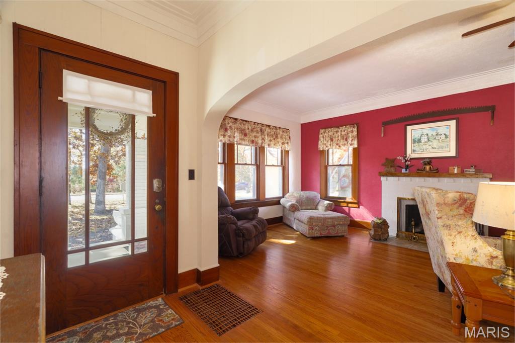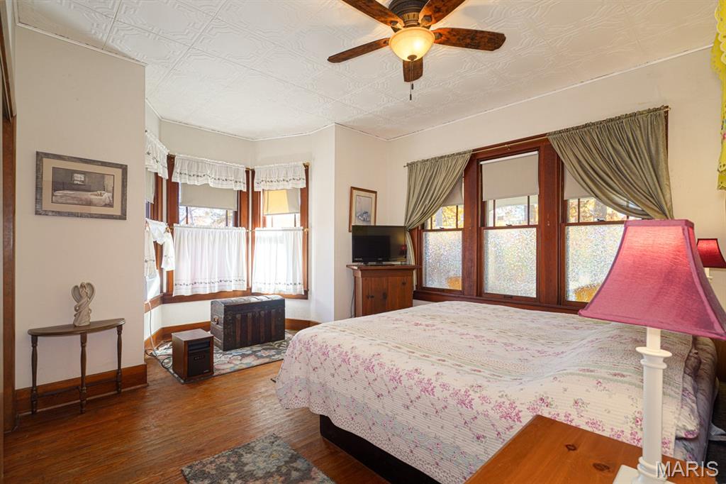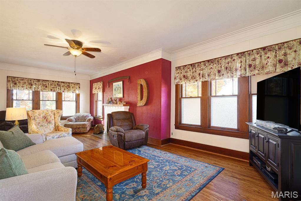 BEAUTIFUL, TREASURED, & HISTORIC, TRUE CRAFTSMAN HOME ON LOVELY SALEM AVENUE has been lovingly preserved, maintained, and improved. The welcoming covered front porch leads to a lovely Entry through the Original door (try out the working doorbell!), large rooms, and beautiful wood floors throughout most the of Home. With period millwork and light fixtures, glass door knobs, and even original glass, this home has tons of historical charm that you will absolutely fall in love with! There is room for family plus entertaining in this 4 bedroom, 2 bath beauty sitting on just over an acre with a large fenced back yard and 40' x 28' patio surrounded by established perennial landscaping. The main floor offers large Living room with wood burning fireplace, spacious Dining, Kitchen with updated appliances, light fixtures and new faucet (8/25) that complement the real wood cabinetry, a sunny Breakfast room with extra Pantry space, Primary bedroom with bay window and large closet, 2 more bedrooms and walk-in closet, and updated bathroom. The upper level is a spacious and bright private bedroom with ensuite bath with 18" toilet update and large walk-in shower, that could also be your escape away. The lower level offers a large main room with laundry chute from the main floor walk-in closet, a Recreation or Workshop room, and Storage room. A natural gas heat pump and circuit box were installed new in 2016. Besides the central air, 3 window units are included for extra comfort. The property also includes a 20'3 x 14'3 insulated Garage/Workshop with electric, concrete floor, and loft plus a Suncoast storage shed. The owners also added a neighborhood sharing library that will remain with the property. This is your opportunity to own an incredible piece of Rolla's history!