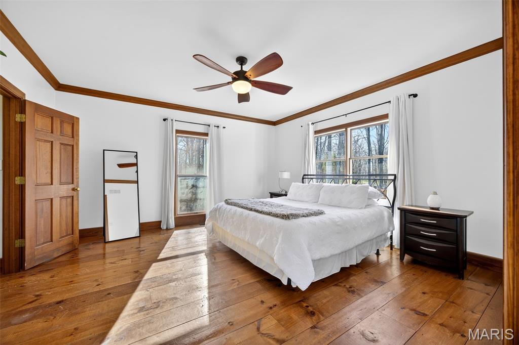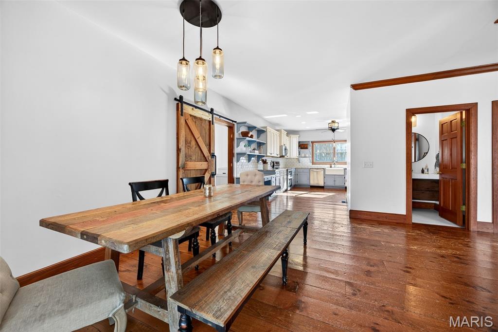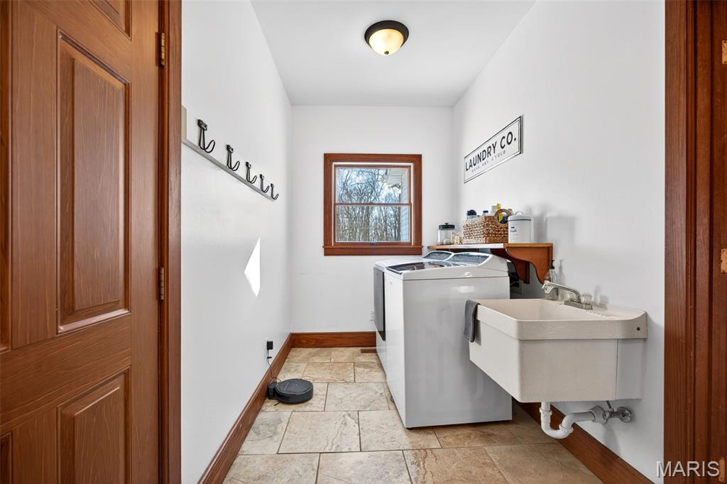 Spacious ranch home on 3 acres in one of the most beautiful settings in St. Charles County. Welcome home to picturesque rustic hardwood floors, a spacious country kitchen, large windows, vaulted ceilings, and TWO cozy fireplaces. The front, back, and side yards boast lovely mature trees placed perfectly to enhance the view and privacy. The pool (complete with a waterfall, salt water, and heater) and outdoor kitchen are the perfect entertaining space for at least three seasons! Relax and enjoy the calm evenings or an early morning coffee from the privacy of your screened-in porch. Spacious, oversized garage allows for storage space plus three vehicles. The wood-burning stove in the basement allows for cost-effective heat all winter long. Do not miss this gorgeous open concept kitchen, use the breakfast nook as your full-time meal space, or the flexible office/ dining room just off the front of the house when entertaining. The list of customization in this home goes on and on: spacious primary bed/ bath & closet, four main floor bedrooms, some walk-in closets, beautiful built-ins throughout, fresh paint, new carpeting in the basement, large windows, expansive front porch, basement wet bar, walkout, egress windows, public water, and newer HVAC. Located in the coveted Francis Howell School District. This beautiful home is one you are not going to want to miss!