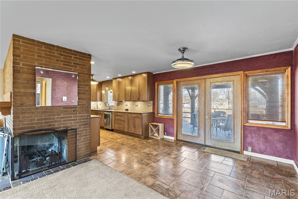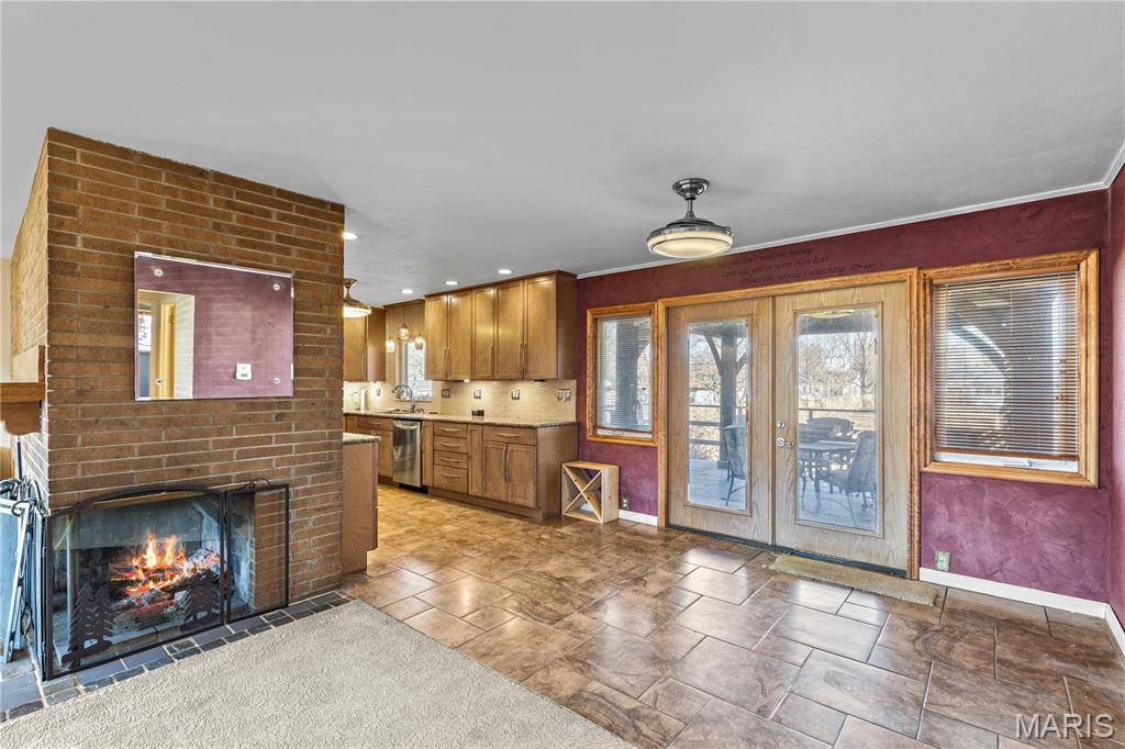 You will love this Godfrey Ranch with attached garage, full finished basement with game room, wet bar & full bath with shower & jacuzzi tub. Limestone fireplace in living room & Rec Room. Kitchen dining combo with rear screened porch access, large fenced backyard and rear screened porch. Electric vehicle charger!! 3 miles to interstate access, Close shopping, dining, parks & the Great River Road at the Mississippi River. Move in condition. Suitable for Bed/Brk