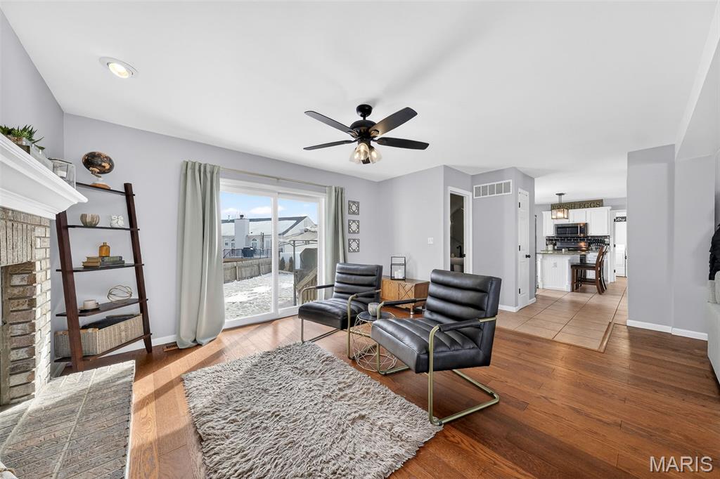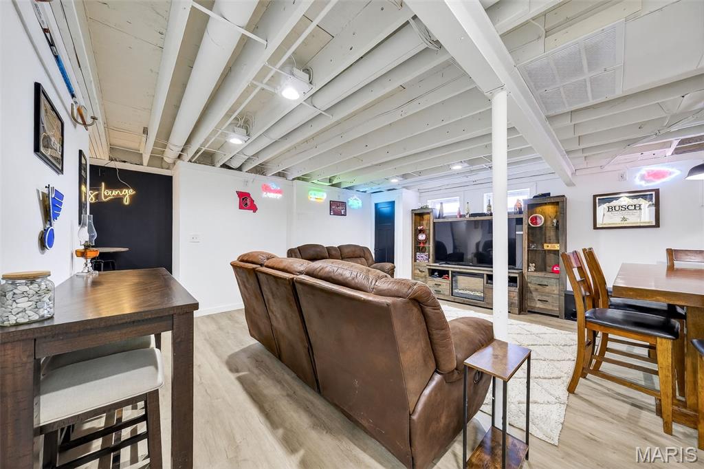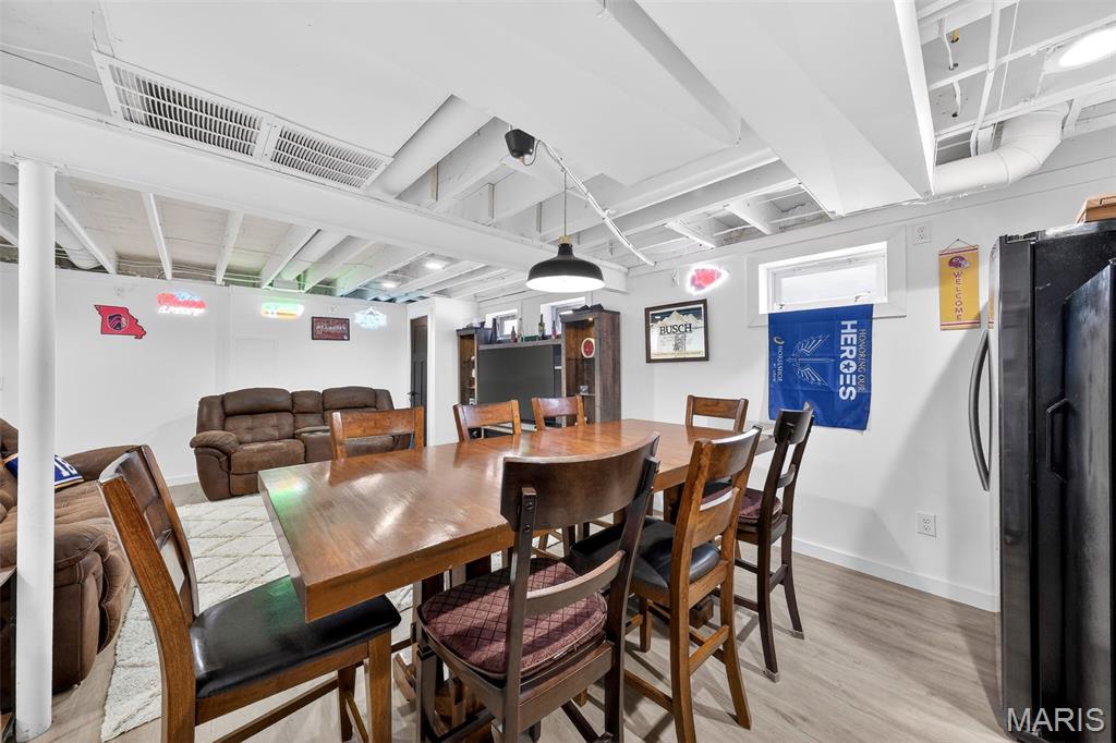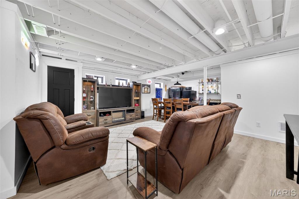 This beautiful two-story, four-bedroom home in highly sought after Patriot's Landing offers the perfect blend of comfort, space, and functionality. The main level features an open-concept layout with a spacious living room and sitting room filled with natural light, a modern kitchen with ample cabinetry and center island. A convenient powder room and laundry area complete the first floor. Upstairs, the primary suite provides a private retreat with a generous walk-in closet and a well-appointed en-suite bathroom featuring a soaking tub and a separate shower. Three additional bedrooms offer plenty of space for family or guests and share a full bathroom with modern finishes. The finished basement expands the home’s living space, making it perfect for entertaining or relaxing. It includes a stylish wet bar creating a great space for hosting in your "Man Cave". A convenient half bath adds functionality, while the remaining open area can be used as a playroom, game room, home gym or office. With its thoughtful layout and inviting living spaces across all three levels, this home is designed to meet the needs of modern living while offering warmth and comfort throughout. This home is conveniently located close to schools, shopping, restaurants and highways. Everything you need(and more) is just a 5 minute or less drive.