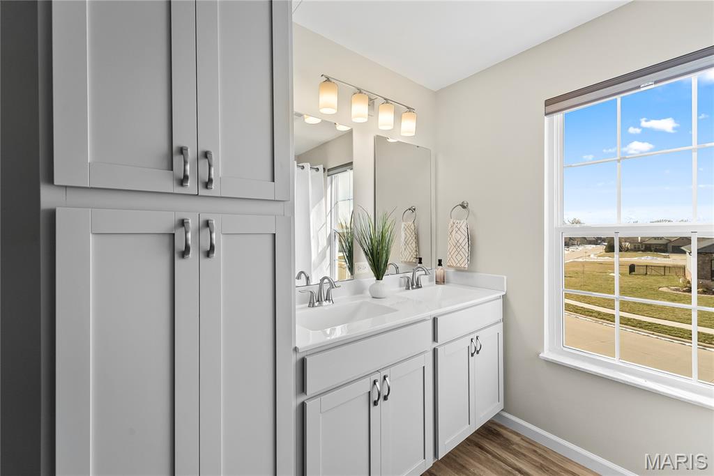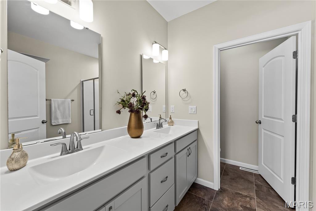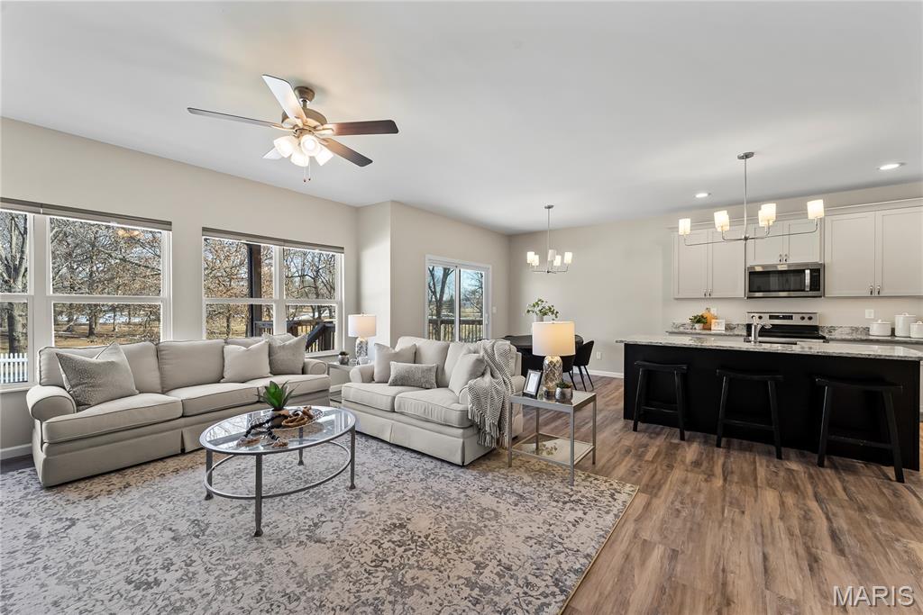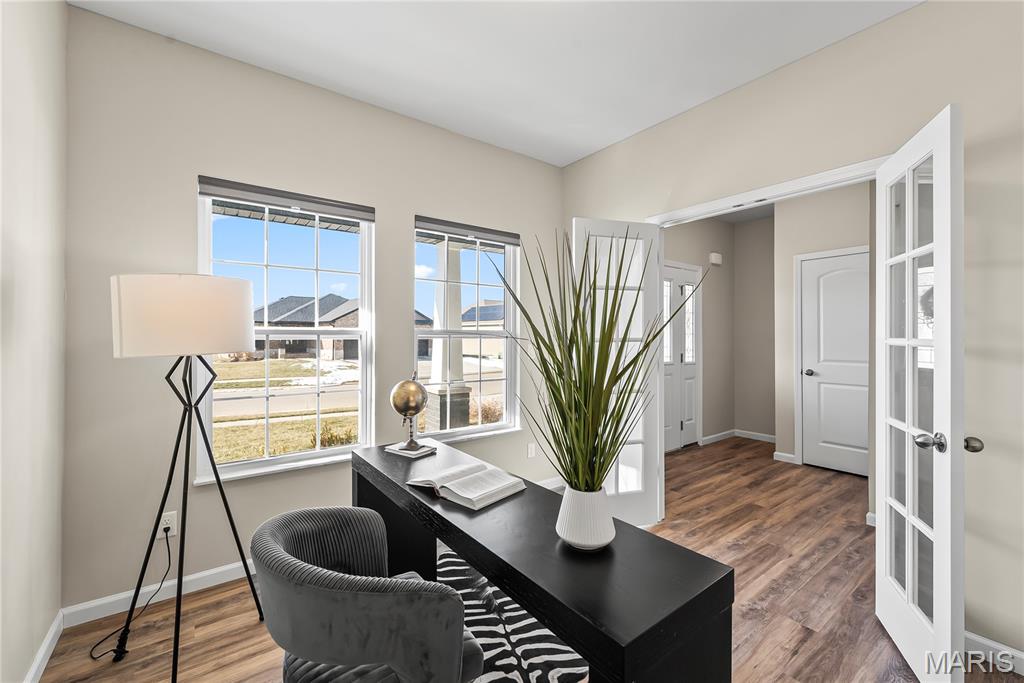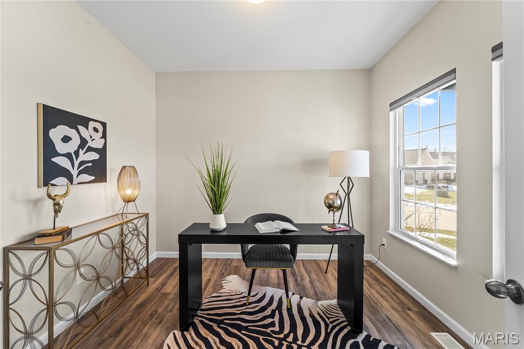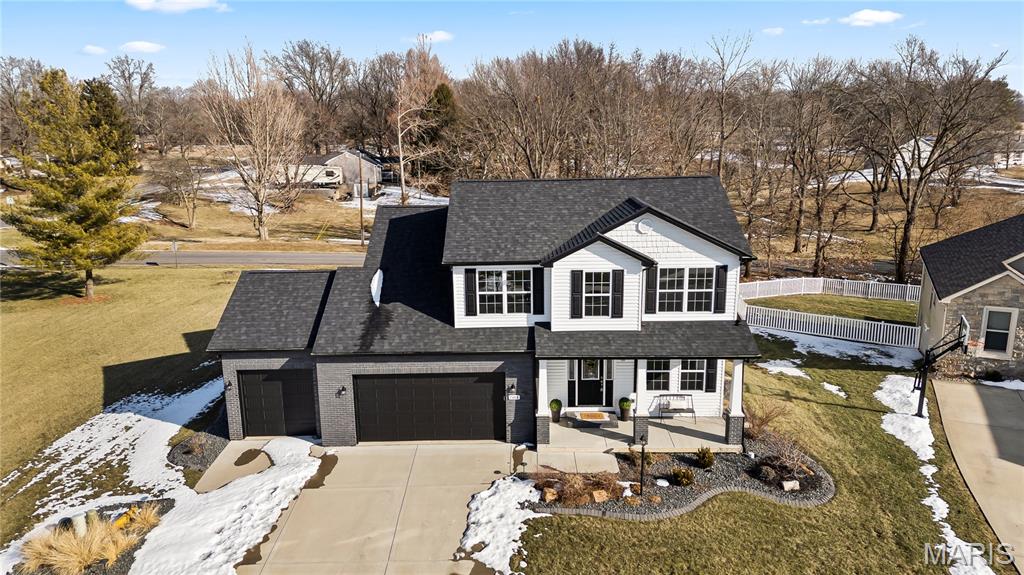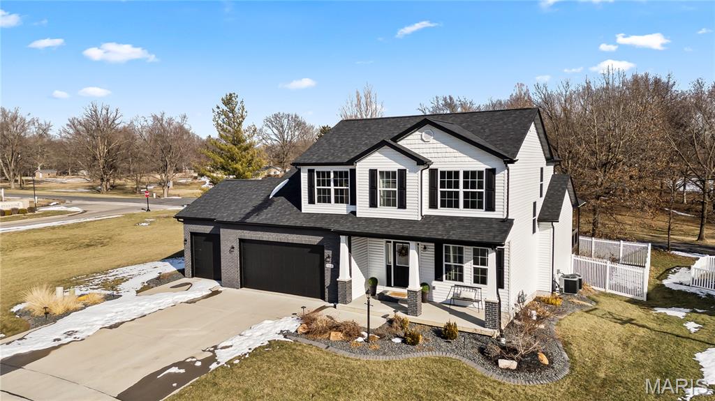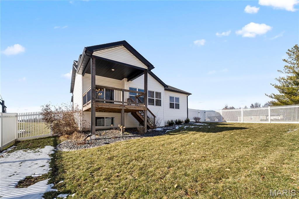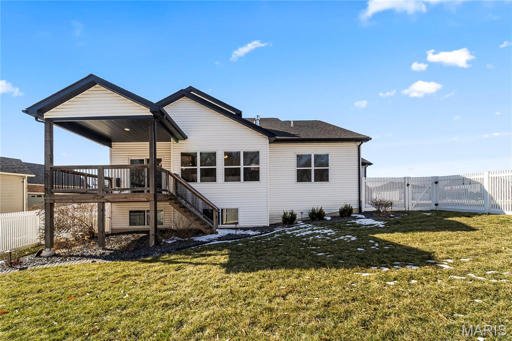 Perfectly positioned on two parcels totaling nearly half an acre, this story-and-a-half residence offers the space and feel of new construction — without the wait. Beautifully maintained, this 4-bedroom, 3-bath home has been thoughtfully designed for both comfort and function. Natural light fills the open floor plan, creating an airy and inviting atmosphere throughout. Just off the foyer, a private office with double French doors provides a refined and quiet workspace. The heart of the home is the well-appointed kitchen, featuring a center island, walk-in pantry, 42" custom cabinetry and granite countertops. This space seamlessly flows into the breakfast room and living area — ideal for everyday living and effortless entertaining. The main-level primary suite is a peaceful retreat, highlighted by a vaulted ceiling, spacious walk-in closet, and bath with custom cabinetry and double bowl sinks. A functional mudroom with drop zone keeps daily life organized, while the main-floor laundry and guest bath add everyday convenience. Upstairs, three additional bedrooms and a full bath offer comfortable accommodations, with two bedrooms featuring walk-in closets. The expansive lower level is a blank canvas — ready to finish to suit your needs, whether additional living space, recreation area, or guest quarters. Step outside to your private fenced backyard sanctuary. The covered deck invites morning coffee or evening gatherings, while the additional lot provides rare green space seldom found within the neighborhood. Additional highlights include a three-car garage, irrigation system, and outdoor lighting. This home is ready to welcome you — schedule your private tour today.