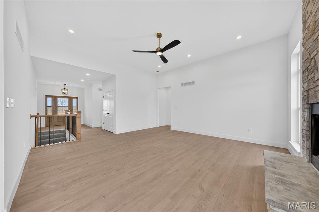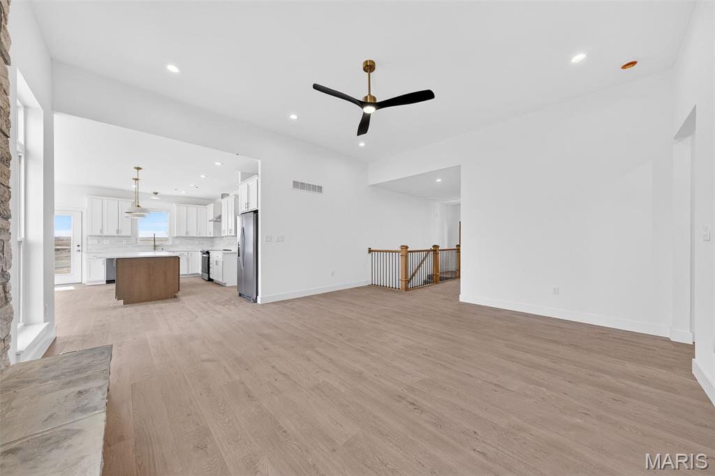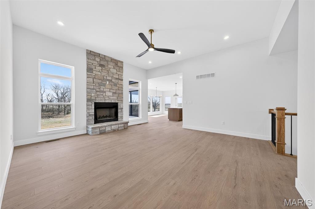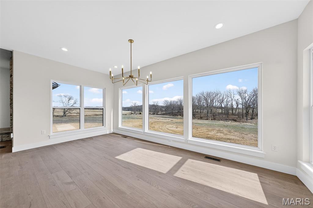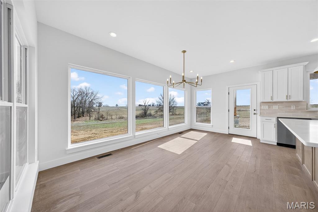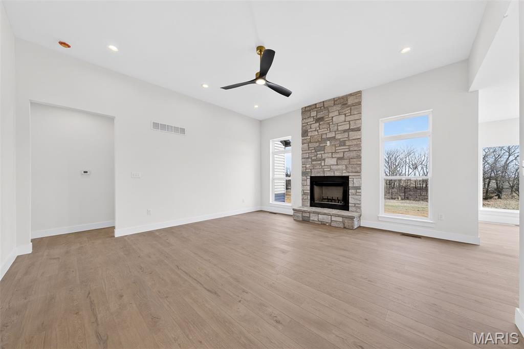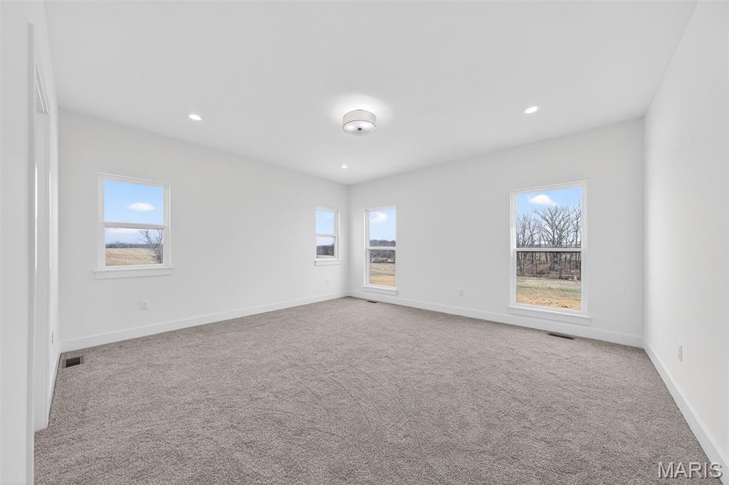 Stunning new construction ranch offering modern farmhouse style and thoughtful design throughout. This open-concept home features a bright, airy kitchen with a large center island, quartz countertops, custom cabinetry, and stylish pendant lighting—perfect for entertaining. Expansive windows flood the living and dining areas with natural light and showcase peaceful country views. The private primary suite includes a spa-like bath with a freestanding soaking tub, walk-in tiled shower, and sleek matte black fixtures. Quality finishes include wide-plank flooring, contemporary lighting, and neutral tones throughout. Inviting covered front porch, stone accents, and timeless exterior details complete the curb appeal. Enjoy the perfect blend of modern comfort and serene surroundings—move-in ready and built to impress. The streets will have asphalt this spring! 10 Year structural home warranty provided!