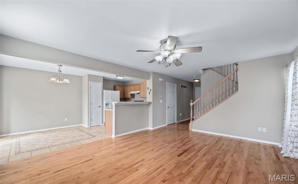 Beautiful detached townhome has an open floorplan w/ gleaming wood floors & ceramic tile on the main level w/ lots of natural light. Fully equipped kitchen, w/ lots of counter space & the refrigerator stays! There is a convenient main level powder room for guests. Upstairs you have a loft ideal for an office or playroom plus upper level laundry w/washer & dryer included & that is where all the laundry is anyways. Vaulted primary bedroom w/over headlight & walk-in closet, private bathroom w/new vanity & faucet plus a nice-sized secondary bedroom w/overhead light & a second full bathroom w/new vanity & faucet. Multiple social areas w/a finished lower level family room. Slider door leads to the patio w/ lots of green space behind you & newer landscaping. Home has been freshly painted & roof only 2 years old. 1 car garage to keep your car from the elements. You will enjoy meeting friends & neighbors at the subdivision community pool, playground, gazebo & basketball court. Don't delay, make 1612 Homefield Meadows your new home!