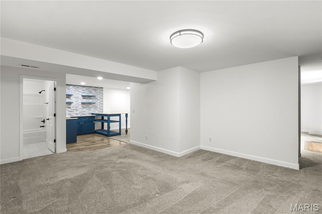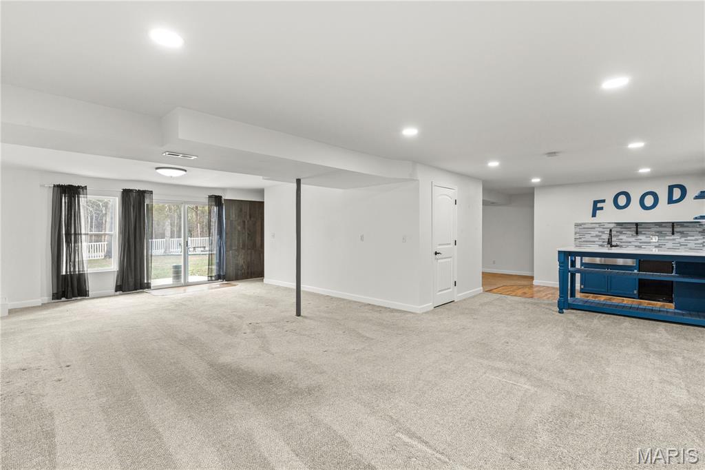 You won’t want to miss this beautiful three-bedroom, three-bath ranch in Wright City loaded with upgrades throughout. This gorgeous home offers excellent curb appeal with a large covered front porch perfect for morning coffee, low-maintenance vinyl siding, and an oversized two-car garage with a generous work area. Step inside to a spacious living room featuring airy vaulted ceilings that create an open, inviting feel. The main floor includes a convenient laundry room and a stunning kitchen with granite countertops, stainless steel appliances, a center island, recessed lighting, and a large dining area with walkout access to the deck. Down the hall, you’ll find two nicely sized guest bedrooms along with a spacious primary suite offering vaulted ceilings, a remote-control ceiling fan, walk-in closet, and en suite with walk-in shower. The fully finished walkout basement adds flexible living space with an eat-in kitchen area featuring a large basin sink, eye-catching backsplash, floating shelves, granite countertops, and a pull-up bar. A full bath nearby adds convenience. The fenced backyard completes the property with a well-maintained above-ground pool, wraparound deck, and spacious fire pit area perfect for weekend gatherings.