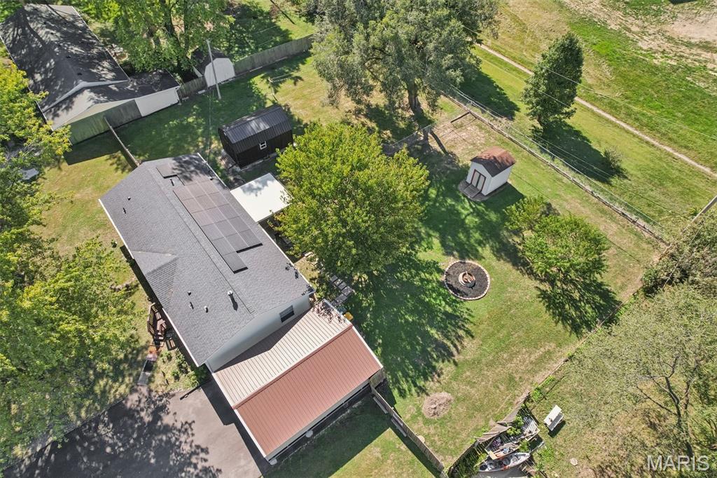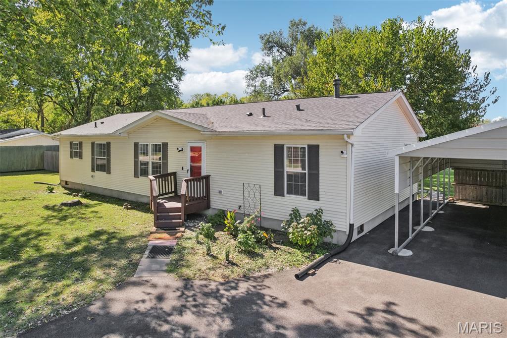 This beautifully maintained 4-bedroom, 2-bath home offers 1,620 sq ft of inviting living space on a park-like half-acre lot. Step inside to discover an open floor plan with a bright, modern kitchen featuring butcher block countertops, stainless steel appliances, and fresh 2024 paint throughout. Recent upgrades make this home truly move-in ready: a brand-new asphalt driveway, new 2-car carport, and washer and dryer included! Outside, you’ll love the massive fenced backyard — the perfect setting for gatherings, gardening, or relaxing evenings around the firepit. Enjoy your morning coffee or unwind at sunset on the spacious deck with retractable sunshades overlooking the serene yard. Need extra space? A large insulated shed provides room for tools, hobbies, or storage. Plus, this home comes equipped with solar power through an affordable Power Purchase Agreement lease — helping you save on utilities while living sustainably. Ideally located just minutes from O’Fallon, Fairview Heights, I-64, and Scott AFB, this home combines the peace of country-like living with unbeatable convenience. Don’t miss your chance to own this upgraded, energy-efficient gem — schedule your showing today!