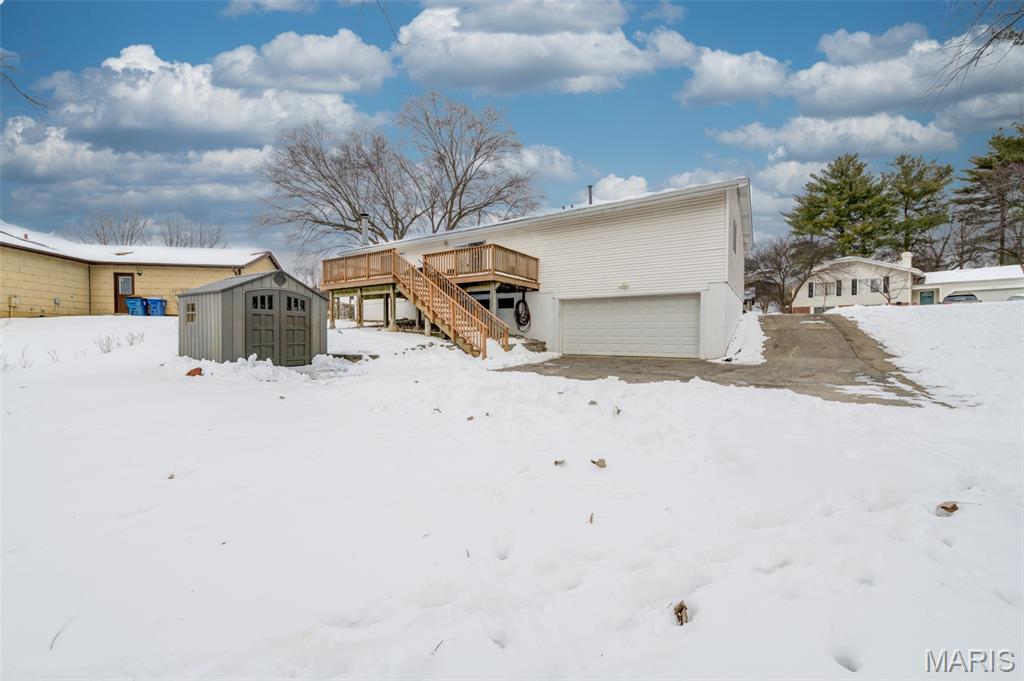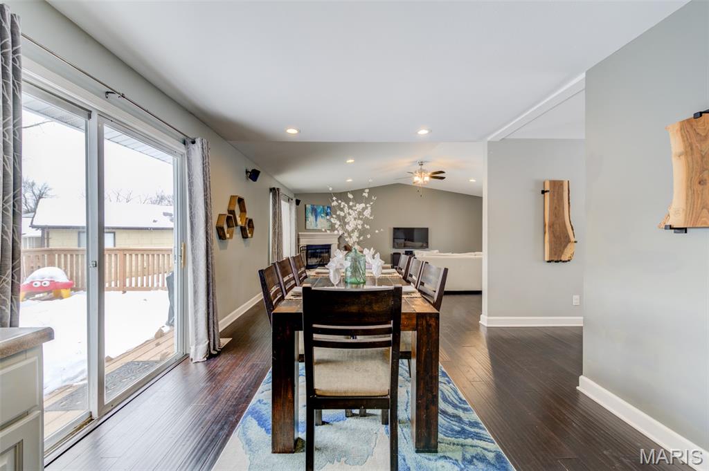 Passed Occupancy. Move-in ready. Welcome to Maryland Heights, just minutes from EVERYTHING! This walkable neighborhood is close to parks, shopping, dining, entertainment, YMCA, the Community Center, Aqua Port and more! Also, Maryland Heights shares reciprocity with Creve Coeur ice rink and golf course. This darling home was thoughtfully updated and lovingly lived in by a sweet family. You will find vaulted ceilings in the large living room. Large windows with lots of natural light. Two of the original main floor bedrooms were converted into one large primary and walk-in closet. Secondary bedroom on the main floor and sleeping room or office in the lower level with a second full bathroom. Open floor plan and amply sized deck for easy entertaining. Quiet street on cul-de-sac.