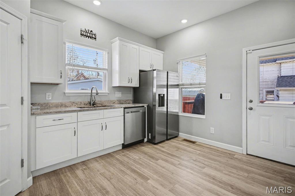 Welcome home to this completely remodeled three-bedroom, 2.5 bath two-story bungalow where timeless charm meets modern comfort. Thoughtfully updated from top to bottom, this home offers a highly desirable main-level primary suite, providing convenience and privacy rarely found in a classic bungalow design. The heart of the home is the open-concept kitchen, featuring 42-inch cabinetry, granite countertops, and stainless steel appliances, all less than five years old, perfect for everyday living and entertaining alike. Fresh, cohesive updates flow throughout the home, delivering a move-in-read experience with no detail overlooked. Outside, enjoy a fully fenced yard with a privacy fence, ideal for relaxing, pets, or gatherings, along with a detached two-car garage offering ample storage and parking. Buy with confidence knowing that all major systems and big-ticket items are under five years old, including the roof, HVAC system, hot water heater, and windows, As an added bonus, the seller will provide a $2,000 credit toward new carpet, allowing the buyer to personalize the finishing touch. This beautifully updated bungalow blends style, function, and reliability, making it a standout opportunity you won't want to miss. Schedule your private showing today! Agent related