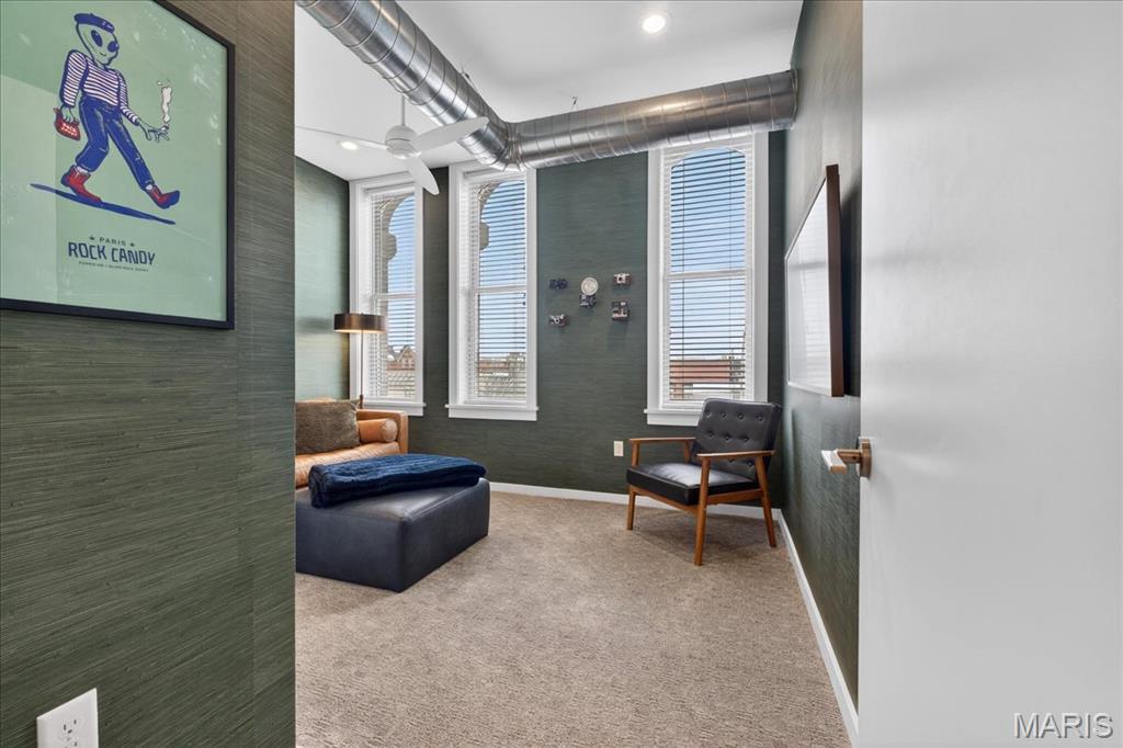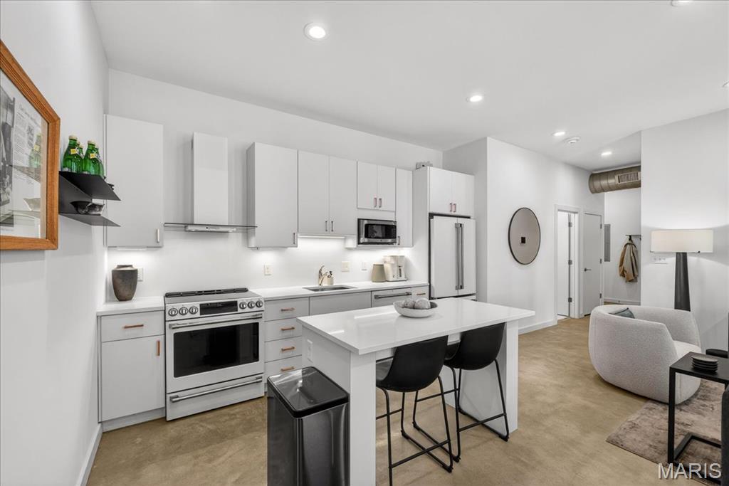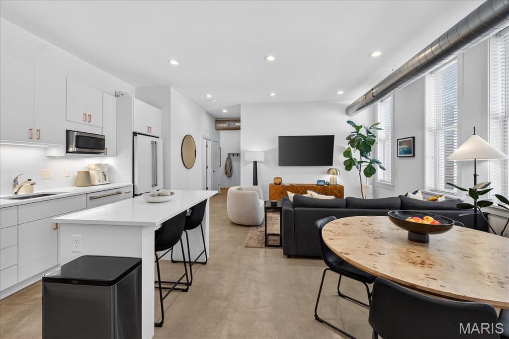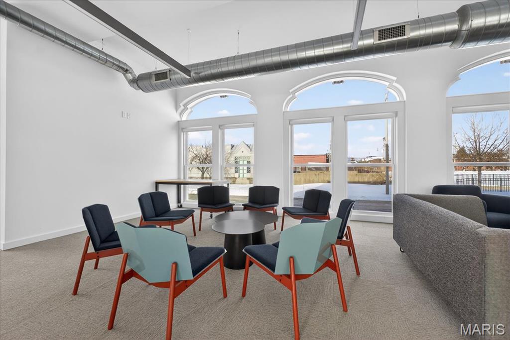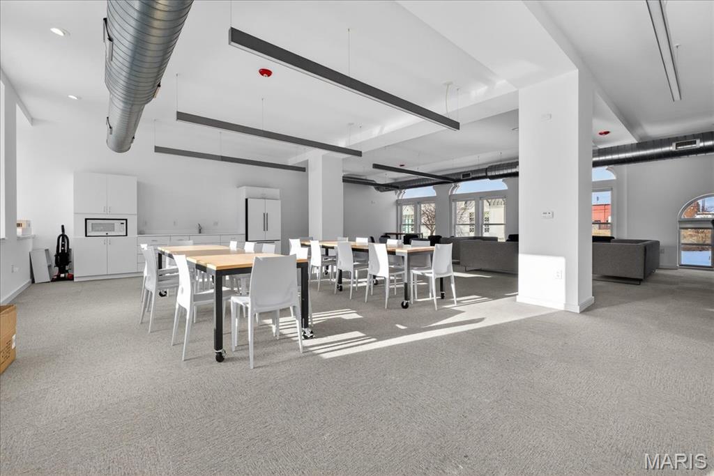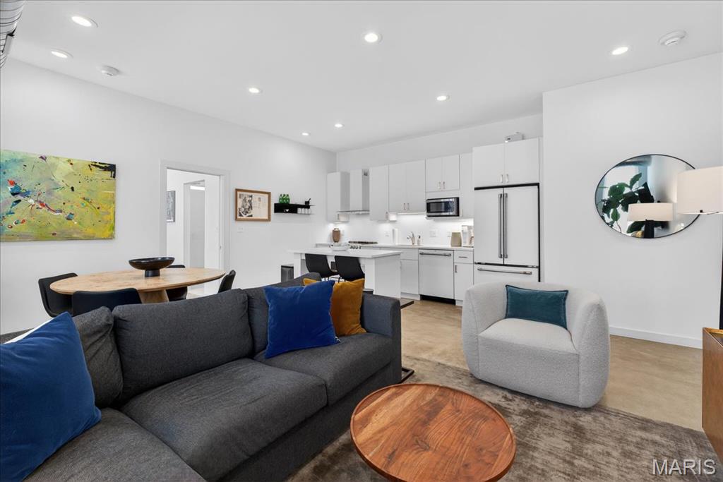 Welcome to your serene oasis at 3842 Unit 2A – one of only two condos crowning the historic Wolfner building in the On Olive community. Built in 2020, this modern home pairs the character of a vintage shell with a bright, contemporary interior. Step inside to a light-filled open plan: concrete floors, quartz countertops and GE Cafe appliances create a polished backdrop while north-facing windows bathe the living area in natural light. Two bedroom retreats are positioned for privacy, yet the generous living-dining space flows effortlessly for gatherings. Custom closet build-outs offer smart storage, and the mounted TVs in bedrooms and custom dining table stay with the home. A secure elevator brings you directly to your door, and your garage spot sits conveniently beside the pool. The HOA covers water, internet, trash, sewer and roof maintenance, giving peace of mind and low monthly costs; even the tax abatement keeps the property tax bill minimal. Beyond your doorstep, the community beckons with a gym, edible garden, dog run and lush private parks linked by meandering paths. Enjoy the resort-style pool with tanning deck, fire pit and grilling cabana, or walk to The Foundry, Alamo Drafthouse Cinema, the Contemporary Art Museum, Fox Theatre and numerous restaurants. Experience a blend of urban convenience, nature and community – an invitation to live beautifully in the heart of St. Louis.