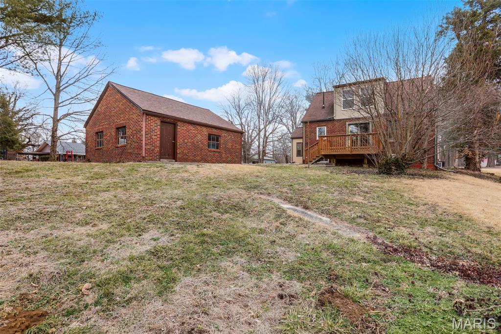 Welcome to this charming brick one and a half story home situated on 1.5 acres just minutes from SIUE! This two bedroom, 3 bath home features a spacious kitchen, eat in dining room and main floor master suite with walk in shower. The upstairs boasts an oversized bedroom/ living space with half bath and added soaking tub. Updating would provide potential for an additional upstairs bedroom giving you room to grow and add value. Two lower level rooms offer office space/ additional living area with an abundance of natural light. Laundry room, additional sink, shower and storage also in lower level. Outside, enjoy the peaceful setting from a new deck while overlooking your expansive and private lot. The property also includes a detached 2 car garage and plenty of outdoor space for gardening, pets, recreation or future expansion. Conveniently located near SIUE, shopping, dining and easy highway access- this property offers privacy and country living without sacrificing accessibility. A rare opportunity to own acreage in a prime location- Schedule your showing today!