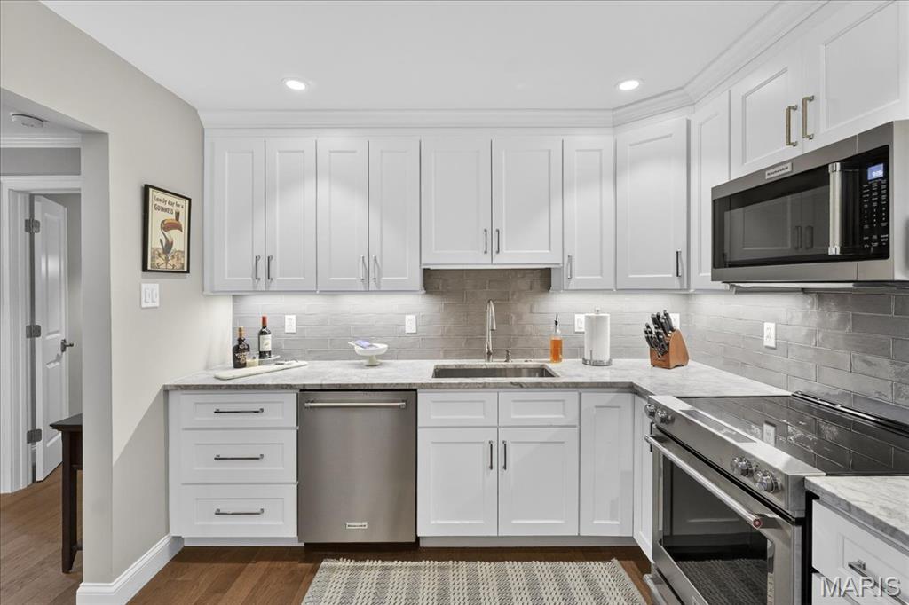 Welcome to this completely reenvisioned 3 bed / 2 bath corner unit condo in the heart of CWE. Minutes from the Basilica of Saint Louis, Cortex, BJC Medical Campus, SLU, Wash U and Forest Park, DT, Clayton and Airport. Decorated in a neutral color palette with rich ¾” hardwood floors, neutral paint throughout, gleaming new doors, moldings, base and crown make the perfect backdrop for your furniture. The kitchen, living and dining rooms are open and make entertaining a breeze. The kitchen has white cabinets with Dolomite countertops, subway tile backsplash and SS appliances. The master ensuite is huge with walk-in closet, laundry closet and bathroom fitted with Carrara marble tile and heated floor. Two additional bedrooms share a hall bath. Enjoy those sunny hot days in the community pool! 1 designated parking space and storage locker convey with sale. The best value of any 3-bedroom condo in CWE.