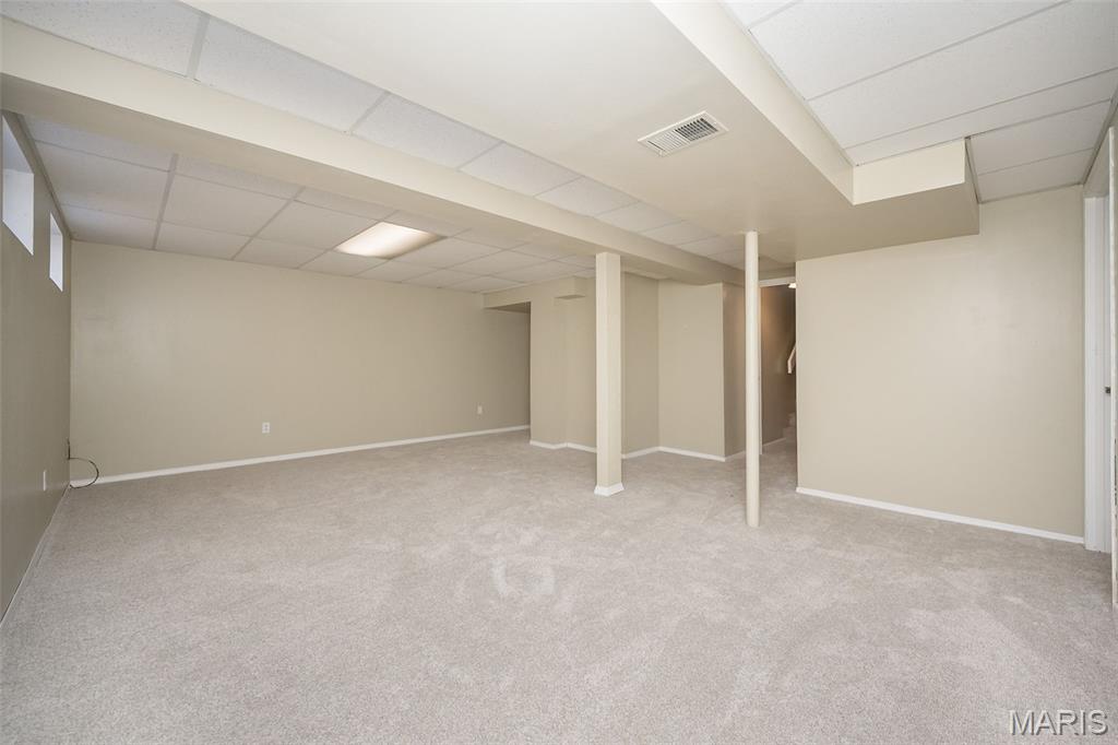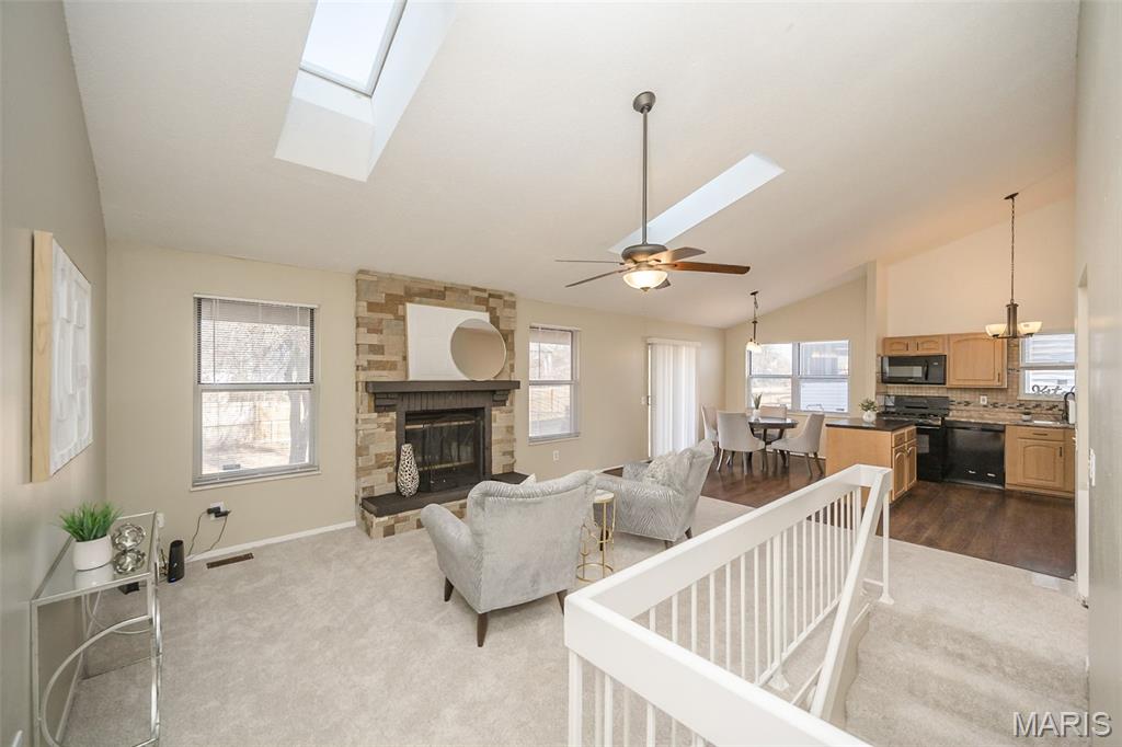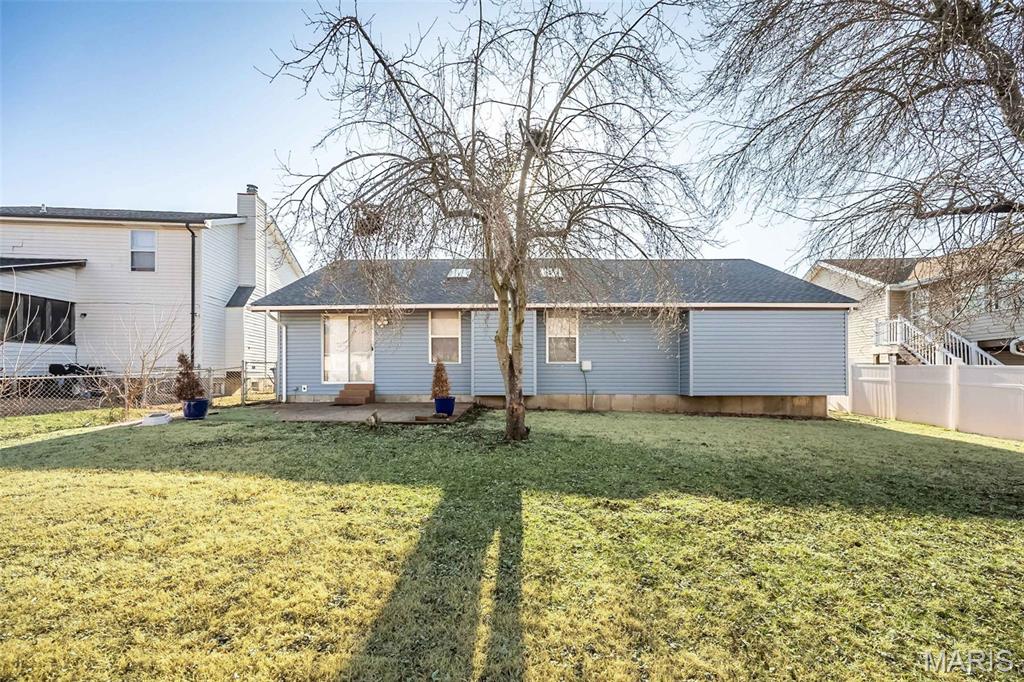 Beautifully renovated ranch home with open floor plan featuring kitchen, great room, living and dining areas plus patio. This 3BR/3BA home offers new roof, siding, gutters, and carpet. Partially finished basement provides additional living space. 2-car garage. Fenced backyard with mature trees. Move-in ready and conveniently located.