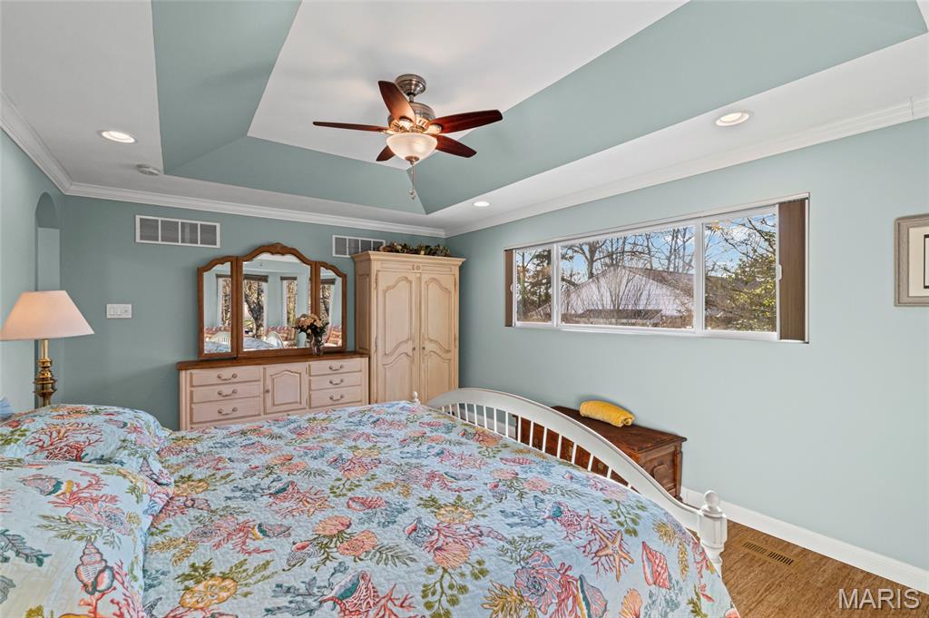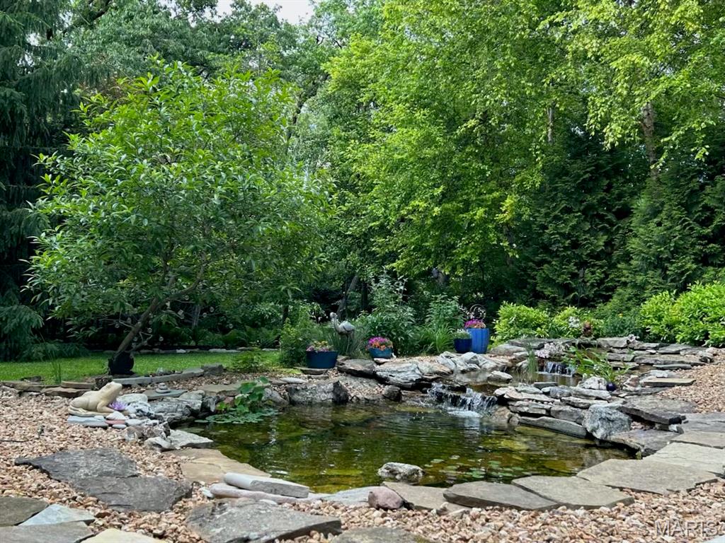 Tucked away on a remarkably quiet, low-traffic street, 419 Gabriel Drive offers the rare combination of a peaceful retreat and a central location. This beautifully updated 5-bedroom, 3-bath home is just a leisurely stroll from Kirkwood High School, making it the perfect hub for a busy family that still values a calm place to call home. Step inside to find an inviting floor plan featuring stunning bamboo floors that flow seamlessly throughout the main level. The heart of the home is the chef-inspired kitchen, which has been elegantly updated with modern cabinetry, premium finishes, and plenty of prep space—perfect for hosting holiday gatherings or quick weekday breakfasts. The main living area and basement are anchored by two majestic stone fireplaces, adding a layer of warmth and timeless character to the modern updates. You will fall in love with the "tree house" primary suite. This is a true architectural gem! This private sanctuary feels like it’s floating among the canopy, featuring its own dedicated washer/dryer hookups for ultimate convenience. The spa-like ensuite bathroom is a showstopper, boasting a custom steam sauna and direct access to a private back deck. Outside, your personal oasis awaits. The serene, private backyard is a masterclass in tranquility, featuring a peaceful pond and lush natural foliage that provides a screen of total privacy. The 2-waterfall pond provides a hypnotic cascade of sound to block out the everyday sounds of suburban life, and to lull you to sleep on a night you can keep the windows open. One of the best features is the massive 4-car garage—a true rarity for the area. With two oversized doors designed to store a boat or RV, plus a dedicated workshop area, there is plenty of room for all your "big toys" and weekend projects. Finally, the lower level offers incredible versatility, including a private side entrance that creates the perfect setup for an in-law suite, a home office, or make it into your own Airbnb! All of this, situated within the award-winning Kirkwood School District. Schedule a showing today!