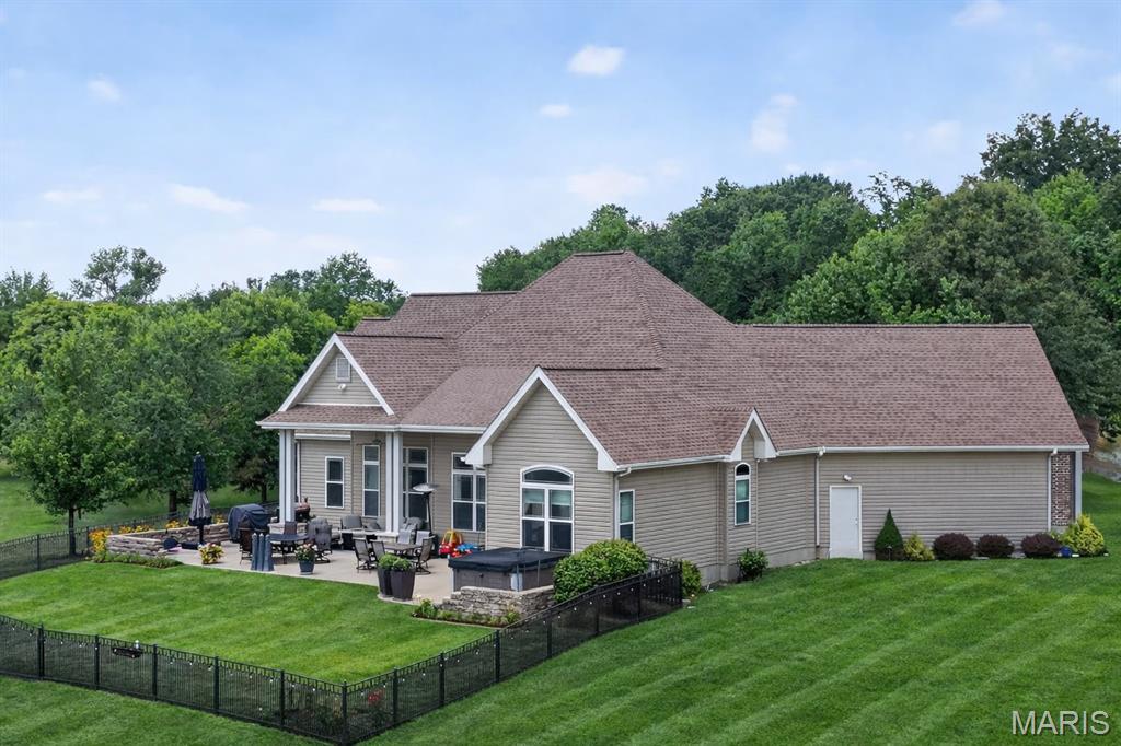 Private Lakefront Oasis on 10+ Acres in Wright City! Additional Pictures will be uploaded prior to going Active. Welcome to your own slice of paradise! This beautifully crafted ranch home offers nearly 4,000 sq ft of living space designed for comfort, relaxation, and connection to nature. Nestled on over 10 acres, this property includes a private 2.5-acre stocked lake with two fountains, a concrete dock, and a gazebo with full electric—plus access to a 9-acre community lake. Outdoor living shines with a spacious patio, bubbling hot tub, and a custom stone firepit with a curved wall—ideal for cozy nights under the stars or unforgettable gatherings. Inside, the main-level primary suite is a serene retreat featuring a coffered ceiling, ample natural light, private patio access, and a spa-inspired bath complete with a jetted tub, dual vanities, a walk-in shower, private toilet room, and two walk-in closets (one with custom built-ins). The chef’s kitchen blends style and function with granite counters, tall custom cabinetry, wall oven, stone backsplash, and a center island with breakfast bar—opening to a vaulted living room with large windows and a see-thru gas fireplace that also warms the formal dining room with hardwood floors, stacked-stone surround, and coffered ceiling. Also on the main level: two additional bedrooms with a Jack & Jill bath, a flexible office/flex room, half bath, and laundry. Upstairs offers a cozy loft-style guest room, while the finished lower level expands your living space with a large rec room, stone fireplace, full bar with island, two sleeping rooms (one with vanity & sink), a full bath, second laundry area, and generous walk-in storage. Outside, the property features a heated outbuilding with garage doors, roughed-in bath, an office and loft space—plus a fenced garden, fruit and nut trees, and peaceful walking paths. Thoughtful updates include: New roof (2024), Geothermal HVAC (2023), Well and septic pumps (2023 & 2026), Fresh landscaping and system upgrades throughout. This one-of-a-kind retreat balances luxury and practicality for those seeking privacy, space, and timeless charm. Whether you're entertaining, unwinding, or working from home—this property is built to match your dreams.