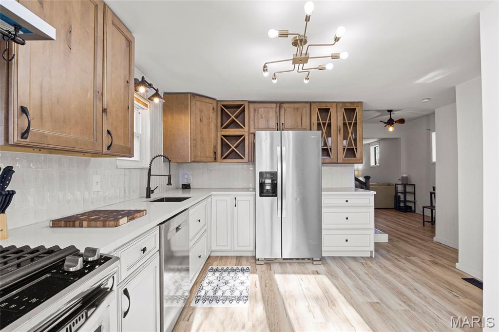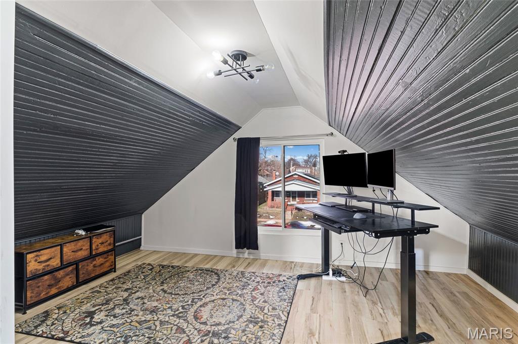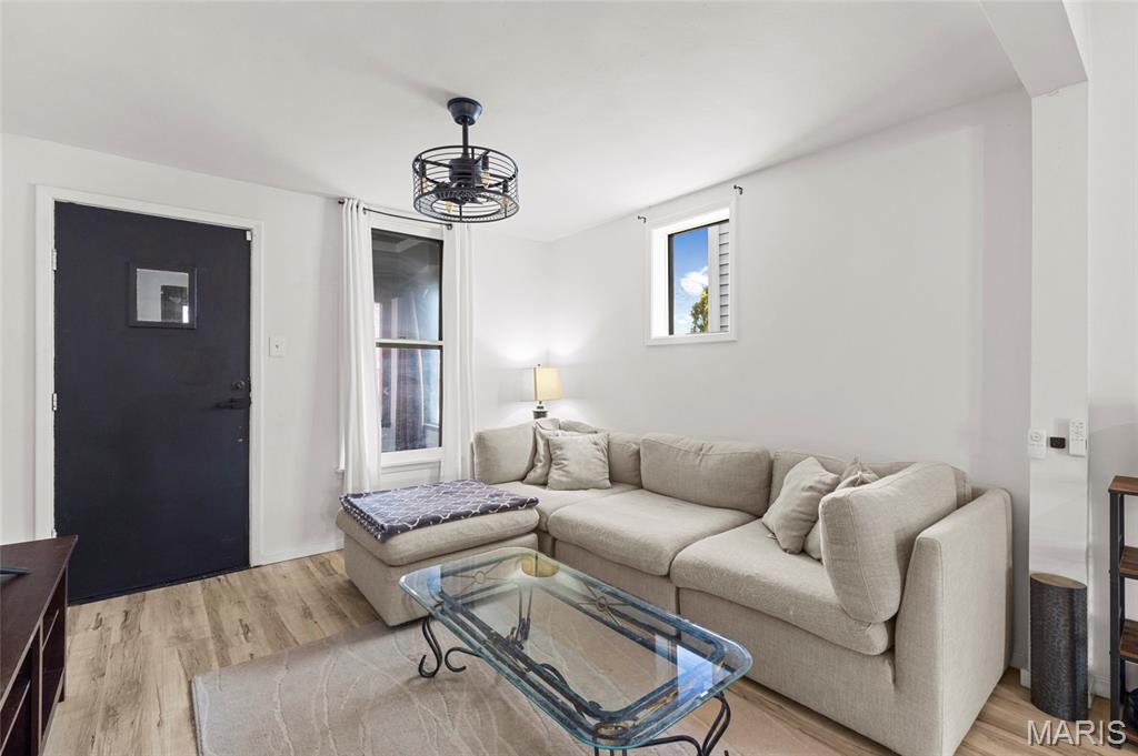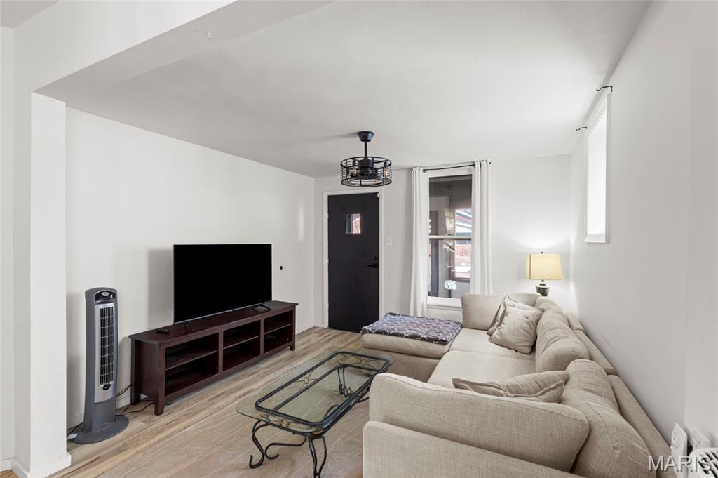 Recently renovated 2 bedroom, 1 bath home offering modern updates and classic charm. Enjoy a new roof, covered front porch, and an open living room/dining room combo ideal for everyday living and entertaining. The well-appointed kitchen features custom cabinetry, quartz countertops, and stainless steel appliances. The main level includes a bedroom and full bath, while the upper level offers a spacious second bedroom with a sitting area—perfect for a home office or flex space. Step outside to a large patio, expansive backyard, and a 2-car garage with two additional off-street parking spaces. Major updates include updated electrical, new plumbing throughout, and newer HVAC, providing comfort and peace of mind for years to come. Conveniently located just minutes from El Catrin, Stellar Hog, and other local dining and entertainment, as well as Carondelet Park.