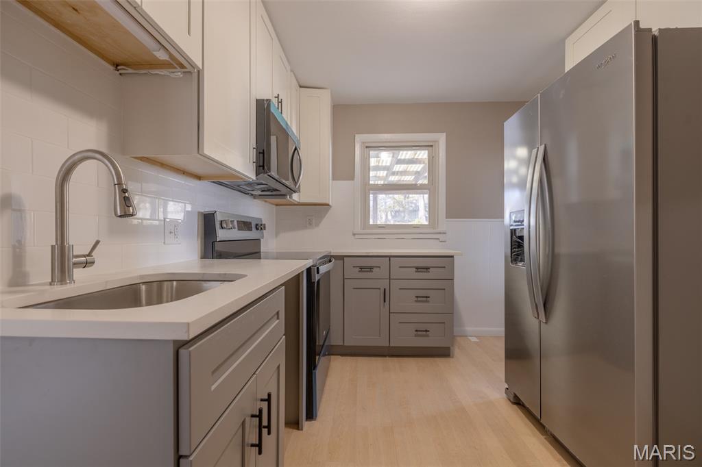 Pictures are back and we are active! This home is beautiful inside, new kitchen remodel, appliances, flooring, fresh paint, and more! The light that comes through the front living windows is bright and beautiful. Very nice overall layout, the finished basement has laundry, a massive second living area and a 1/2 bath. On the main level there are 3 rooms that could be bedrooms, but technically it's a 2 bed, because you have to walk through one to get to the end one. Large carport with off street parking, big covered patio in the backyard. The full bathroom on the main level has a beautiful custom tile job. On a full basement that is finished, for additional living SF, about 1,600 in total. Great location in a quiet area, this should be on the must see list!
