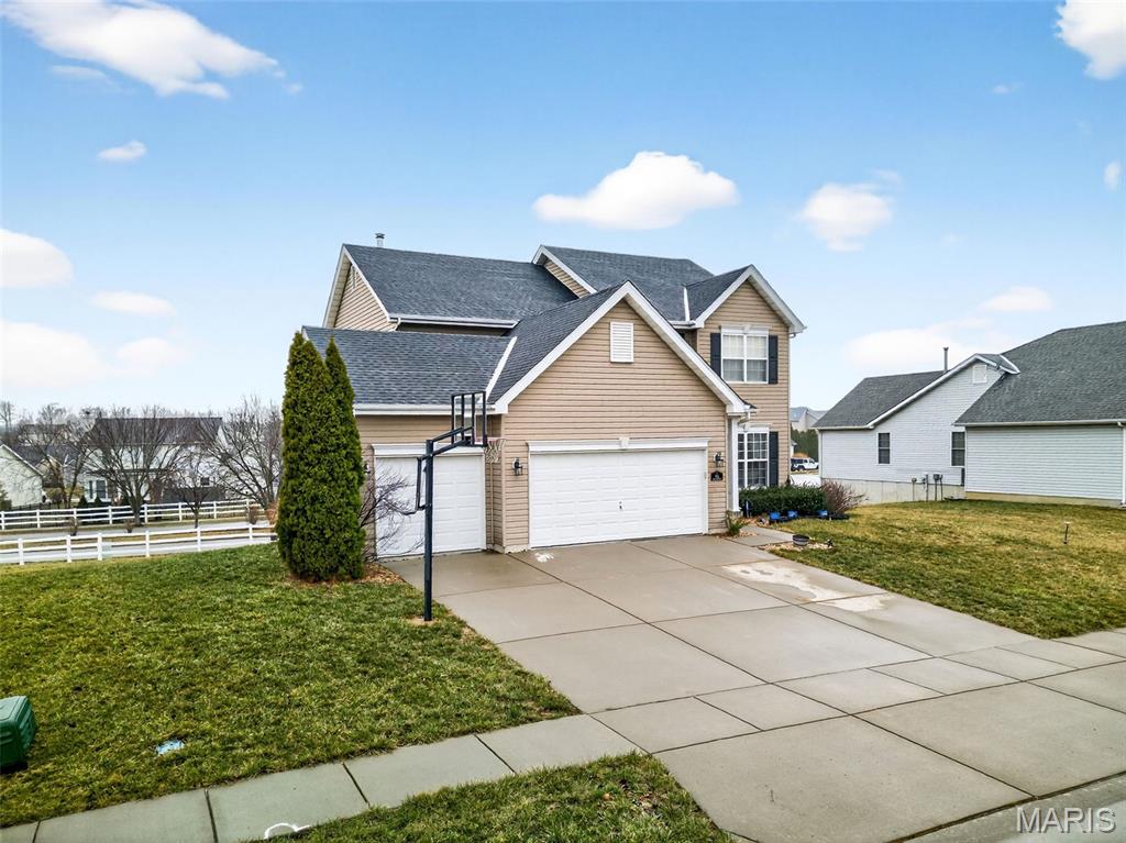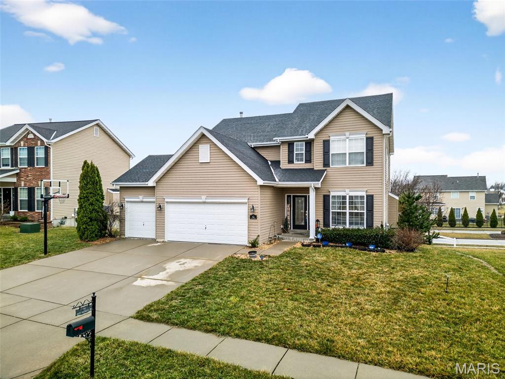 Welcome Home!This spacious four-bedroom, four-bathroom, two-story home offers over 3,100 square feet of living space, perfectly designed for both relaxation and entertaining. The main level features nine-foot ceilings, a home office or flex room, a large formal dining room, and a spacious family room with a gas fireplace. The gourmet eat-in kitchen opens to the family room and includes a large center island/breakfast bar, hardwood flooring, 42-inch cabinets, and stainless appliances. It leads directly to a deck that is ideal for BBQs and outdoor enjoyment. A laundry room and half bath complete the main floor. Upstairs, you will find a large primary suite featuring a tray ceiling, a walk-in closet, and an en suite bath with a separate tub and shower. Three additional bedrooms, each with its own walk-in closet, and a second full bath are also located on the upper level. The partially finished walkout basement provides a recreation area, a half bathroom, and ample storage space. Located in Stone Meadows, residents enjoy access to two subdivision pools, paved trails, and ball fields. This home and neighborhood offer everything a family needs!