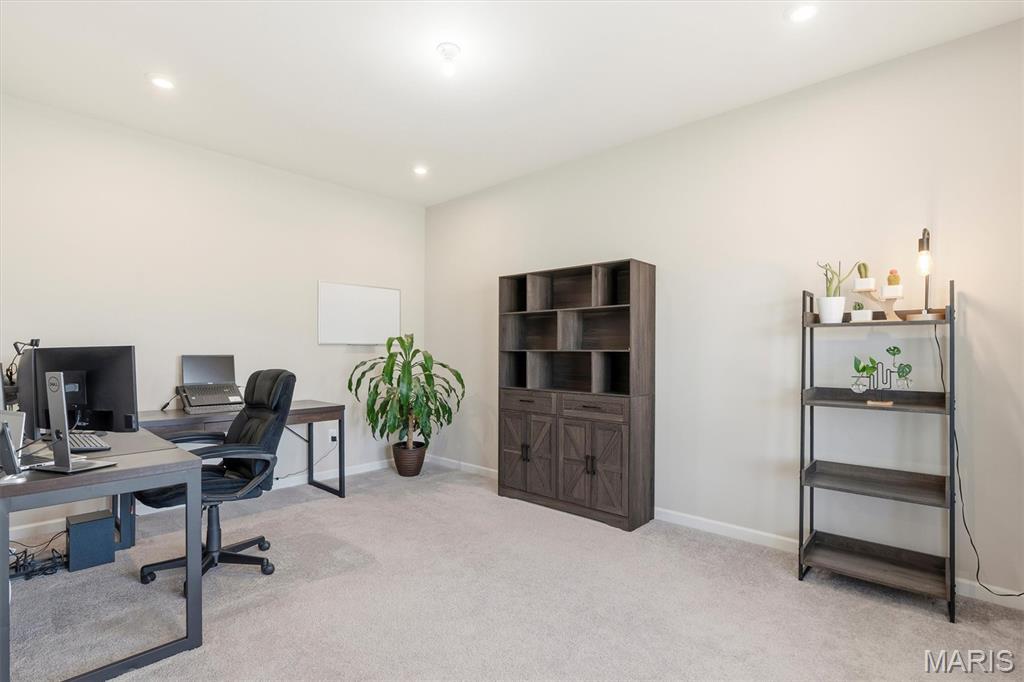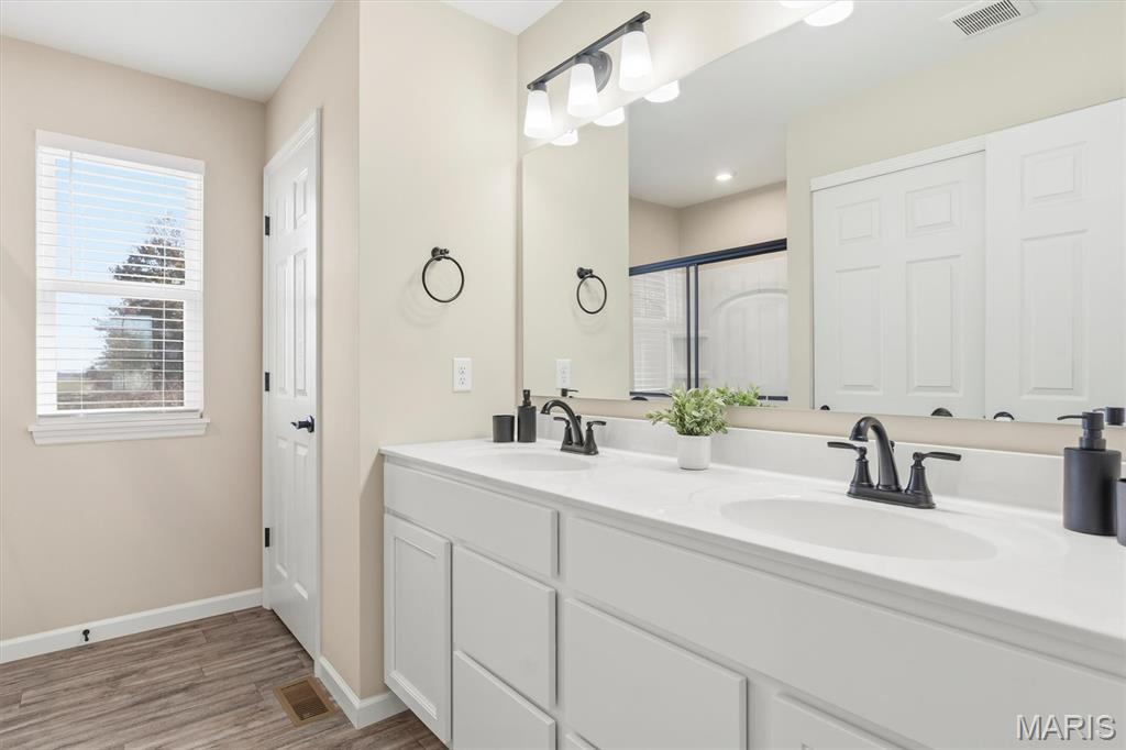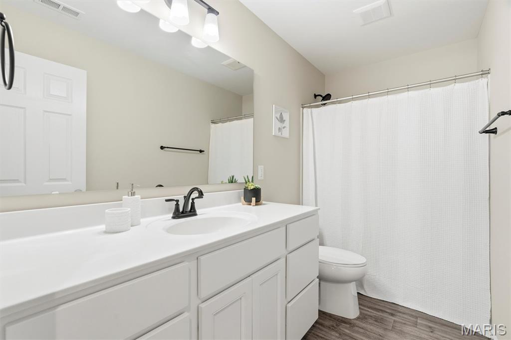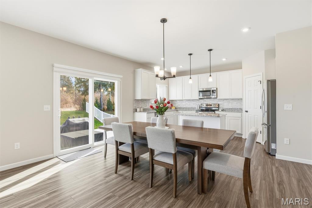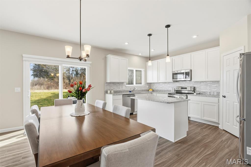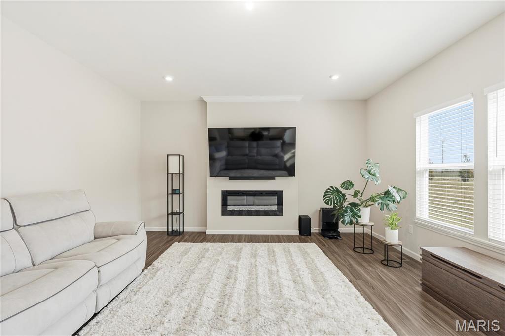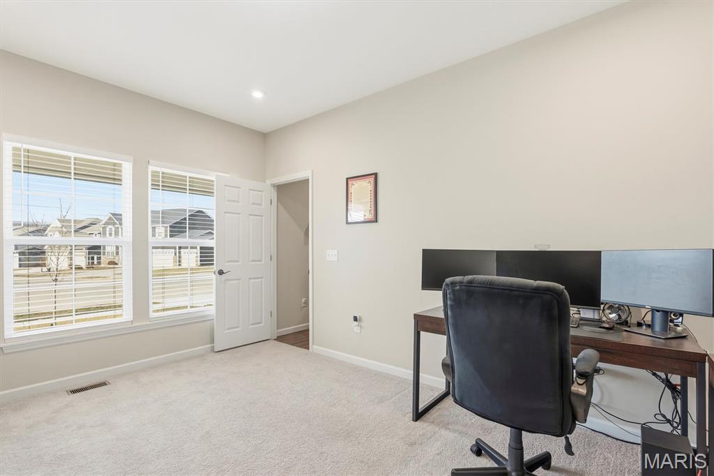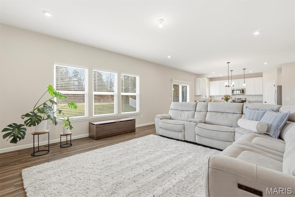 Welcome to this impeccably maintained, move-in-ready, 2-story, 2023-built Fischer Home offering 4 bedrooms, 2.5 baths, and an exceptional blend of modern comfort and functional design—loaded with upgrades! The charming covered front porch sets the tone as you step inside to 9’ ceilings and luxury vinyl plank flooring flowing throughout the main level. A versatile main-floor bedroom provides the perfect space for a home office, guest suite, or additional family room. The light-filled living area features a beautiful wall-mounted fireplace, creating a warm and inviting atmosphere for everyday living or entertaining. The open-concept layout seamlessly connects to the dining area and the upgraded kitchen, complete with a center island, 42” cabinetry with crown moulding, granite countertops, stainless steel appliances, and a walk-in pantry. From the dining area, step outside to enjoy the expanded concrete patio—ideal for gatherings, grilling, or relaxing evenings with family and friends. Upstairs, the thoughtfully designed primary suite offers a double-sink bath and a generous walk-in closet. Two additional bedrooms each feature their own walk-in closets. A versatile loft area offers endless possibilities—playroom, second office, media space, or cozy reading nook. Convenient second-floor laundry with a window and utility sink adds everyday ease. The unfinished basement is ready for your personal touch, featuring a rough-in for a future bath, egress window, sump pump, and water softener system that is already installed for you. The Pinewoods Estates community also offers a beautiful pond with trails, picnic areas, and a playground. Located just minutes from Wentzville Parkway shopping, dining, and everyday conveniences, with quick access to Hwy 70 and Hwy 64 for easy commuting. Don’t miss this rare opportunity to own this beautifully upgraded home, where functional finishes and floorplan meet your desired everyday lifestyle. Schedule your showing today!