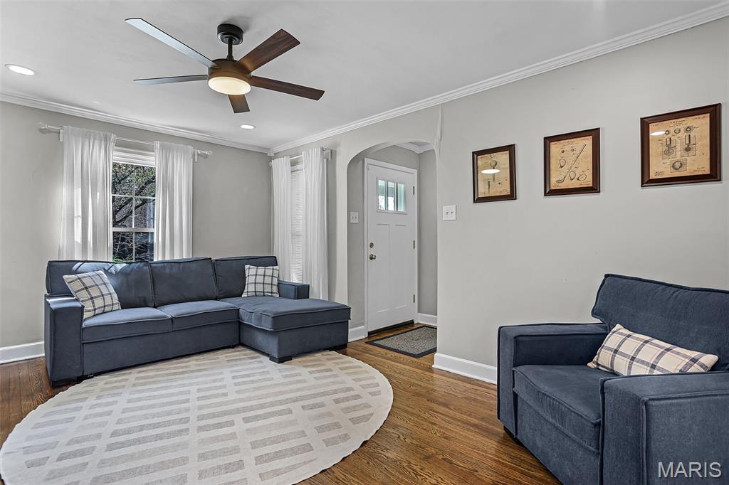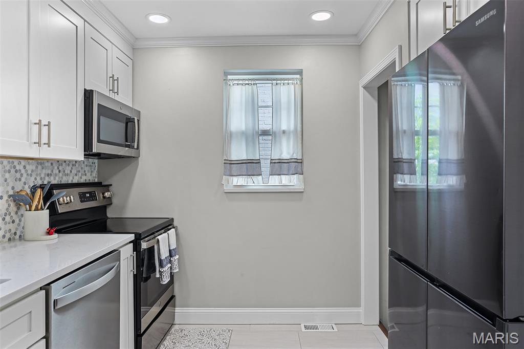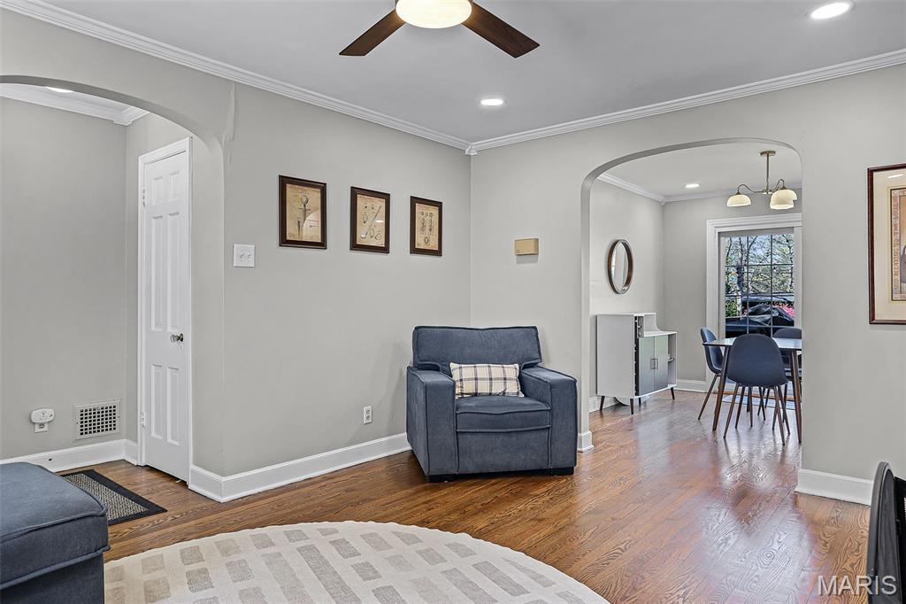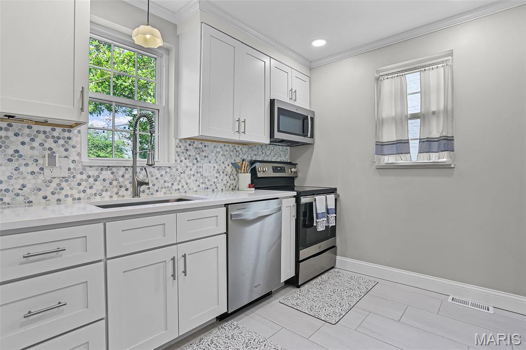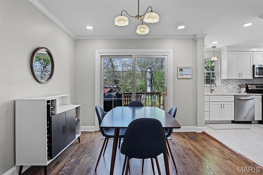 Welcome to this beautifully updated 3 bedroom, 2 bathroom brick ranch in the heart of Brentwood. From the moment you arrive, the covered front porch invites you to relax with your morning coffee or unwind while entertaining. Inside, you’re greeted by abundant natural light and beautifully refinished hardwood flooring that flows throughout. The inviting living room transitions seamlessly into the separate dining area, featuring custom cabinet storage and a coffee bar—perfect for both everyday living and hosting. The dining room opens to the beautifully updated kitchen, complete with quartz countertops, tile backsplash, ample updated cabinetry, and stainless steel appliances. The main level offers three comfortable bedrooms and an updated full hall bath with a tiled shower/tub combo, updated vanity, and fixtures. The finished lower level expands your living space with recessed lighting and LVP flooring throughout, a spacious family room, full bar, and a versatile bonus room ideal for an office or flex space. You’ll also find a beautifully updated full bath with a floor-to-ceiling tiled walk-in shower, along with additional storage. Step outside to enjoy the deck and stamped concrete patio overlooking the level, fenced backyard—perfect for relaxing or entertaining. All of this in a prime location within walking distance to parks, shopping, restaurants, and more. This exceptional home is a must see!