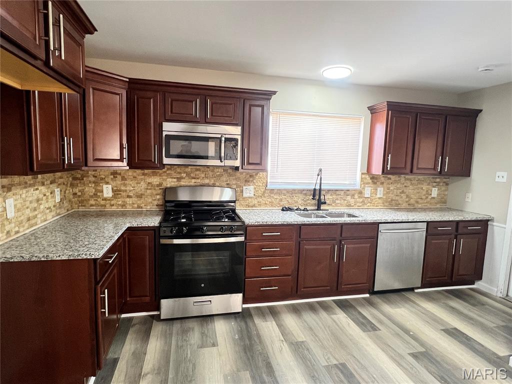 This Florissant, brick ranch has 3 bedrooms and 2 full bathrooms, all on the main floor. The main floor is 1436 sq ft and it has a 2-car garage. Property has been totally renovated-fresh paint, new deluxe LTV on most of the main floor, remodeled kitchen including new stainless stove, granite countertop, undermount sink, and deluxe faucet, many new doors and lights, remodeled bathrooms including new custom tile tub surround in the hall bathroom, new furnace, AC, and A Coil, and much more!
