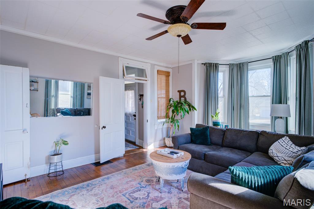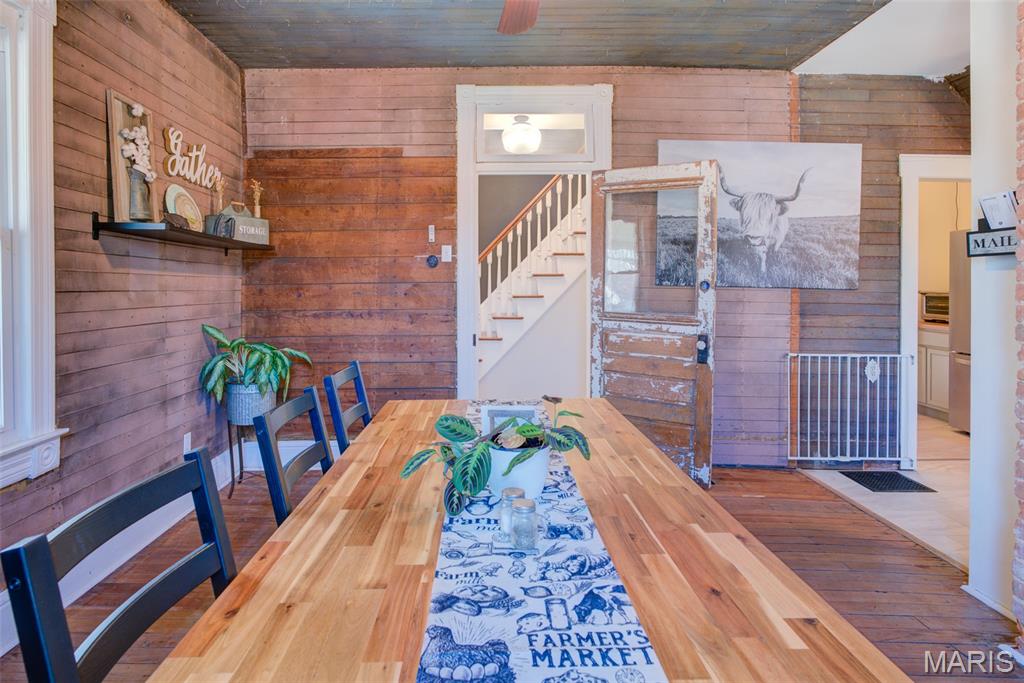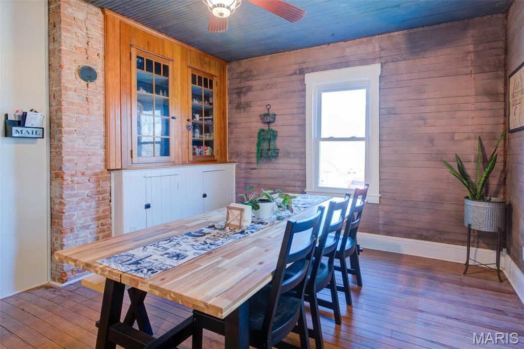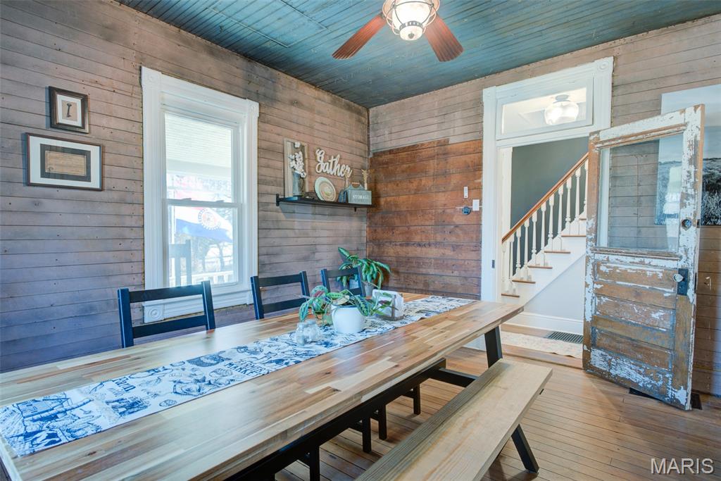 This Victorian home built in 1875 sits on .774 acres and is tucked away at the end of a quiet street, just minutes from downtown New Melle. With 3 bedrooms and 2 full baths, this home offers a great mix of character, space, and updates. The main floor includes a living room, dining room, and an office, providing flexible space for everyday living or working from home. The updated kitchen features new flooring, cabinets, countertops, appliances, and a butler’s pantry area for added storage and prep space. All three bedrooms are located on the second floor, along with a large second-floor laundry room. The home also includes a large attic, ideal for storage or future potential. The basement features the original stone foundation, adding to the home’s historic character. Recent improvements include a new HVAC system and water heater. Outside, the property offers two sheds plus a large outbuilding — the former New Melle Dairy, perfect for storage, workshop space, or hobbies. Enjoy the privacy of this tucked-away setting while still being close to local shops, restaurants, and community events. A unique property with room to grow.