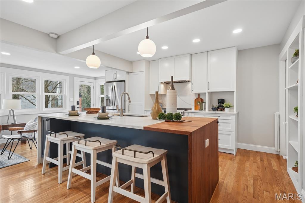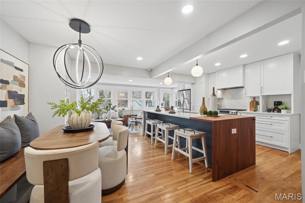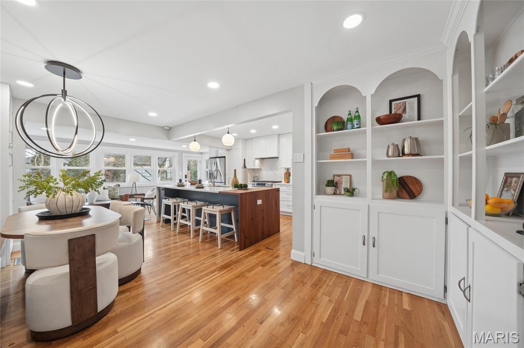 Renovated cottage charm in Kirkwood, sublime! All the character & cozy charm you expect in Kirkwood renovated with style & panache. The open floor plan was thoughtfully designed for the way we live today. The kitchen features modern cabinetry, quartz counters with waterfall edge, a massive center island & breakfast bar, SS appl. including gas range & range hood, French door refrigerator. Kitchen is open to dining area & sunroom. Primary suite has a large, professionally organized closet & luxury bath with double sink vanity & step-in rain shower with designer tile. There are beautiful wood floors throughout & gas, ventless fireplace. Walls of windows across back of house overlook large private backyard, patio & firepit all backing to trees. The walk-out LL is finished with rec room & office area with full bath. Enjoy everything Kirkwood has to offer, top-rated schools, fabulous town center with restaurants, shops & farmers market, Kirkwood Community Center, pool & park!