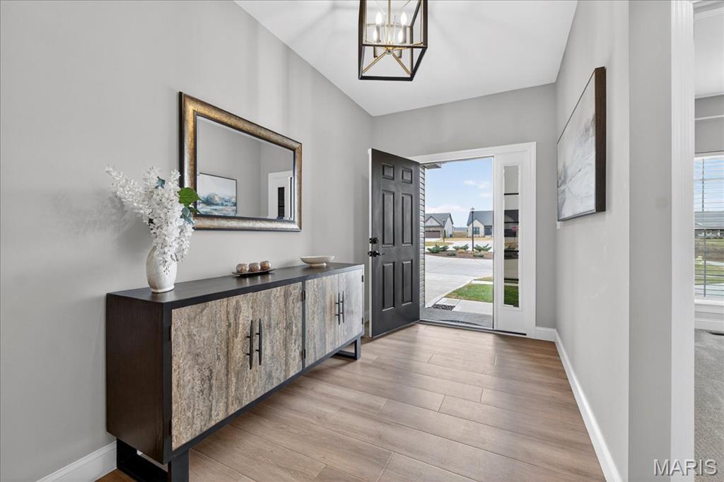 Welcome to 5 Challenger Court in the heart of O'Fallon. Why wait to build when you can move right into this 2024 new construction home that is already complete, meticulously maintained, and better than new! This 3 bedroom, 3 bathroom home sits on the largest lot in the entire neighborhood, tucked away on a quiet cul de sac for added privacy and curb appeal. Step inside to an open, airy layout designed for both everyday living and effortless entertaining. The spacious living area flows seamlessly into a large chef’s kitchen featuring generous counter space, abundant cabinetry, and a layout that keeps everyone connected. Just off the living room, you will find a gorgeous screened in porch that extends your living space outdoors, perfect for morning coffee or hosting friends. The walk out lower level opens to an additional patio and expansive backyard, giving you multiple areas to relax and entertain. The unfinished basement is already roughed in and ready for your future plans. Whether you envision a home gym, media room, guest suite, or additional living space, the heavy lifting has been done to make finishing simple down the line. Additional highlights include a fully insulated 2 car garage and a prime location close to shopping, dining, parks, and everything O’Fallon has to offer. New construction feel without the wait. Premium lot. Open concept living. Prime location. This one truly checks every box!