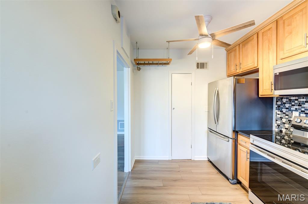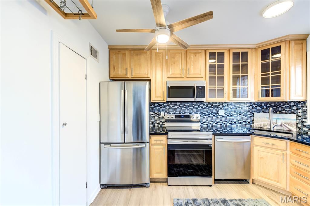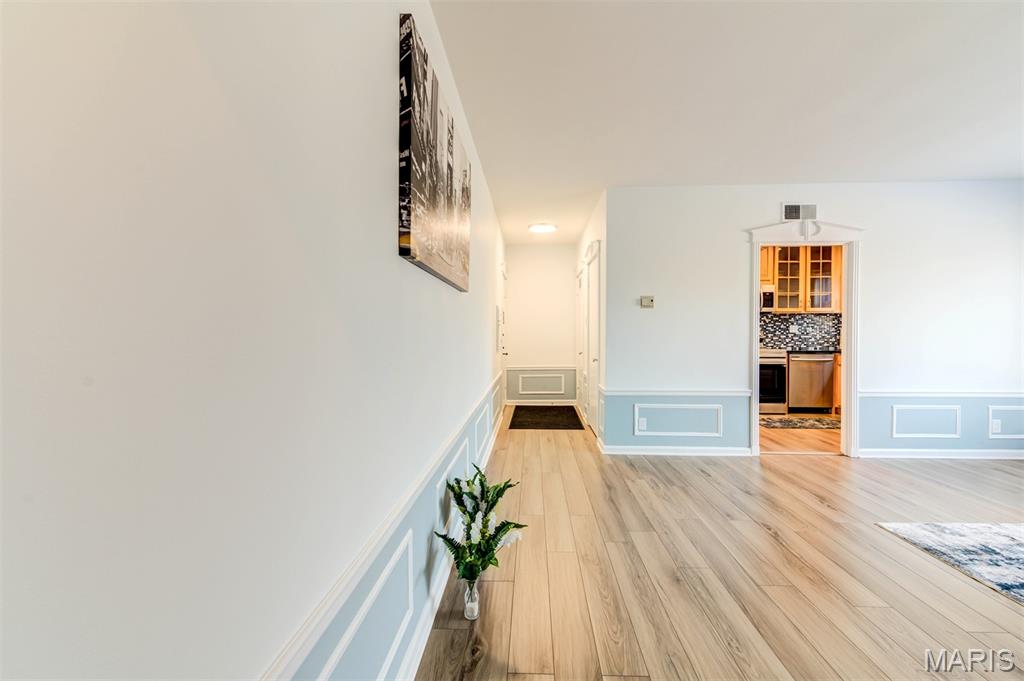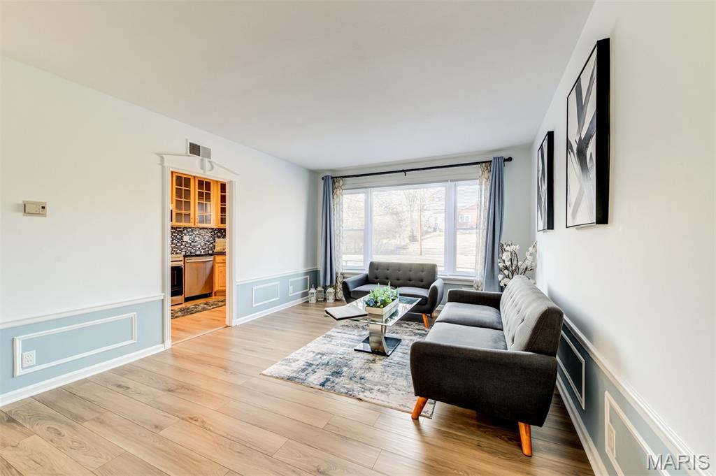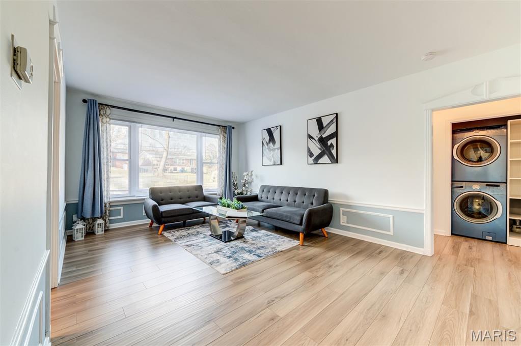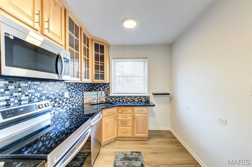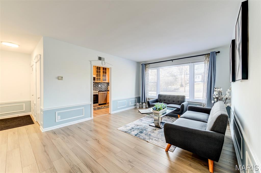 Welcome to 8111 Roxburgh Dr #1NE, an amazing condo full of sunshine! Walk into luxury, you are greeted by an expansive living room with huge windows, updated kitchen, & large bedroom suite. New luxury vinyl flooring throughout the unit with fresh, neutral paint. The kitchen has beautiful glass pane cabinetry & granite countertops, with new stainless steel appliances! In-unit laundry with washer/dryer included. The HUGE primary suite boasts walk-in closet and stunning bathroom with walk-in shower. Step outside to enjoy the peaceful patio off the primary suite; great for BBQing and relaxing. Washer, dryer, refrigerator included in the sale! Assigned 1 car tuck-under garage space with lockable storage space. Close to restaurants and shopping, just minutes from Downtown Clayton, the Brentwood Promenade and more! Easy highway access & close to public transportation; but with the private and serene setting of a neighborhood. Highly desired Clayton Schools!