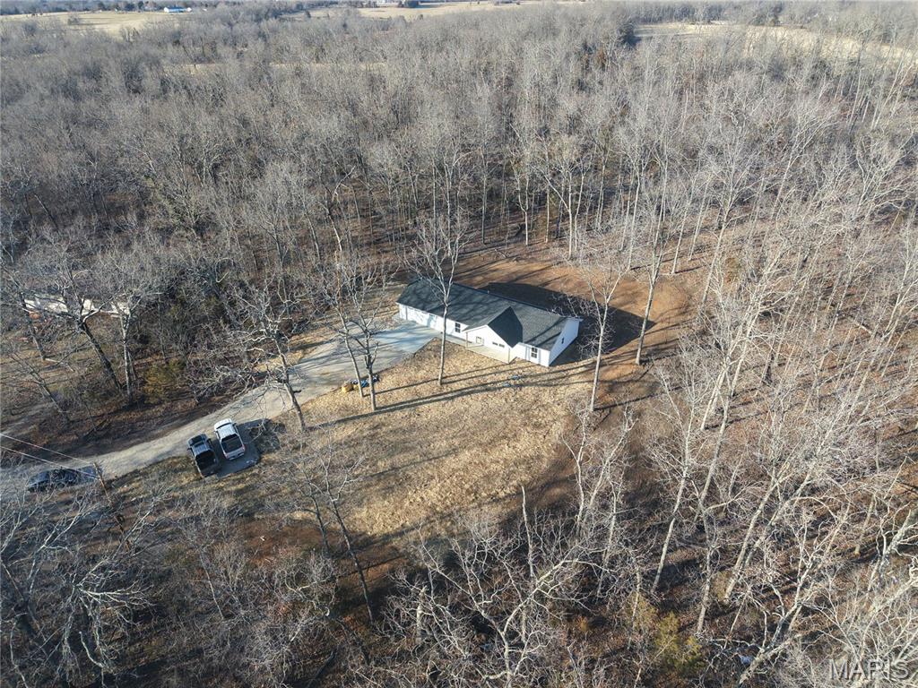 Professional photography coming soon. Introducing this newly constructed 3-bedroom, 2-bath ranch, gracefully positioned on a private, tree-lined one-acre setting just off Hwy D. Thoughtfully designed and beautifully finished, this home blends modern comfort with timeless style. From the moment you arrive, the covered front porch with wood-accented shutters sets a warm and welcoming tone. Inside, an open split-bedroom floor plan offers both functionality and privacy. The living area is anchored by an elegant fireplace, creating a refined yet comfortable gathering space. The kitchen was designed to impress — featuring custom cabinetry, a statement island, tiled backsplash, abundant lighting, and carefully curated finishes throughout. Luxury vinyl flooring flows seamlessly through the main living areas, adding durability without compromising style. The spacious garage provides additional storage, while the well-placed laundry/mudroom enhances everyday convenience. Situated on its own well and septic system, this property offers independence along with the peace and privacy of a wooded one-acre lot. Freshly seeded and move-in ready, this home showcases quality craftsmanship, elevated design choices, and attention to detail at every turn. More than just a house — this one truly feels like home!