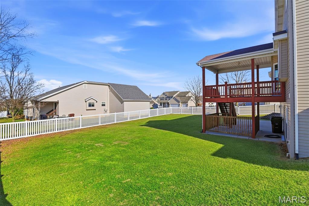 Step into this beautifully crafted two-story home where timeless design and exceptional woodwork take center stage. Just off the foyer, a bright sitting area with bay windows creates the perfect space to relax and unwind. The formal dining room is a true showpiece, featuring a breathtaking coffered ceiling and exquisite craftsmanship. In the living room, a stunning ventless gas fireplace is framed by custom built-in shelving, creating a warm and inviting focal point. The kitchen was thoughtfully designed with custom, taller-than-standard cabinetry, a large statement island ideal for gathering, and an oversized walk-in pantry. Just off the kitchen and garage, you’ll appreciate the spacious mudroom for added convenience. The insulated garage includes a utility sink, perfect for projects or clean-up. Upstairs, French doors lead into the impressive primary suite, highlighted by vaulted ceilings and a striking wood beam that runs the length of the room. The en-suite bath and generous layout create a true retreat. All bedrooms are above average in size and feature walk-in closets, offering plenty of storage and space. The walk-out basement expands your living area with finished space and a full bath. Two framed-in windows and a partially finished room provide excellent potential for a fifth bedroom or additional flex space. Step outside from the kitchen onto the freshly stained covered deck. Below, the patio has been extended the full length of the home, creating incredible space for entertaining. The fenced, flat backyard sits on one of the larger corner lots in the subdivision and includes a double gate on one side and an additional gate on the other for easy access. A sprinkler system keeps the lawn lush, and the front flower beds are already equipped with misters for added convenience. The roof is only roughly 4 years old. Exceptional craftsmanship, thoughtful upgrades, and outstanding outdoor living space make this home truly stand out.