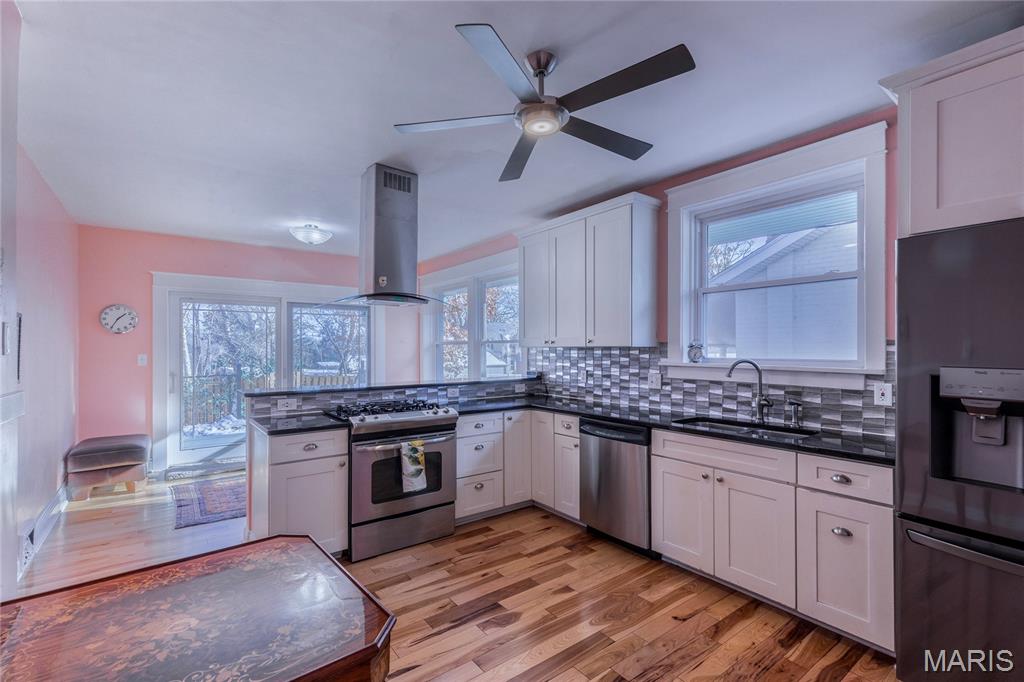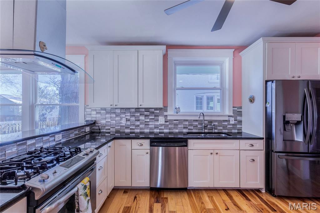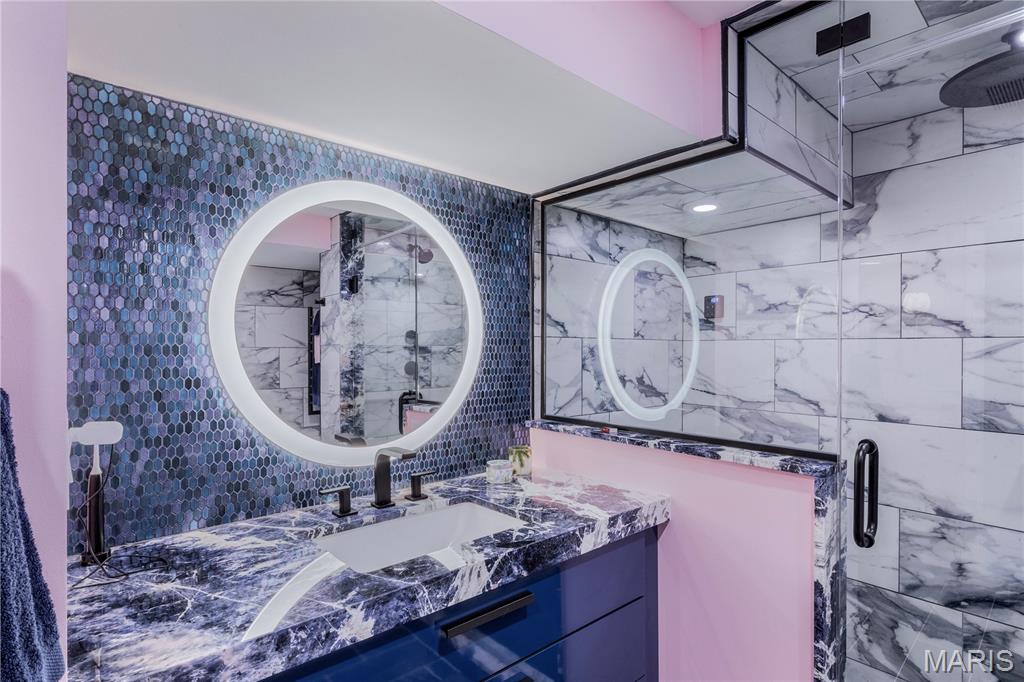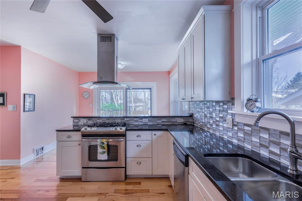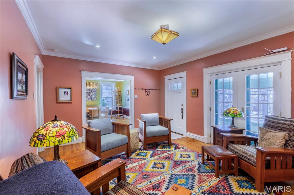 Exquisite Luxury Bungalow in Premier Richmond Heights Location — Award-Winning Landscape Design & Exceptional Upgrades Throughout. Welcome to an extraordinary 2-bedroom, 2-full-bath luxury bungalow perfectly positioned in one of Richmond Heights most coveted and convenient locations. This impeccably maintained residence blends timeless architectural charm with elevated modern updates, creating a home that offers both refined living & effortless everyday comfort. Minutes from fine dining, world-class shopping, acclaimed parks, major cultural destinations, the setting is truly exceptional—providing access to the region’s most desirable amenities while preserving the tranquility of a quiet, tree-lined enclave. Step into a beautifully curated interior where historic character meets contemporary luxury. Stunning stained-glass windows, plantation shutters, designer lighting, rich upgraded finishes create a warm yet sophisticated ambiance. A gorgeous wood burning fireplace anchors the living room, offering an inviting focal point for gatherings or quiet evenings at home. The open kitchen flows seamlessly into the living and dining spaces, enhancing the home’s natural sense of openness and making entertaining both effortless and elegant. The outdoor environment elevates this residence into a true luxury retreat w/Gold status native yard Bring Conservation Home, a Saint Louis Audubon Society partnership certifying this yard at the Gold level for Native plant landscapes. The back yard also features a private patio & deck with storage underneath, thoughtfully planned for year-round beauty, harmony, and visual impact. Every detail of the grounds has been meticulously developed, resulting in a private outdoor oasis that feels both intimate and breathtaking. Multiple garden layers, curated plantings, and expertly sculpted beds surround the expansive updated deck and premium fencing, creating a serene setting ideal for outdoor dining, relaxation, memorable entertaining. This is a landscape that reflects the work of true craftsmanship and botanical artistry. The charming front porch provides an additional sanctuary—a peaceful perch for morning coffee, reading, or unwinding at day’s end. Inside, large windows illuminate every room with natural light, enhancing the home’s warm and welcoming atmosphere assessable from dining room & living room through stunning newer atrium doors Additional updates include newer windows, luxury lighting selections, enhanced finishes, thoughtful improvements throughout, ensuring comfort, durability, visual appeal. The lower level luxurious full bath offers heated floors, heated towel rack, steam shower & soaking tub along with exceptional potential for expanded living space, with versatility to create a media lounge, fitness room, home office, guest suite, or custom retreat. Whether you envision a sophisticated entertainment area or a private extension of the main living spaces, the lower level provides endless possibilities. This Richmond Heights residence is truly a rare find—combining a premier location, high-end updates, exquisite landscaping, and timeless bungalow charm. From the luxury design elements to the extraordinary outdoor environment, every detail has been considered to create a home that is both unforgettable and effortlessly livable. For a multi-car owner, you are in luck! 2 driveways for off street parking on the north and south side of the home. A remarkable opportunity to own a beautifully elevated property in one of the area’s most desirable neighborhoods.