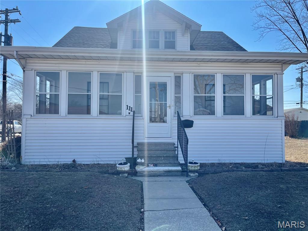 Charming and well loved 1.5 story home situated on 2 city lots in a convenient location! This home offers 2 bedrooms and a full bath on the main level, with an additional upstairs bedroom, half bath and bonus room that could easily be made into a 4th bedroom with the addition of a door. The upper level also has a small from room perfect for a home office. This upstairs space would also be a wonderful primary suite! Enjoy relaxing in the mornings with coffee on the enclosed front porch or more private covered rear porch. The full walk up basement includes a toilet, sink, and shower providing additional functional space and storage. Outside there is an oversized two car garage with alley access. This lovely home is across that street from the public library and just three blocks from the high school. Convenience, flexible space and great potential in a desirable setting!