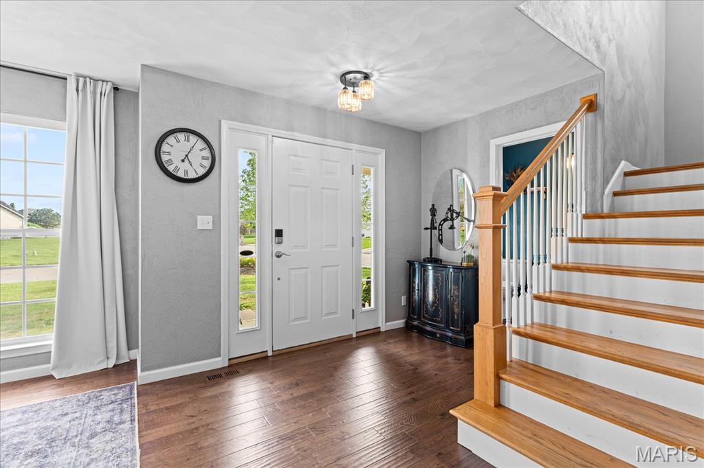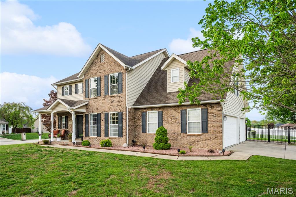 Beautiful two-story home situated on a spacious corner lot with updates throughout in desirable Smithton! Step inside to a welcoming open foyer that flows into a formal dining room and a cozy living room featuring a gas fireplace. The eat-in kitchen is a standout with custom cabinetry and plenty of space for everyday living and entertaining. You’ll also appreciate the convenient main floor laundry room with built-in cabinetry and folding counter, along with a 3-car side-load garage. Upstairs, the primary suite offers a relaxing retreat with a separate shower and soaking tub. You’ll also find two additional bedrooms and full bathroom. The bonus room above the garage can be a huge fourth bedroom or flex space! Mini-split was installed in 2025 for extra comfort. The unfinished basement offers ample storage and is already roughed in for a future bathroom—perfect for adding even more living space down the road. A new sump pump was also installed in 2025 for peace of mind. Step outside to enjoy the fully fenced yard, including a vinyl privacy enclosure around the hot tub, and a covered patio with ceiling fan—ideal for relaxing or entertaining. Recent 2025 updates include fresh interior paint throughout, all new toilets, and a full suite of new kitchen appliances including refrigerator, dishwasher, microwave, and stove/oven. This home truly combines comfort, functionality, and thoughtful updates—don’t miss your chance to make it yours! Buyer/Buyer's agent to verify all MLS information prior to submitting an offer.